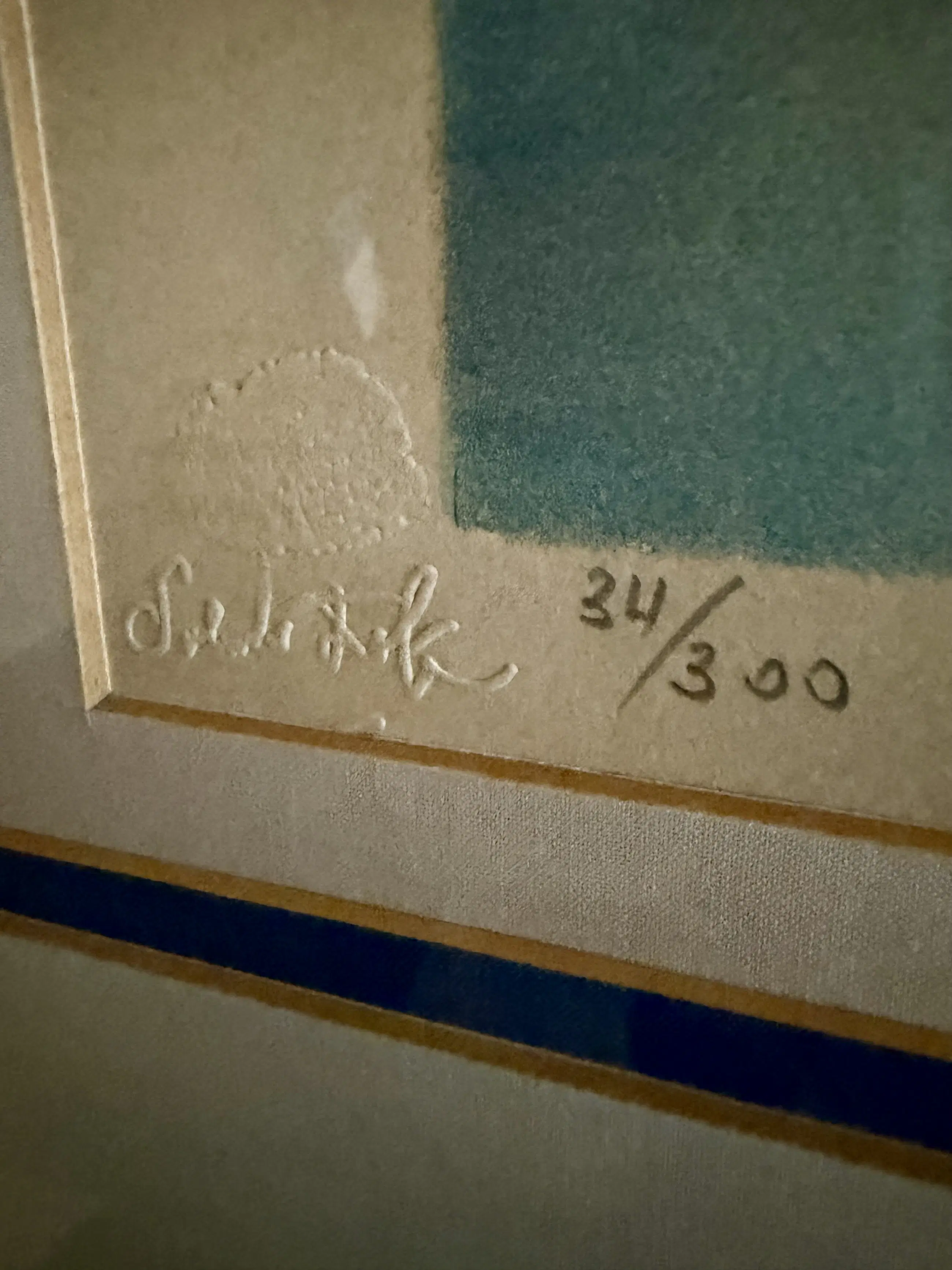 Het afgebeelde werk is een editie, zoals blijkt uit de handgeschreven nummering linksonder, die 34/300 aangeeft, wat wijst op het 34e exemplaar van een beperkte oplage van 300.