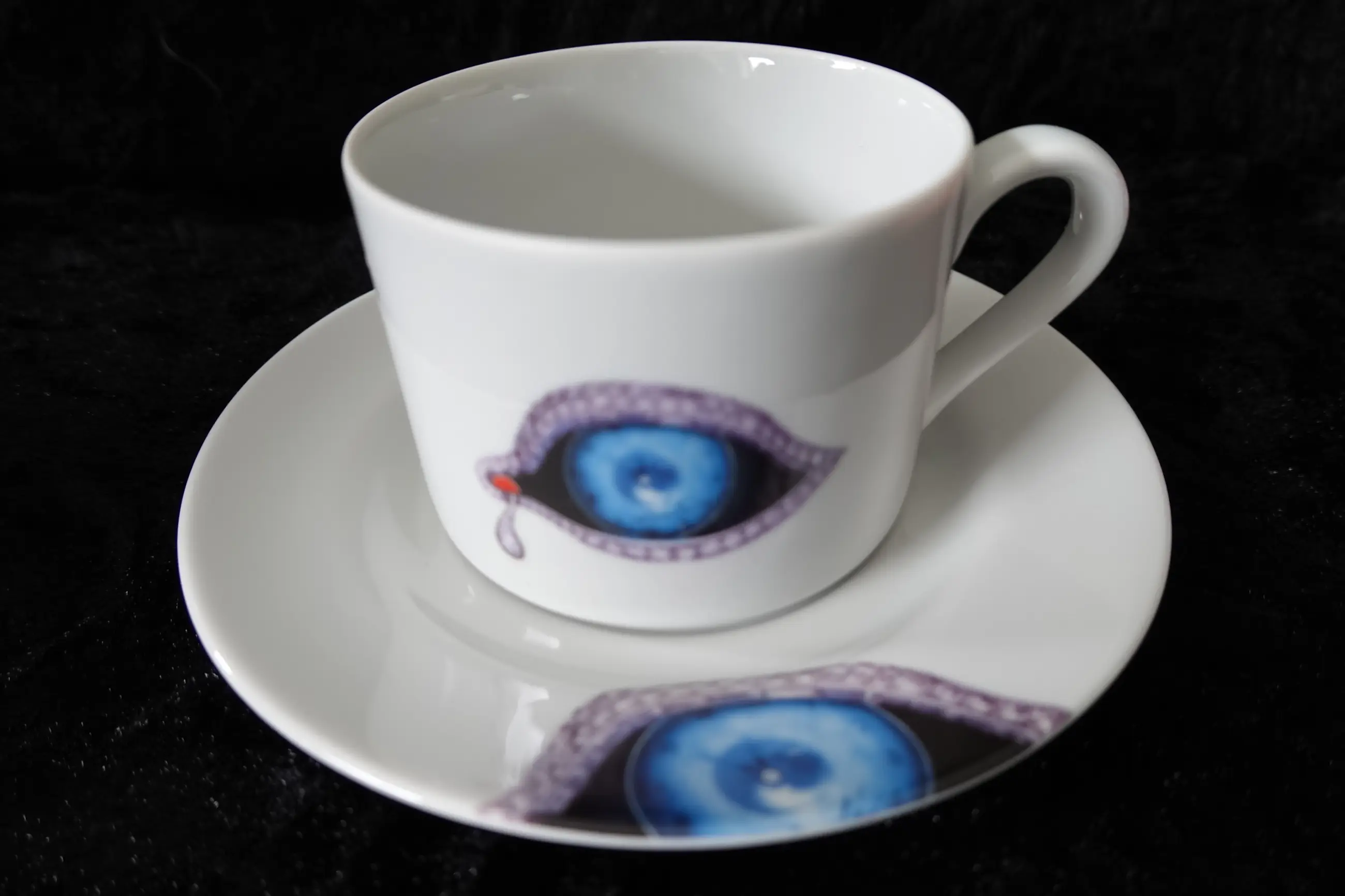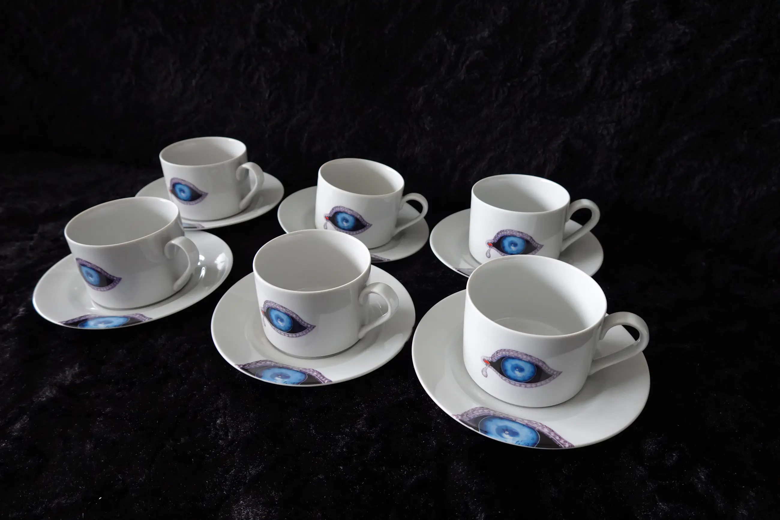 Grote koffietassen met bijhorende bordjes.