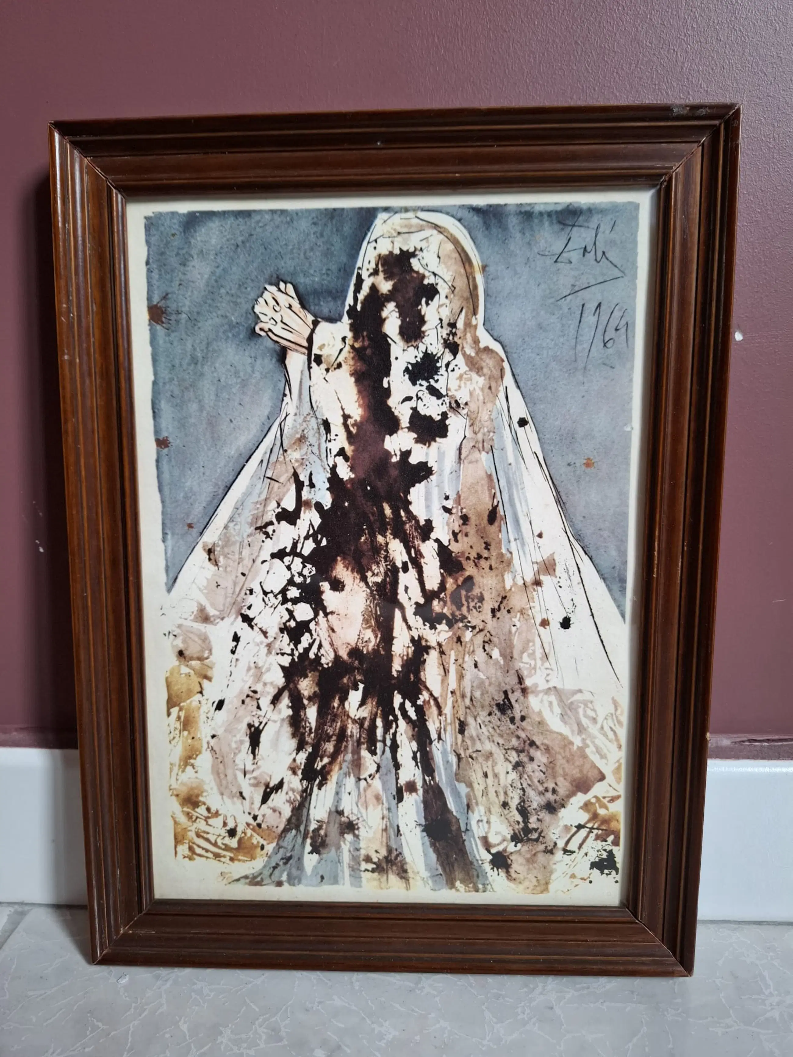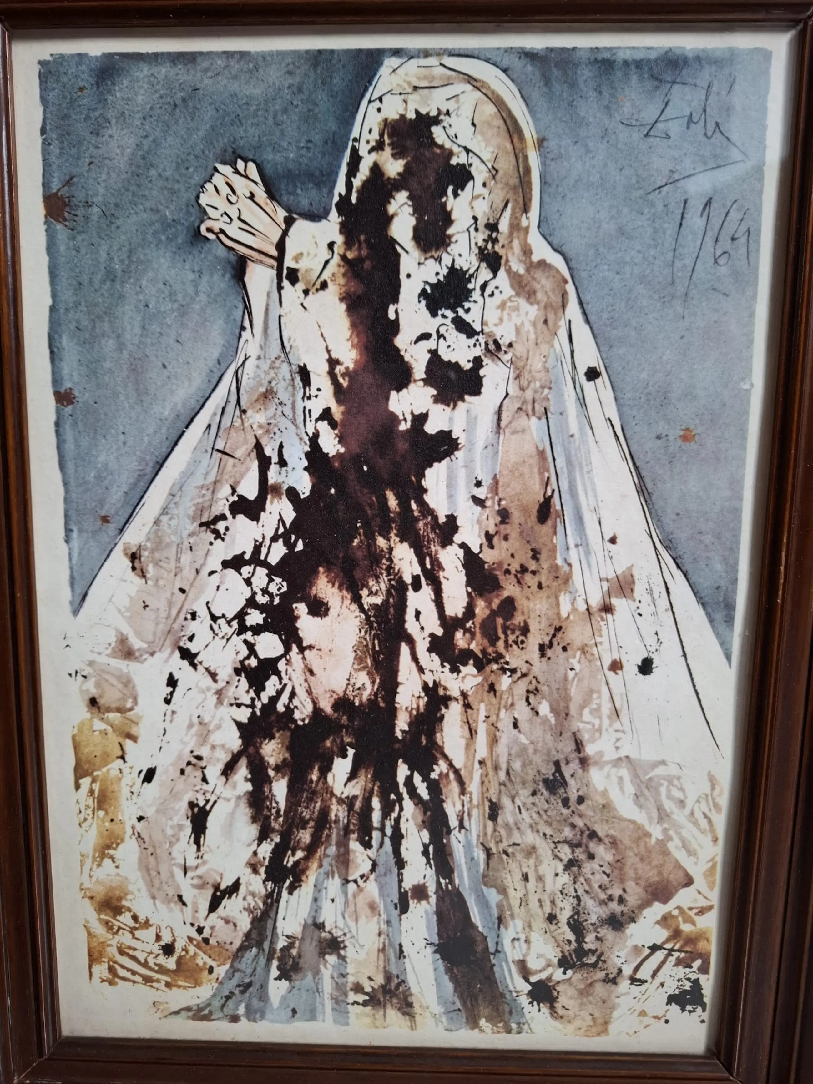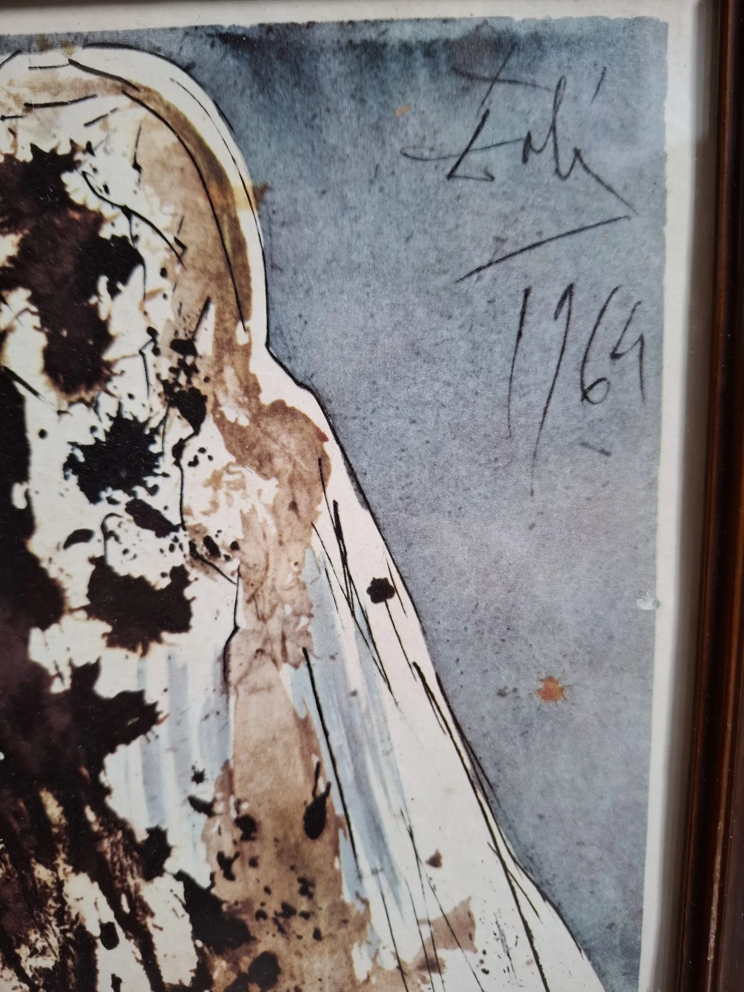 Vintage decoratieve prent met een reproductie van een compositie uit Dalí's Bijbelse cyclus. Ideaal voor verzamelaars van historische Dalí-posters/redactionele prenten of thematische decoratie.