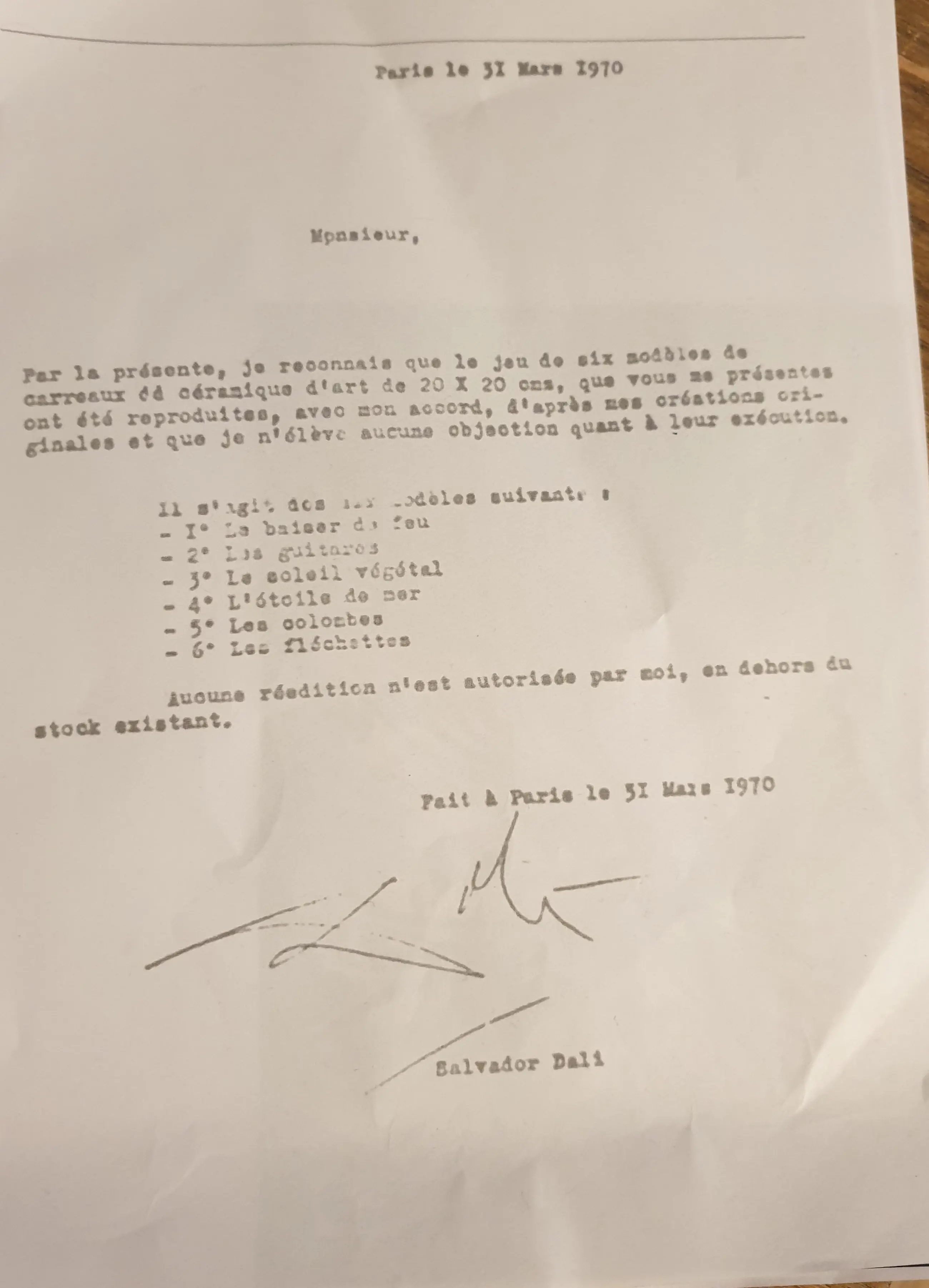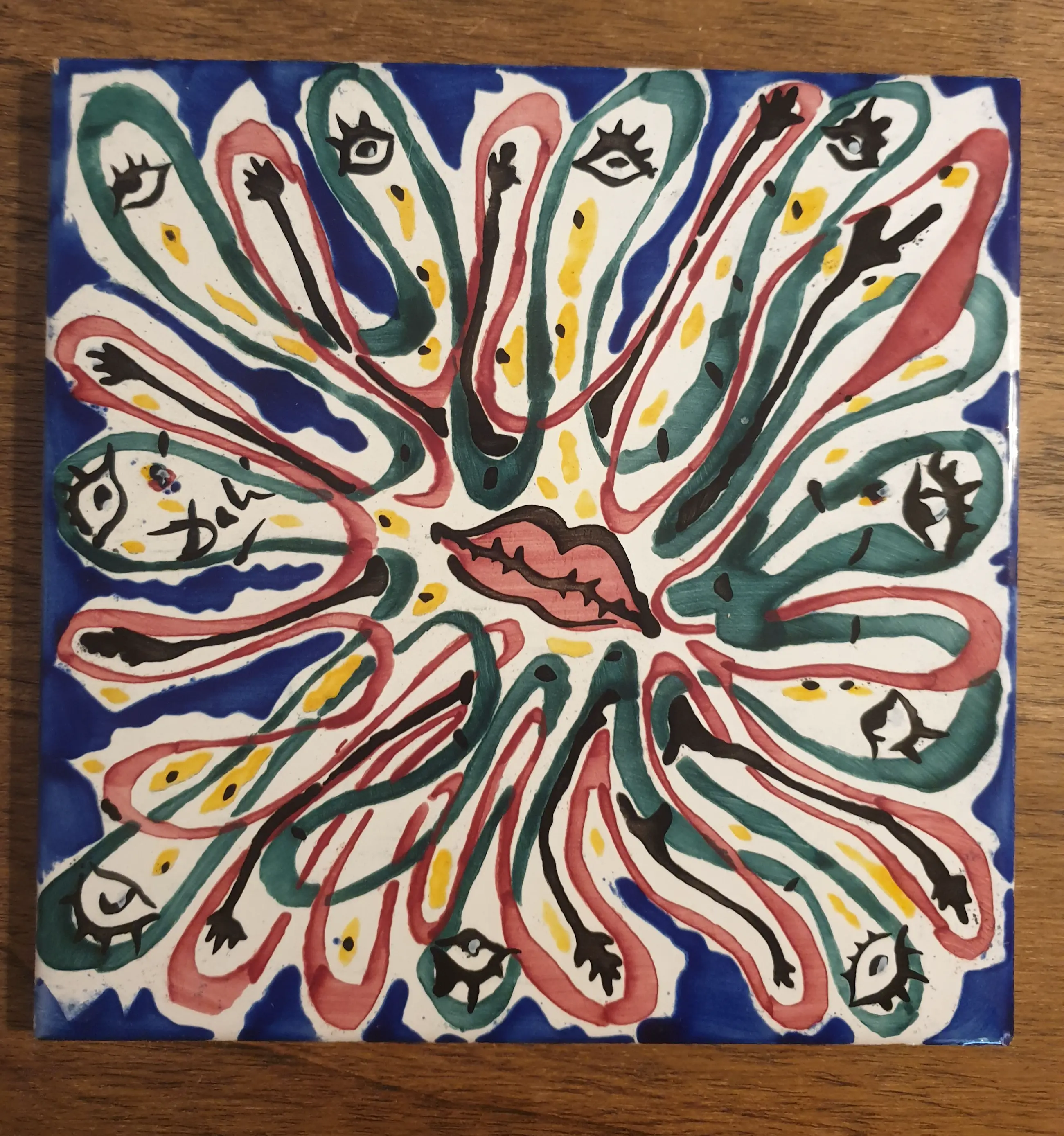 Le baiser du feu door Salvador Dali (1954). In zeer goede staat. Geschilderd op een keramieke tegel.