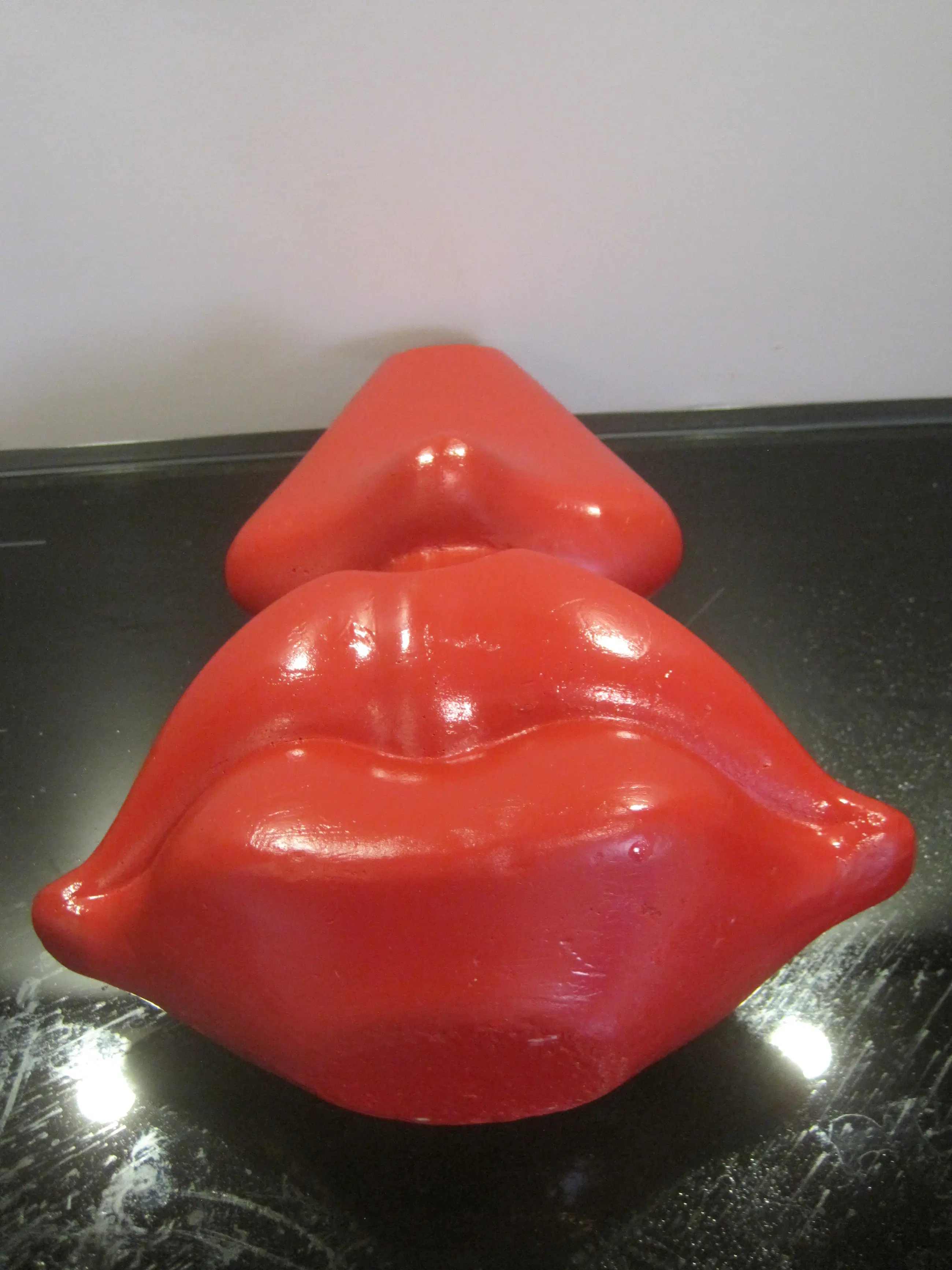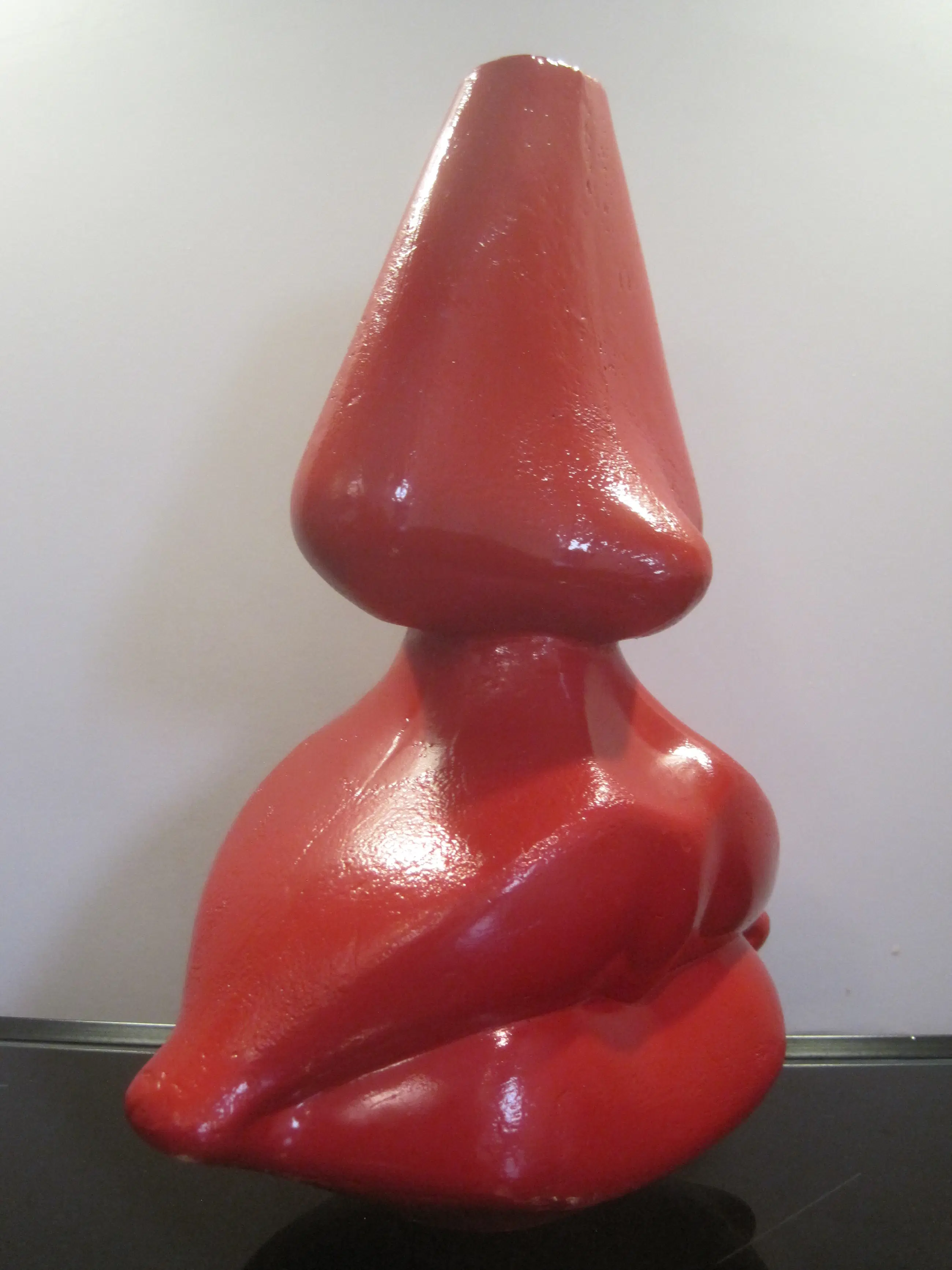 Zeer opvallende fraaie sculptuur van gips welke werd gebruikt ter ondersteuning van een parfum welke werd aangeboden in een flesje met de zelfde vorm.