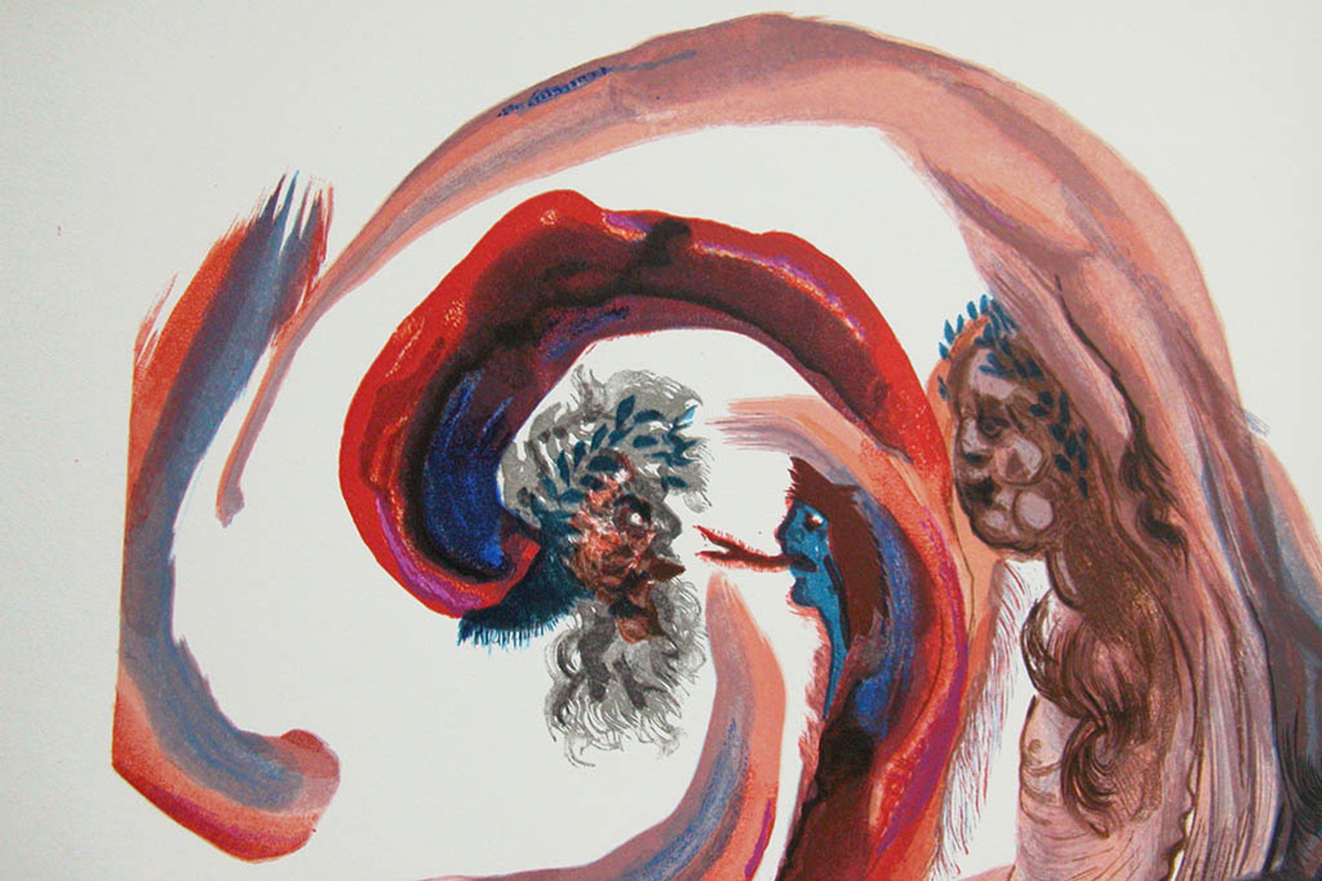 ‘La quatrième corniche: Accidia’ voor het 18e gezang van de Divinia Comedia. Een van de 100 illustraties uit de beroemde portfolio de ‘Divinia Comedia’.