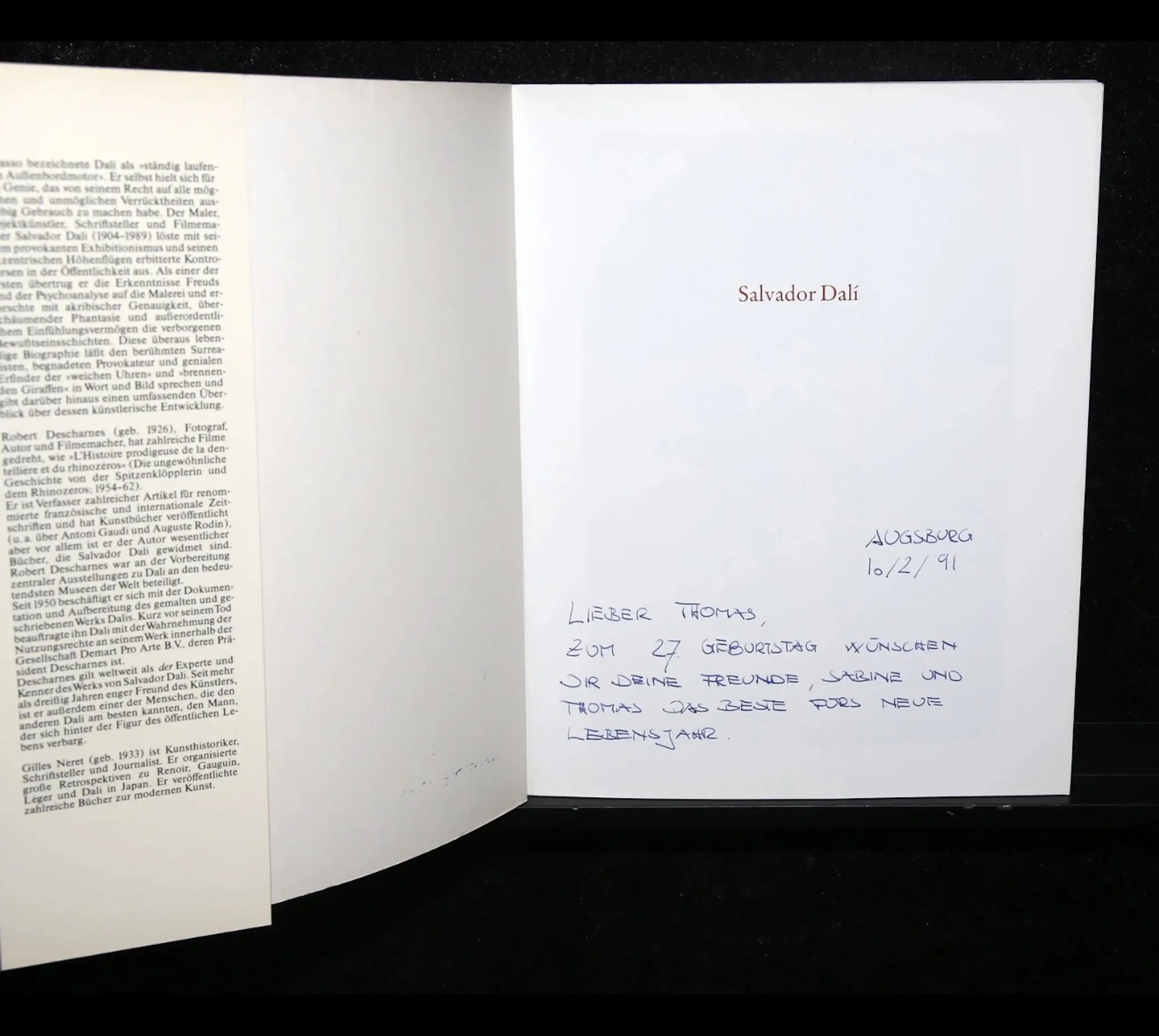 Boek 2: "Dali, Salvador - Robert Descharnes/Gilles Néret, 1904-1989". Maat: 29 x 22 cm. 224 bladzijden met vele foto's van Dali's werken met beschrijving. Jaar: 1989 Spraak: Duits Conditie: In goede staat, lichte gebruikssporen, onbekende inscriptie.