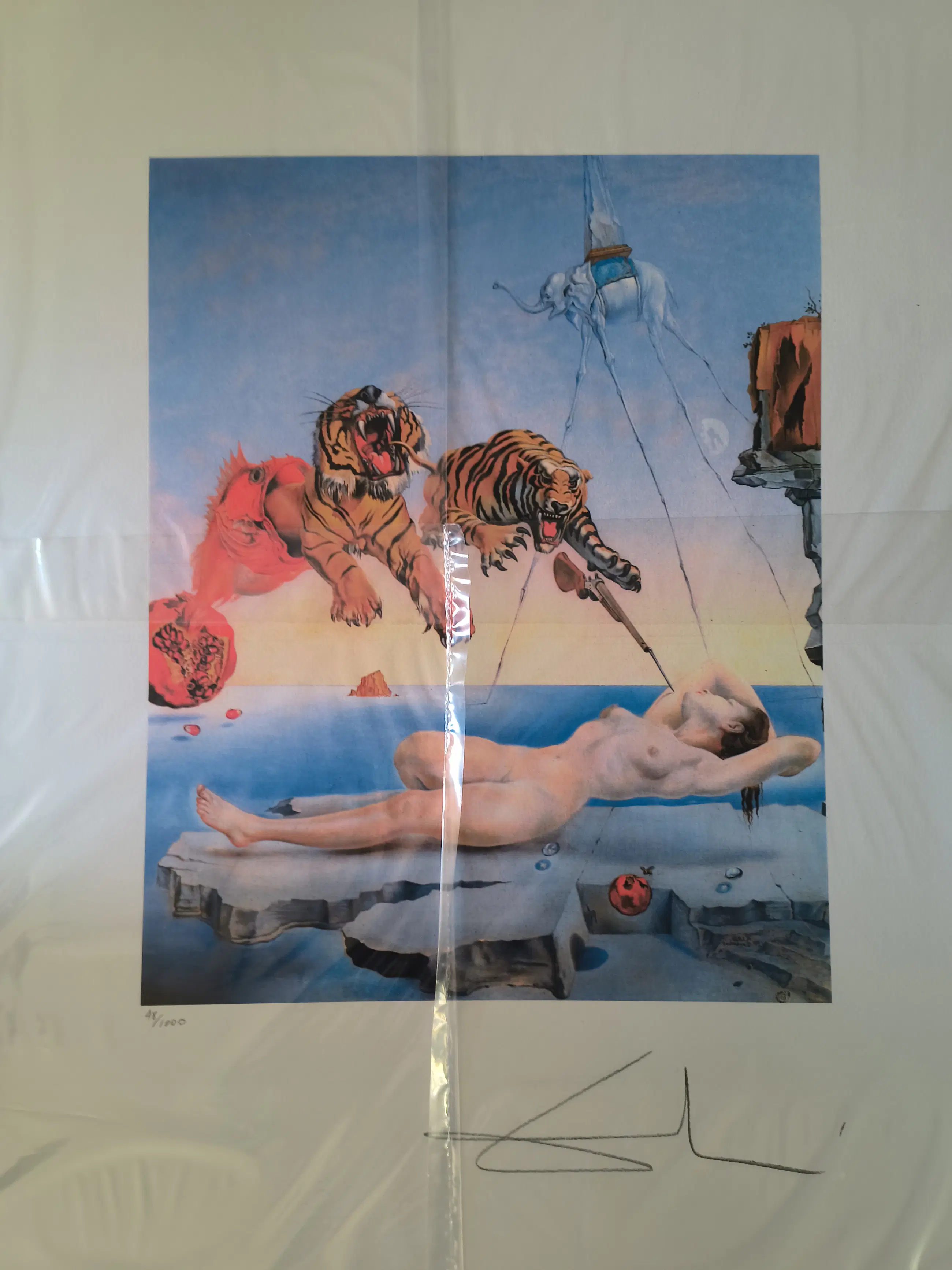 Droom veroorzaakt door de vlucht van een bij rond een granaatappel, een seconde voor het ontwaken" (1944) is een beroemd surrealistisch schilderij van Salvador Dalí. Het toont een droomlandschap waarin een naakte vrouw (Gala) zweeft, beïnvloed door het gezoem van een bij, wat leidt tot bizarre beelden zoals tijgers die uit een vis springen.