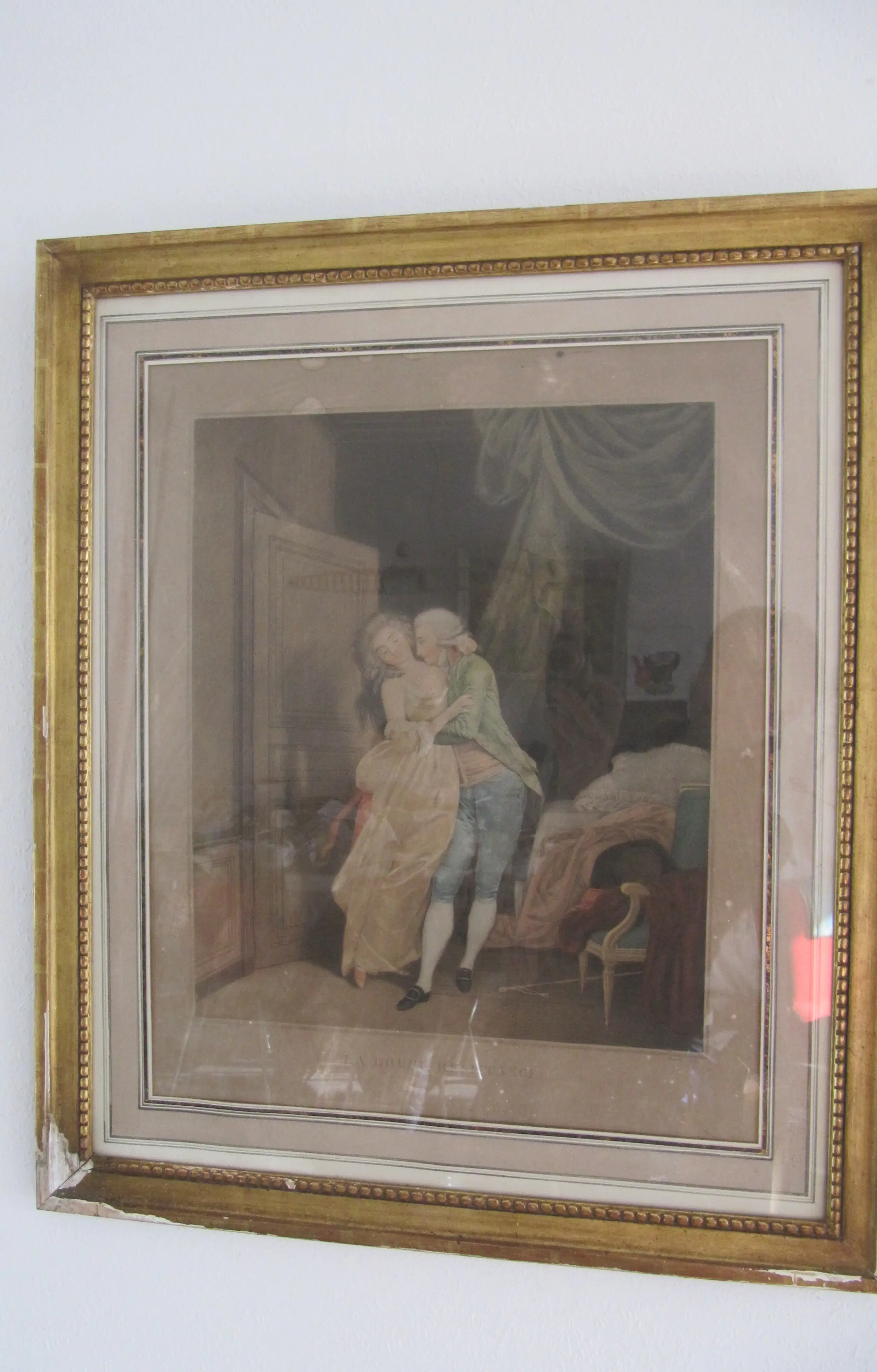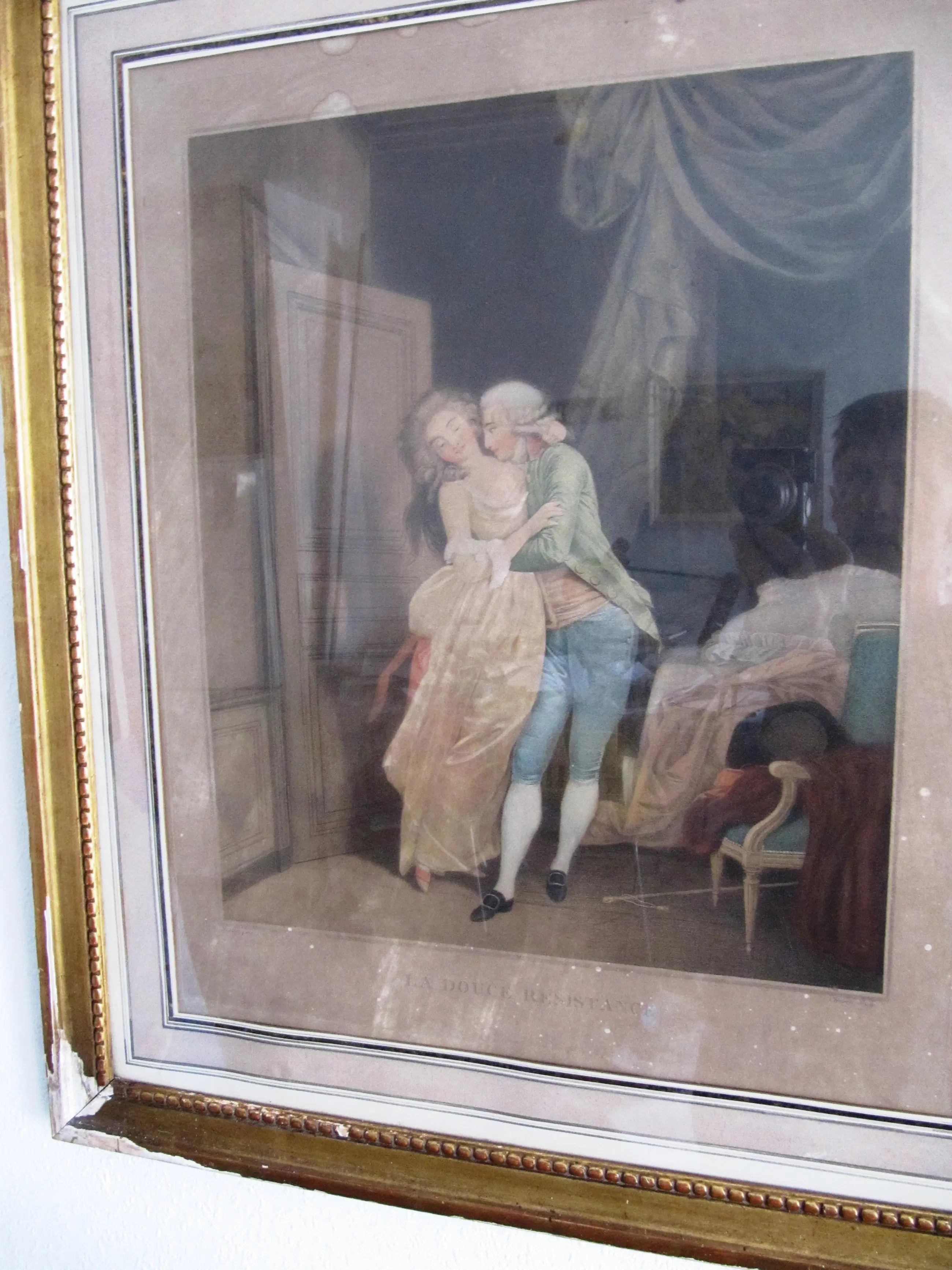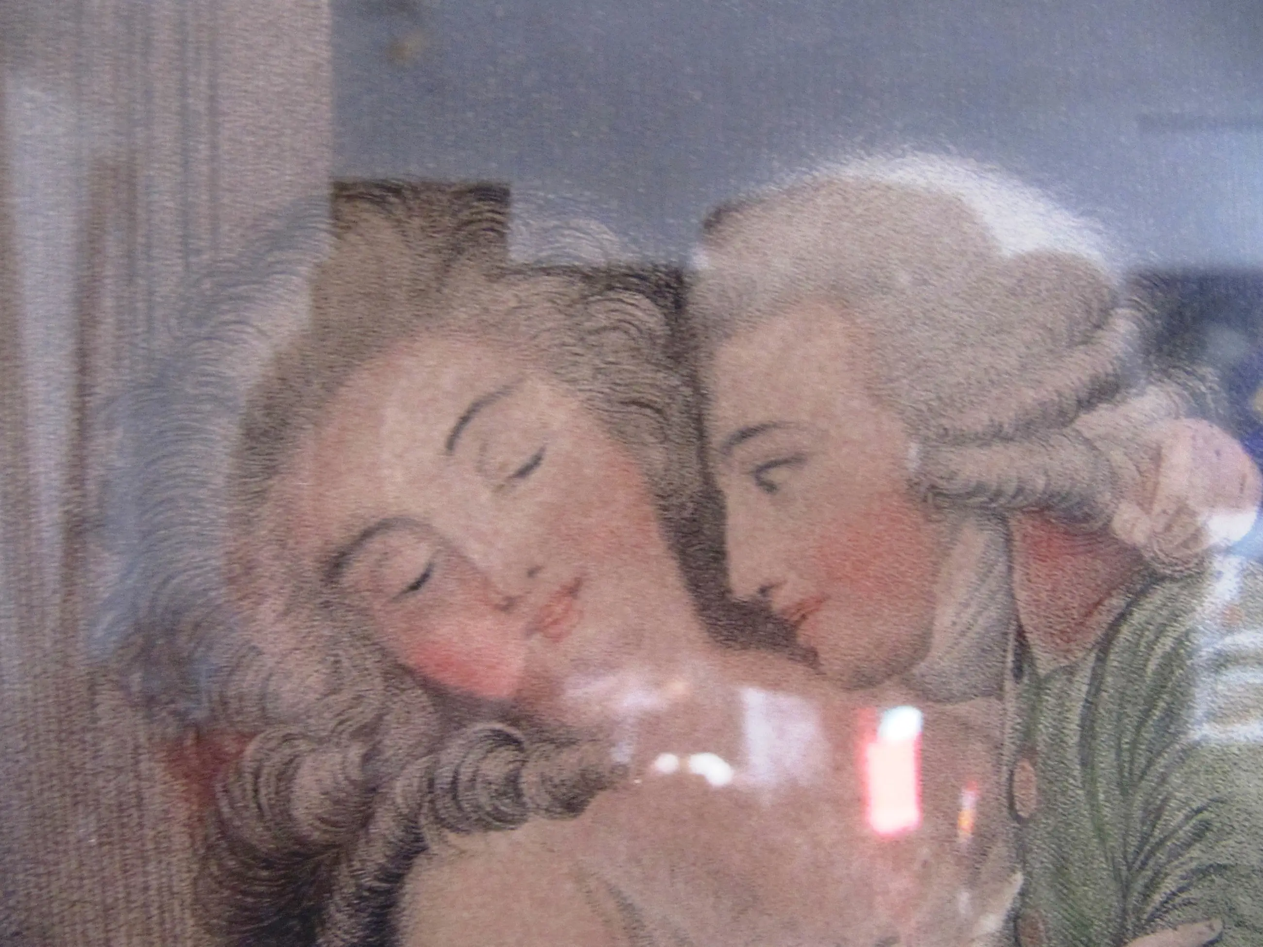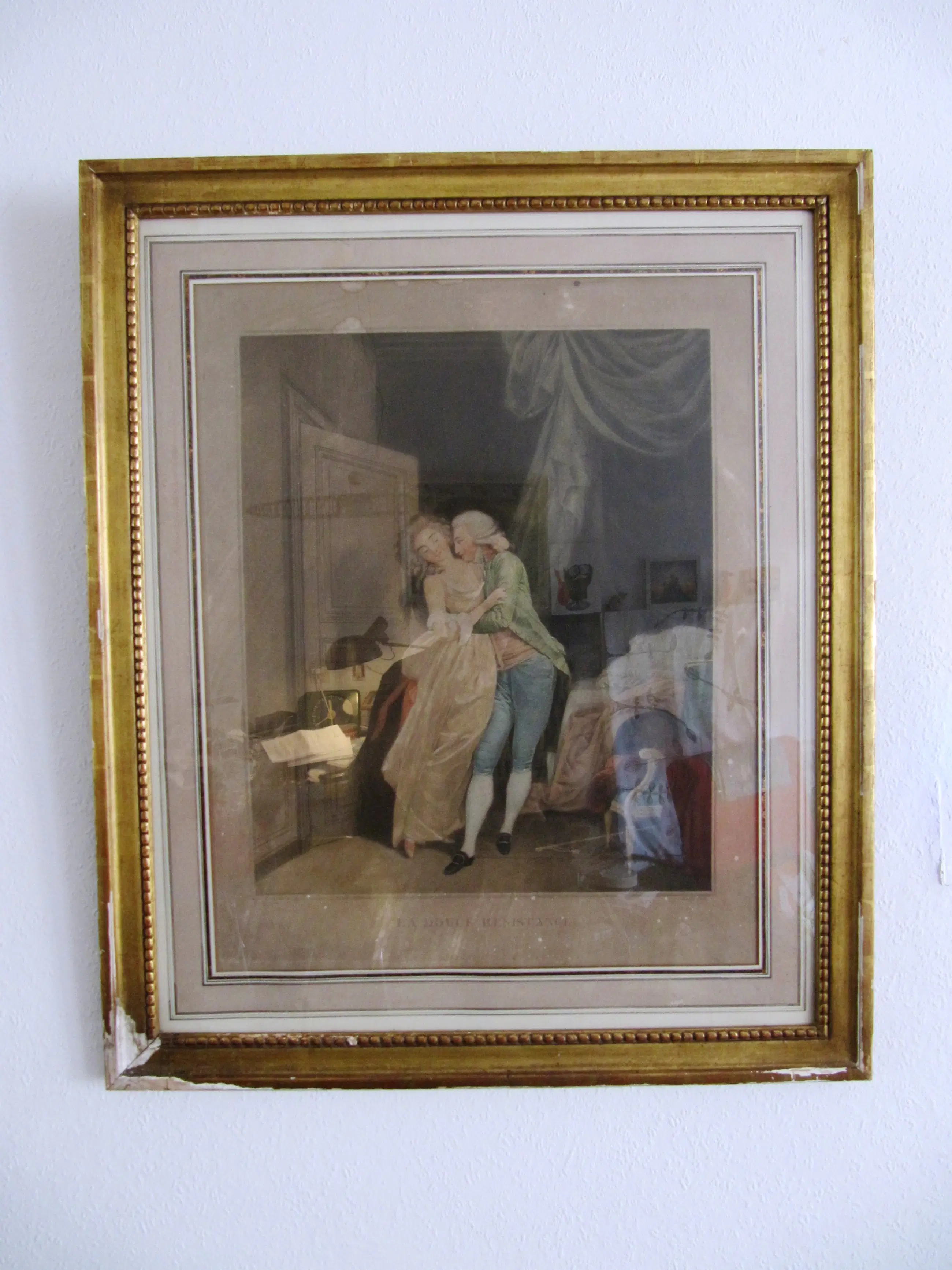 Litho gravure/Lithografie van de Italiaanse kunstenaar/graveur Salvatore Tresca (1750-1815) naar een origineel schilderij van de Franse kunstenaar Louis-Léopold Boilly (1761-1845) getiteld 'La Douce Résistance' (De Zoete Weerstand).