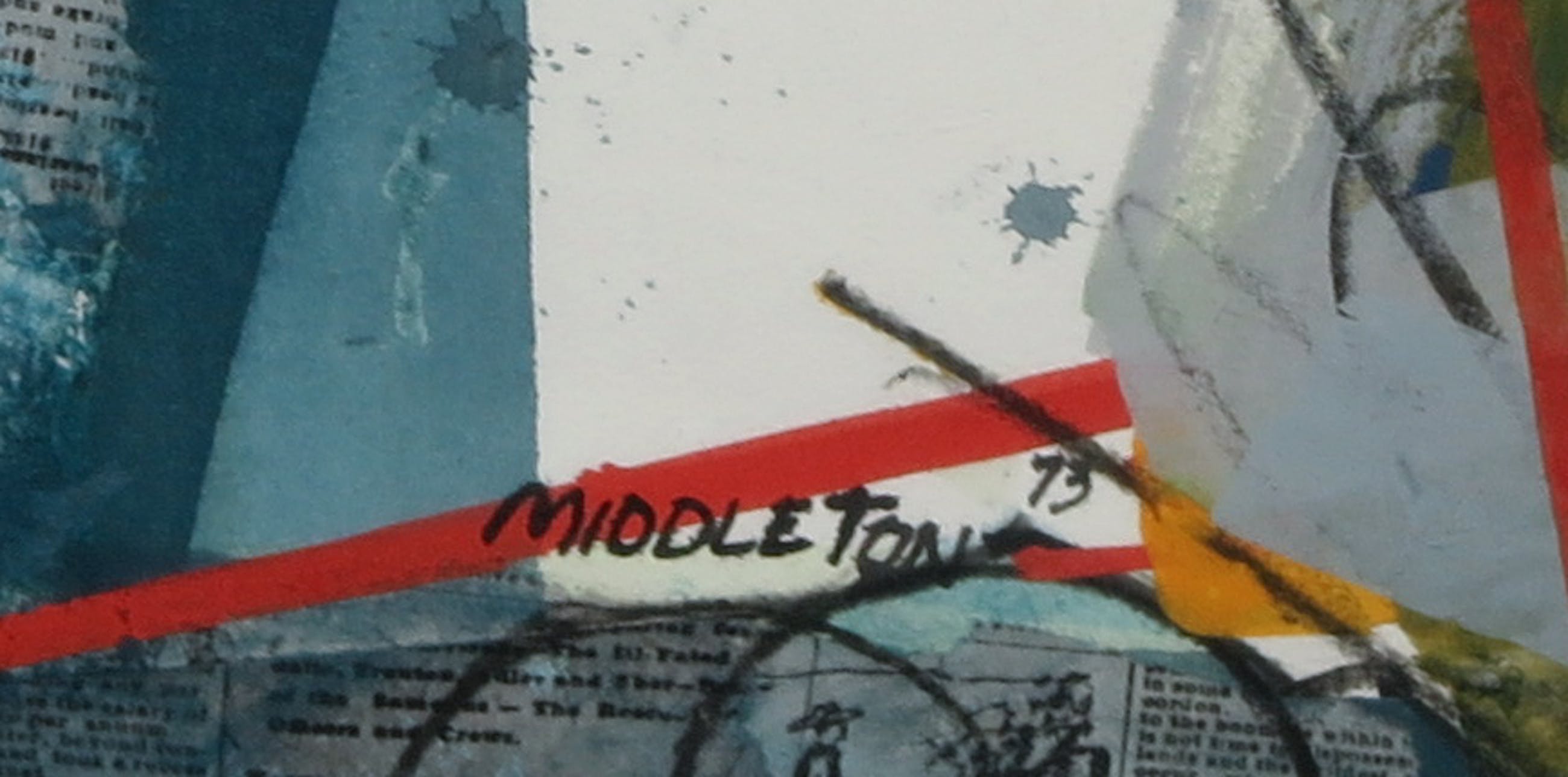 Gemengde techniek bestaande uit o.a. collage, potlood en gouache.
