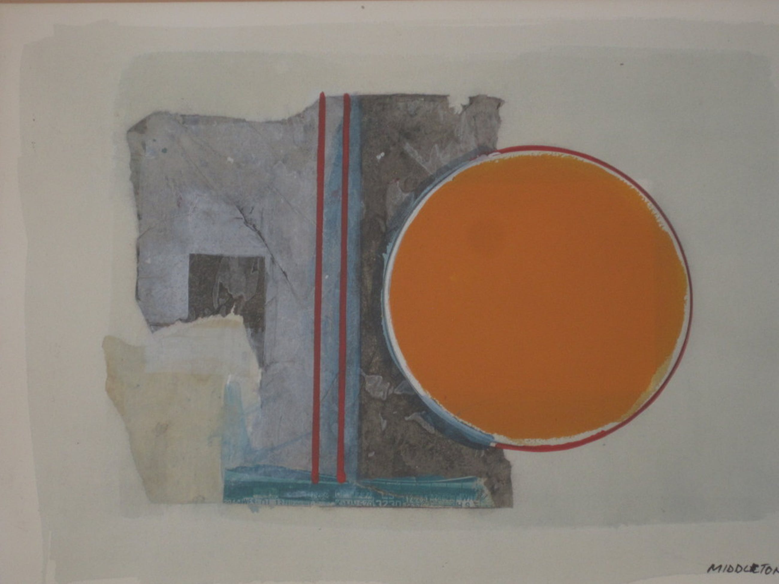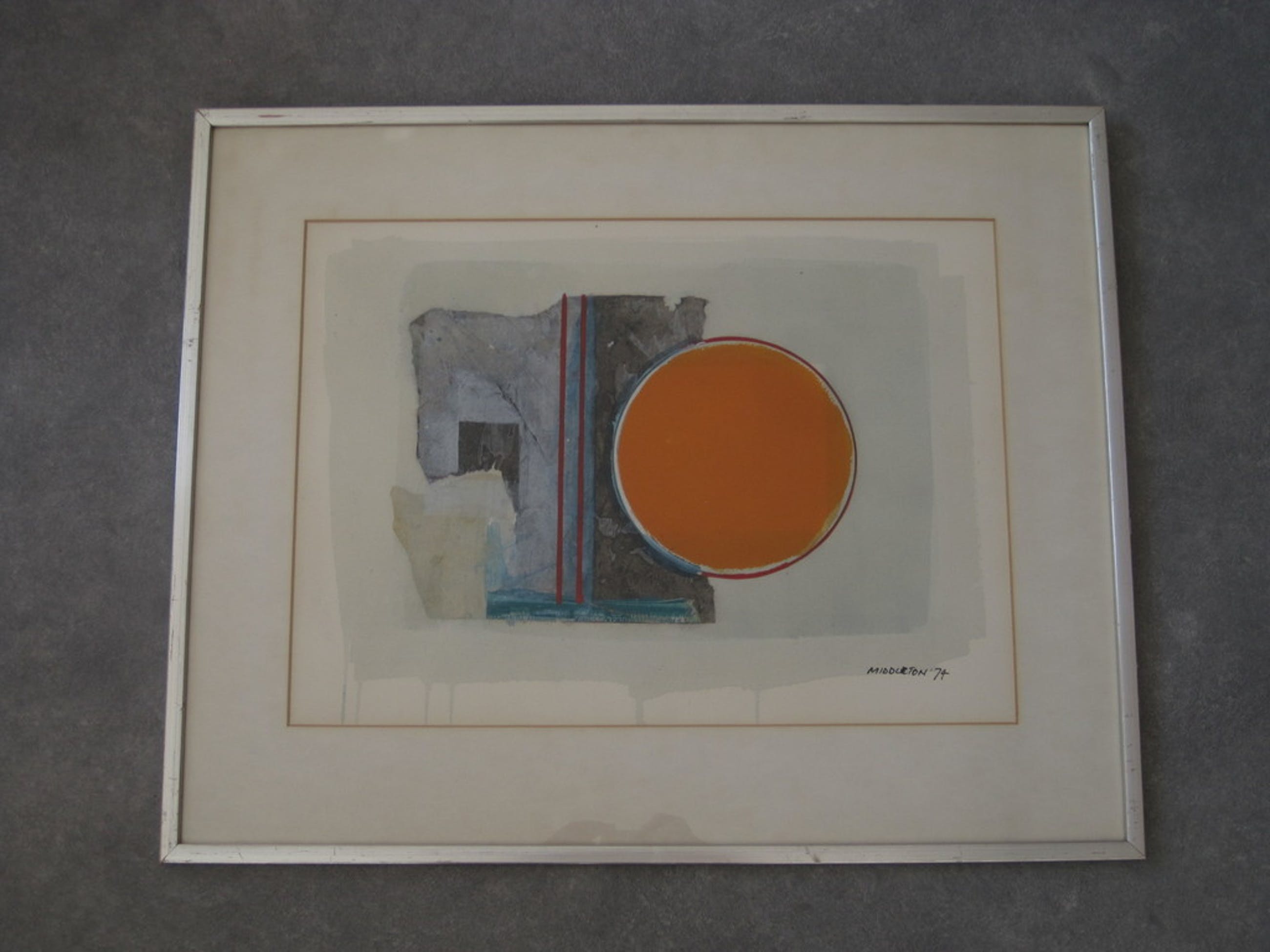 Karakteristiek werk van de Amerikaans Hollandse kunstenaar Sam Middleton (geboren in 1928). Gemengde techniek op papier (Gouache, aquarel en papier) gesigneerd rechtsonder Middleton 74. Het werk verkeert in zeer goede conditie en is exclusief ingelijst. Totale afmetingen ca. 67 x 54 cm.
