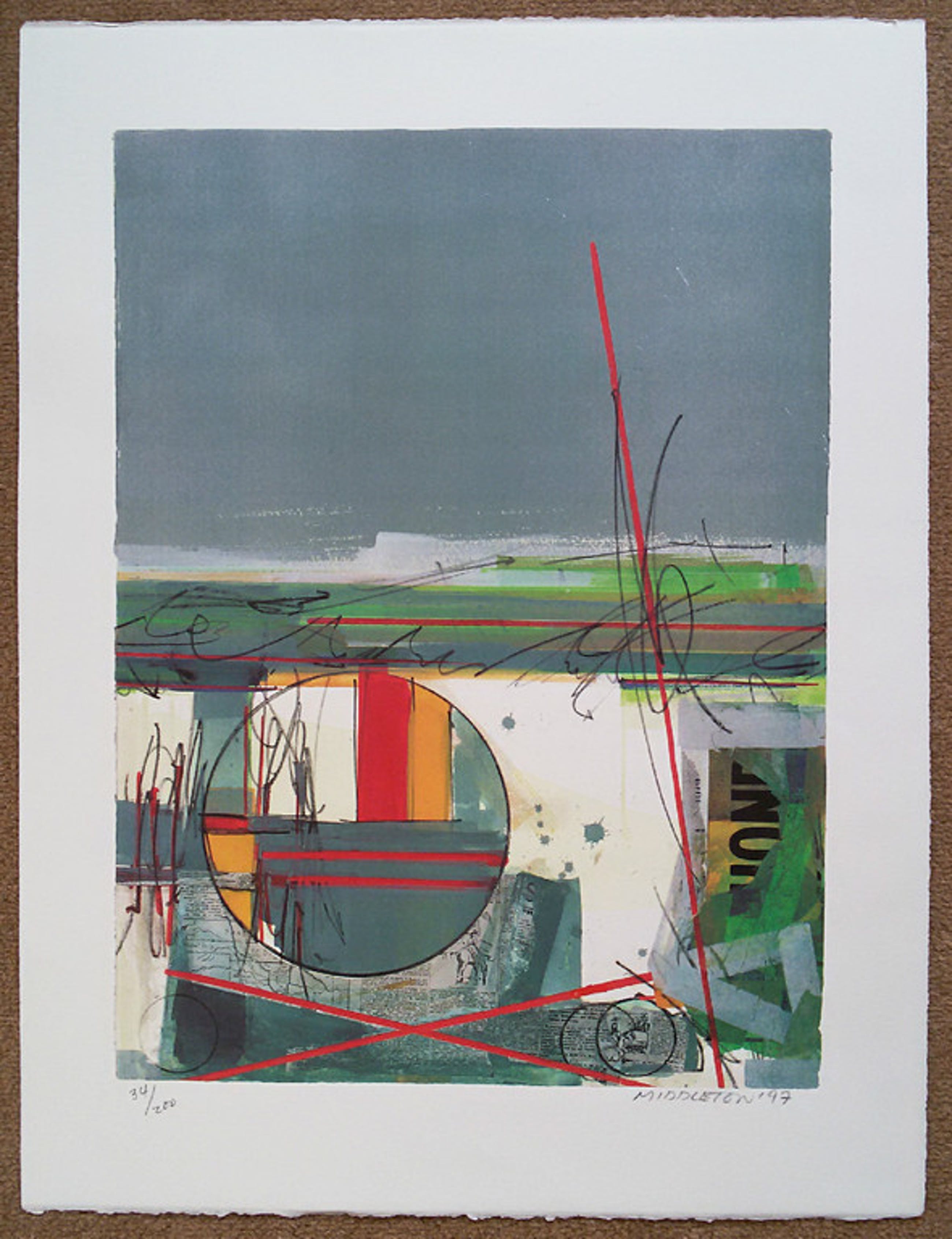 Eén van de mooiere werken van Sam Middleton. Litho op geschept papier (Rives). Met potlood gesigneerd, gedateerd (‘97) en genummerd (34/200). In mint conditie.