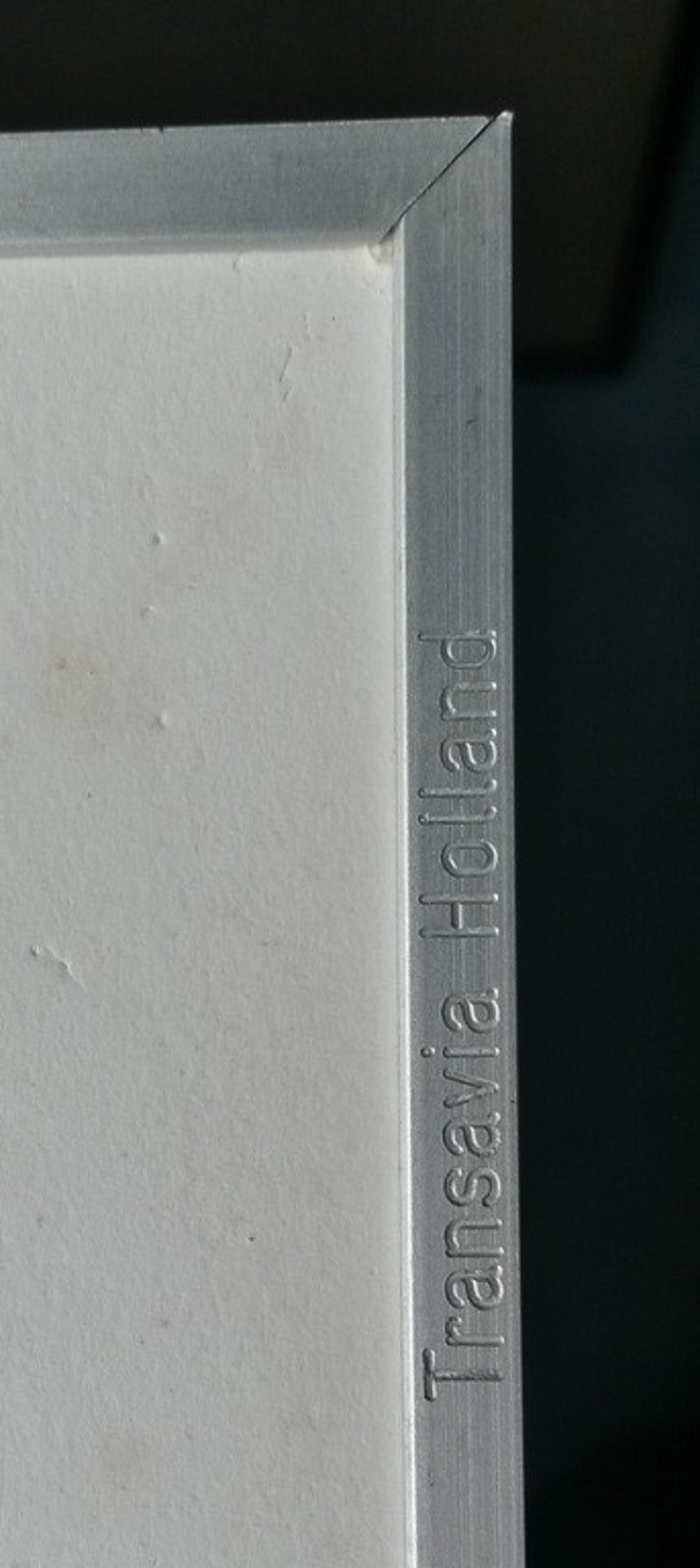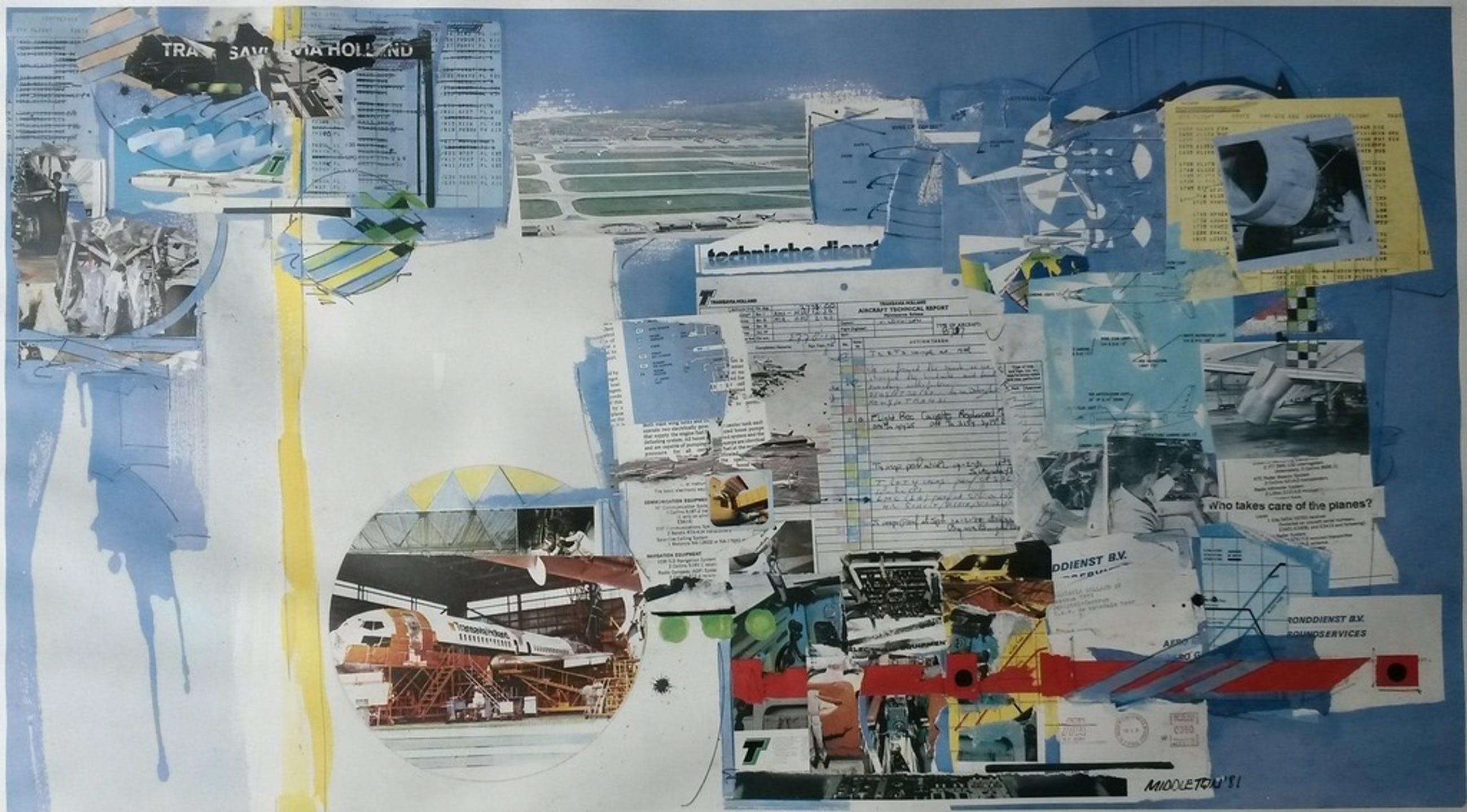 Zeefdruk van Sam Middleton, getiteld Transavia Holland. De titel staat niet op het werk, maar is in de aluminium lijst gegraveerd (zie foto). Het werk is zowel in druk als met potlood r.o gesigneerd. Het betreft nummer 49 van de oplage van 200. De afbeelding meet 32 x 57 cm, de lijst is 49 x 71 cm.