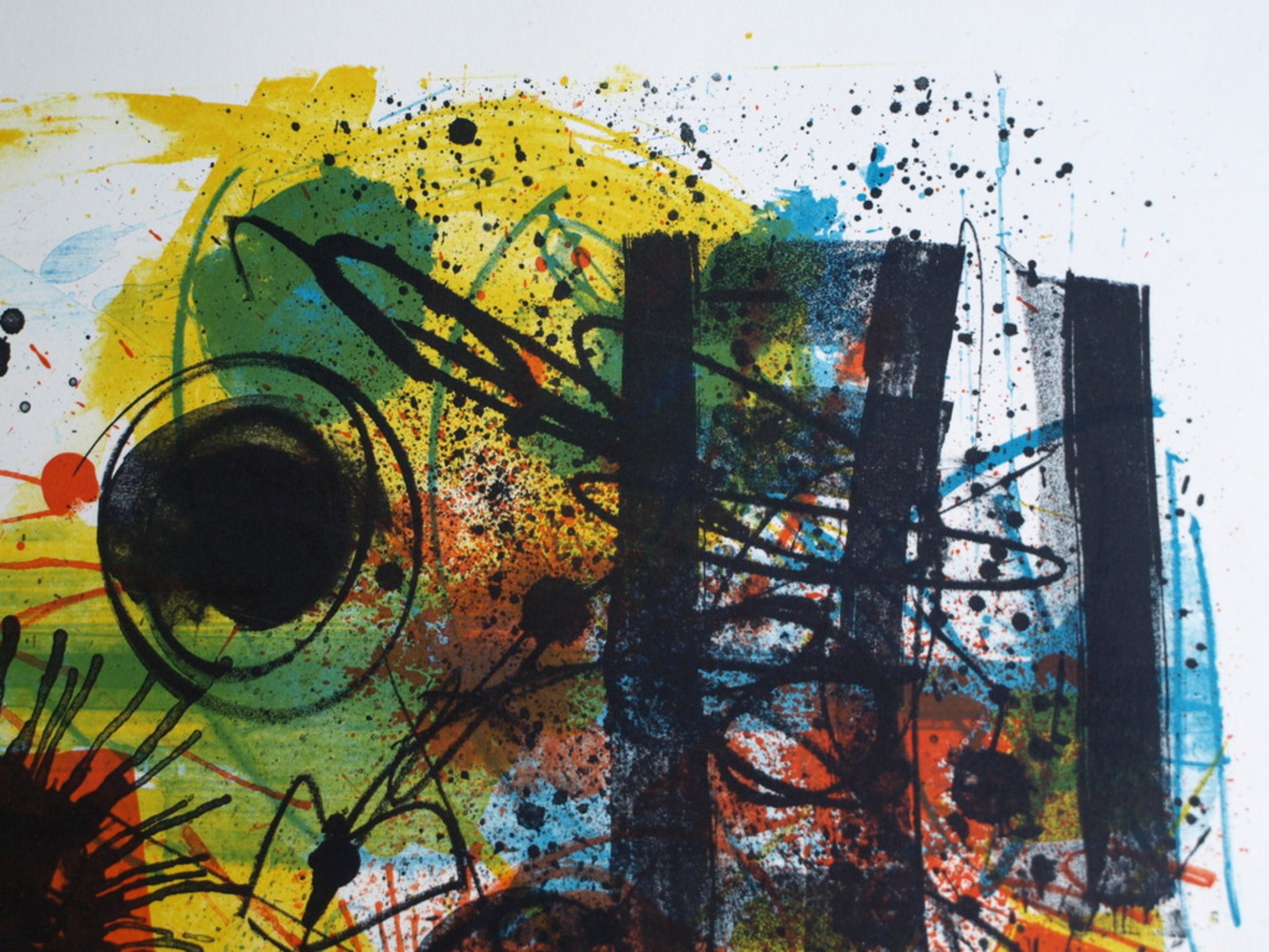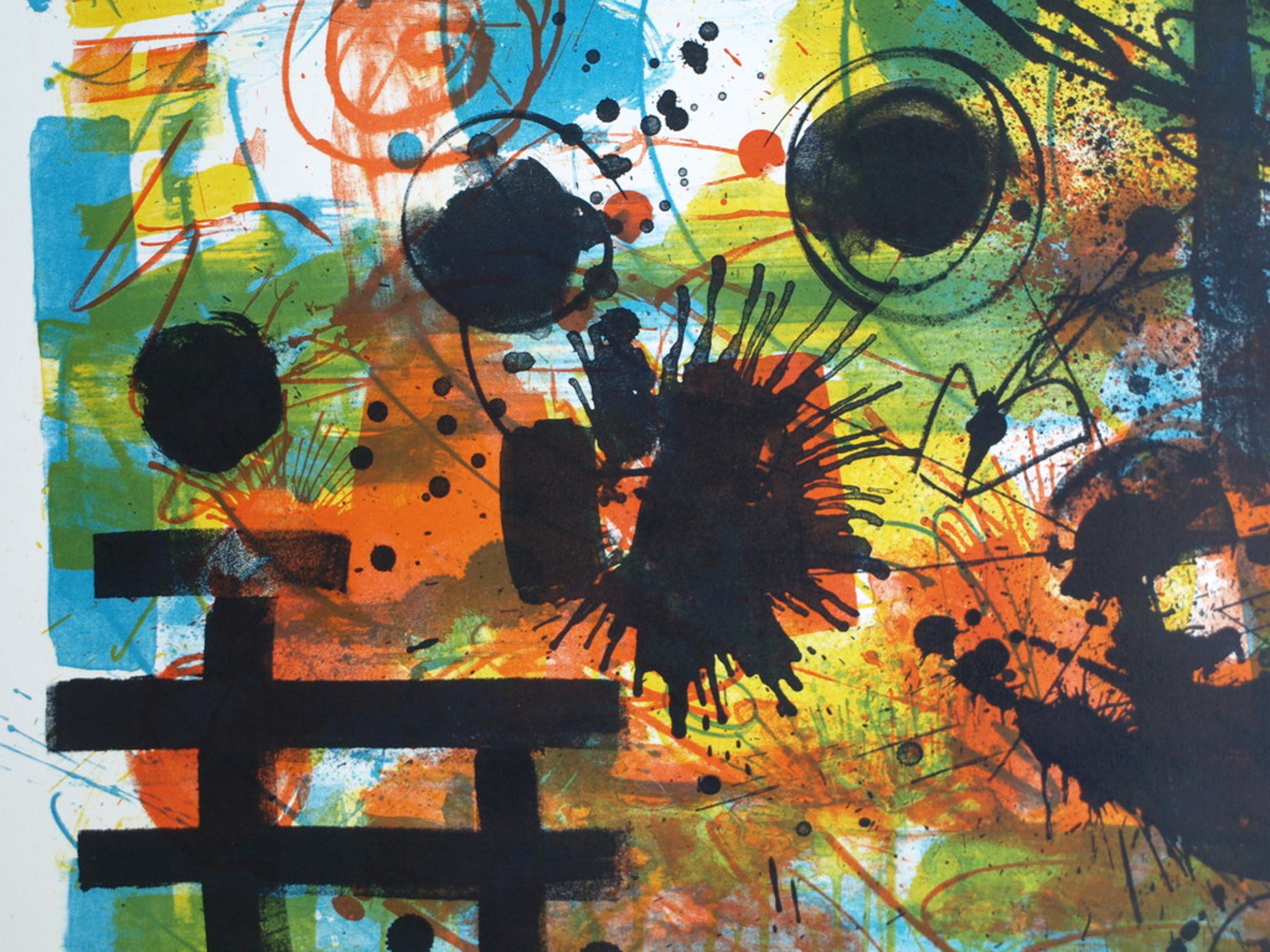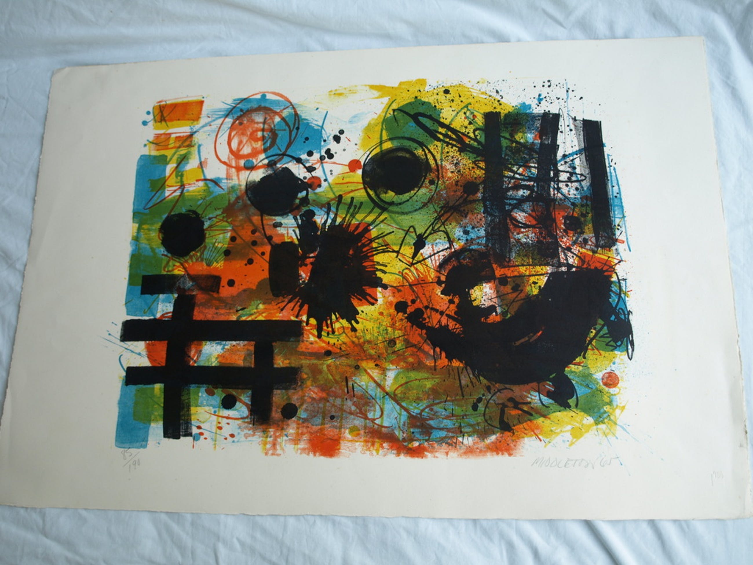 Een grote kleurenlitho uit 1965 van de Amerikaanse / Nederlandse kunstenaar Sam Middleton (1927-2015).