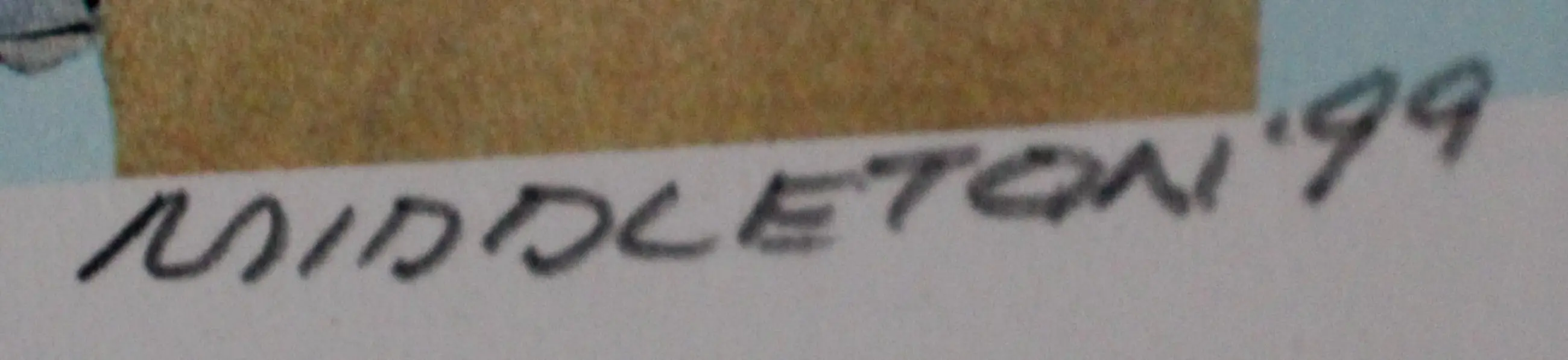 Zeefdruk van Sam Middleton. Titel: Blues manuscript. Jaar: 1999. Oplage: 60/75. Afmetingen blad: H60 x b75cm. Afmetingen voorstelling: H50 x b65cm. Het werk is rechts onderaan gesigneerd door de kunstenaar. De authenticiteit van het aangeboden werk wordt volledig gegarandeerd. Een certificaat van echtheid kan, op aanvraag, worden gemaild.