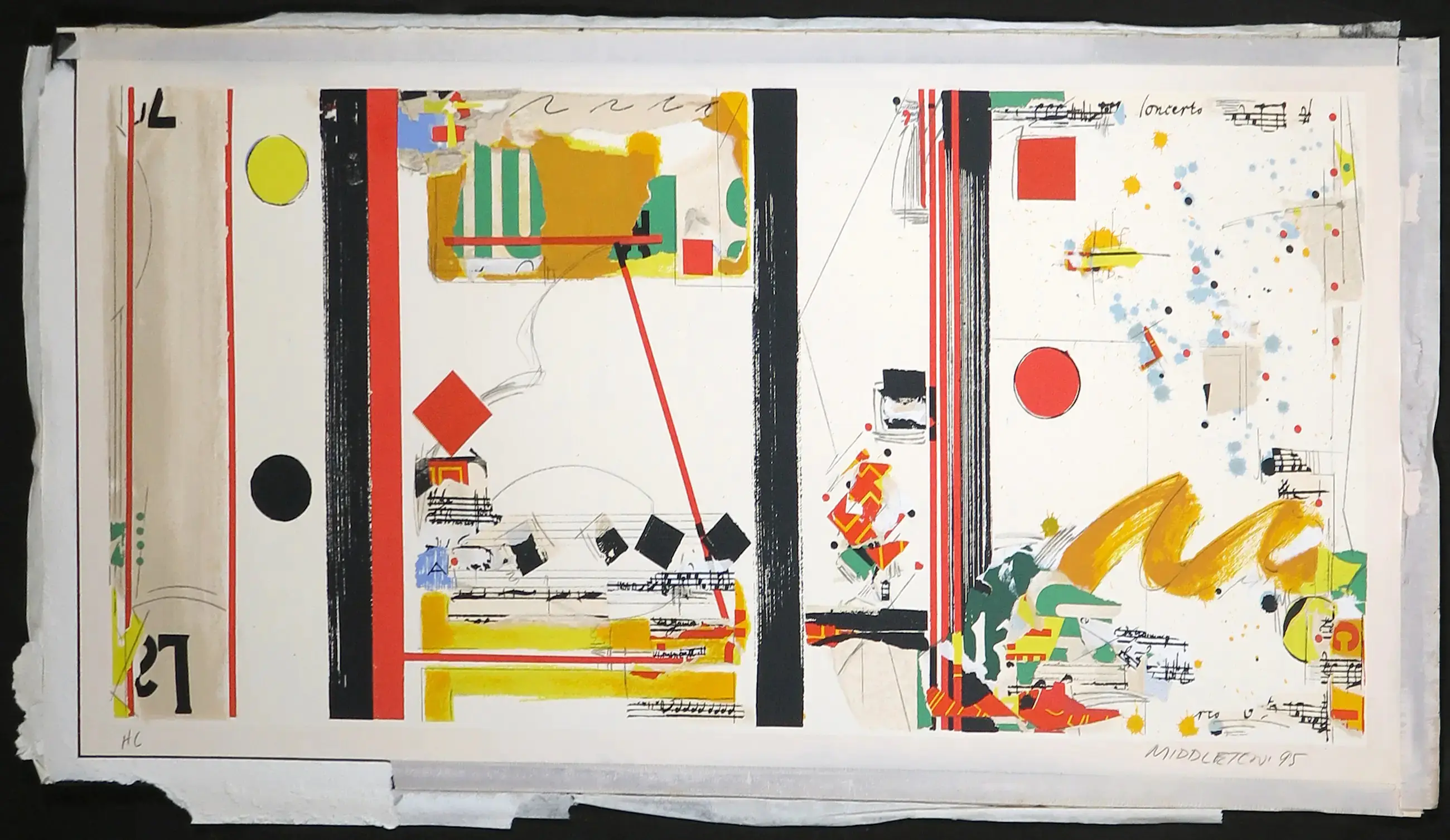 | De voorstelling zelf is in goede staat, maar de zeefdruk is uit zijn passe-partout gescheurd, wat voor papierschade rondom de voorstelling heeft gezorgd. Zie ook de foto's. | |||||||||||