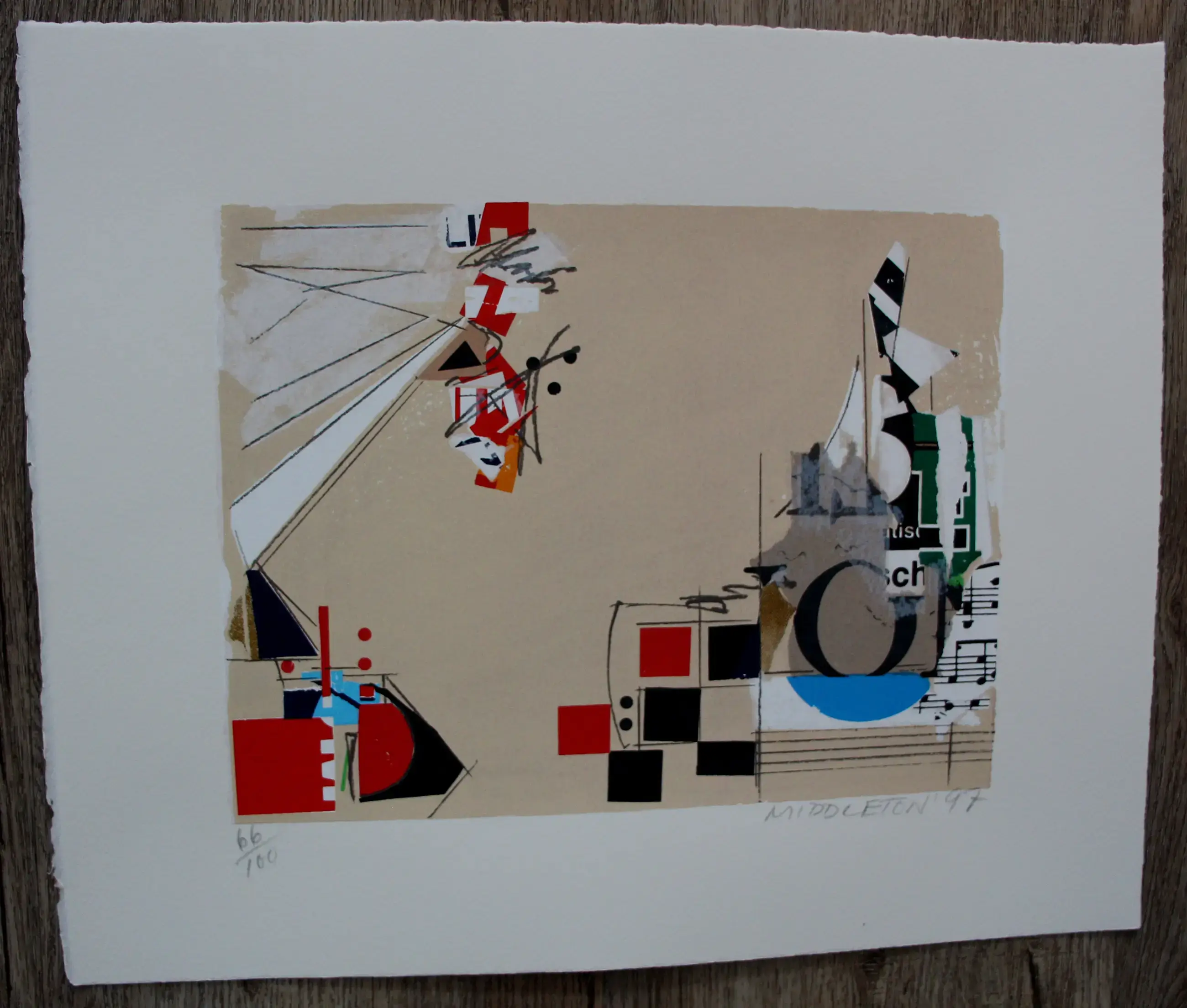 Zeefdruk van Sam Middleton. Jaar: 1997. Oplage: 66/100. Afmetingen blad: H37 x b45cm. Afmetingen voorstelling: H24 x b31cm. Het werk is rechts onderaan, met potlood, gesigneerd door de kunstenaar. De authenticiteit van het aangeboden werk wordt volledig gegarandeerd. Een certificaat van echtheid kan, op aanvraag, worden gemaild.