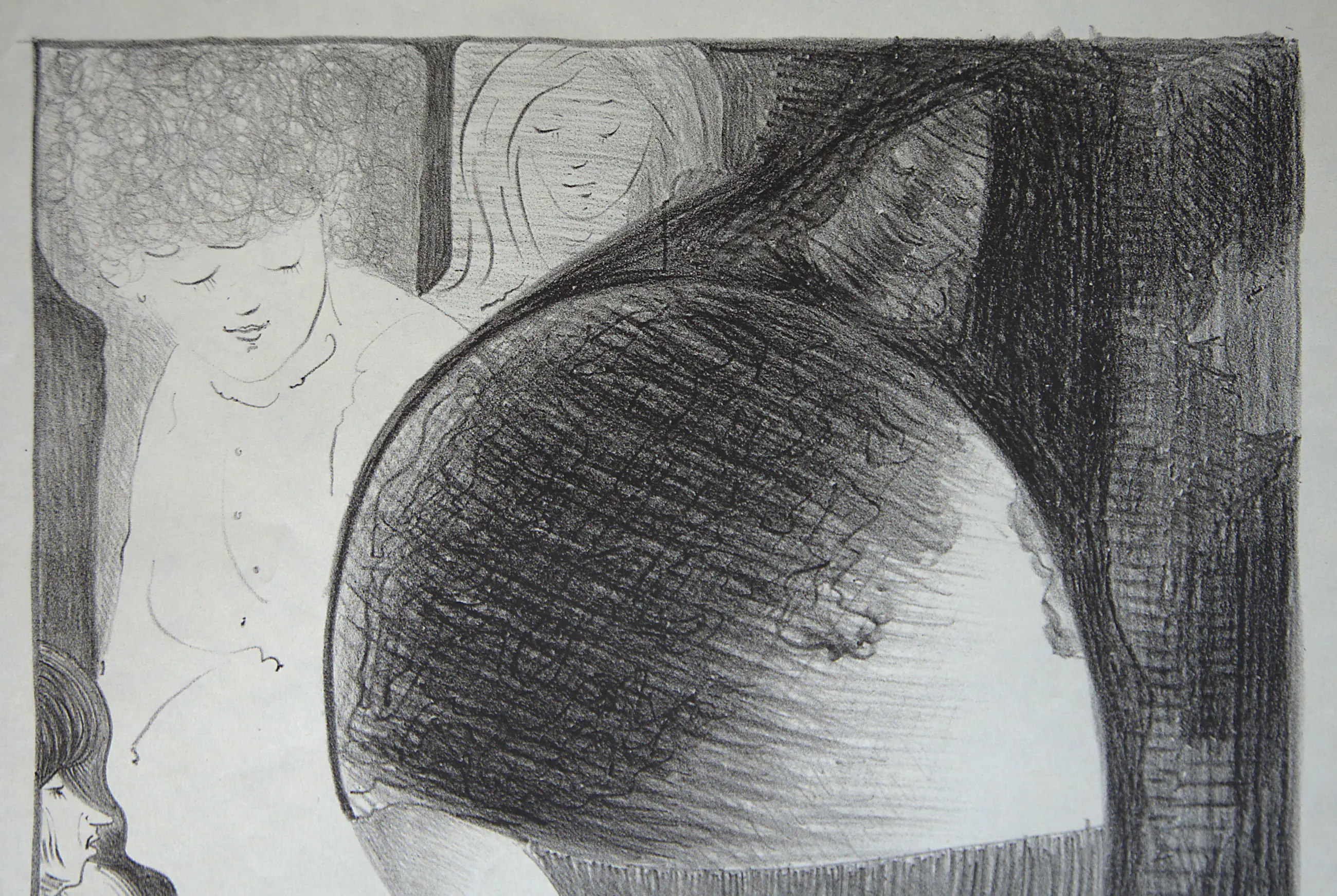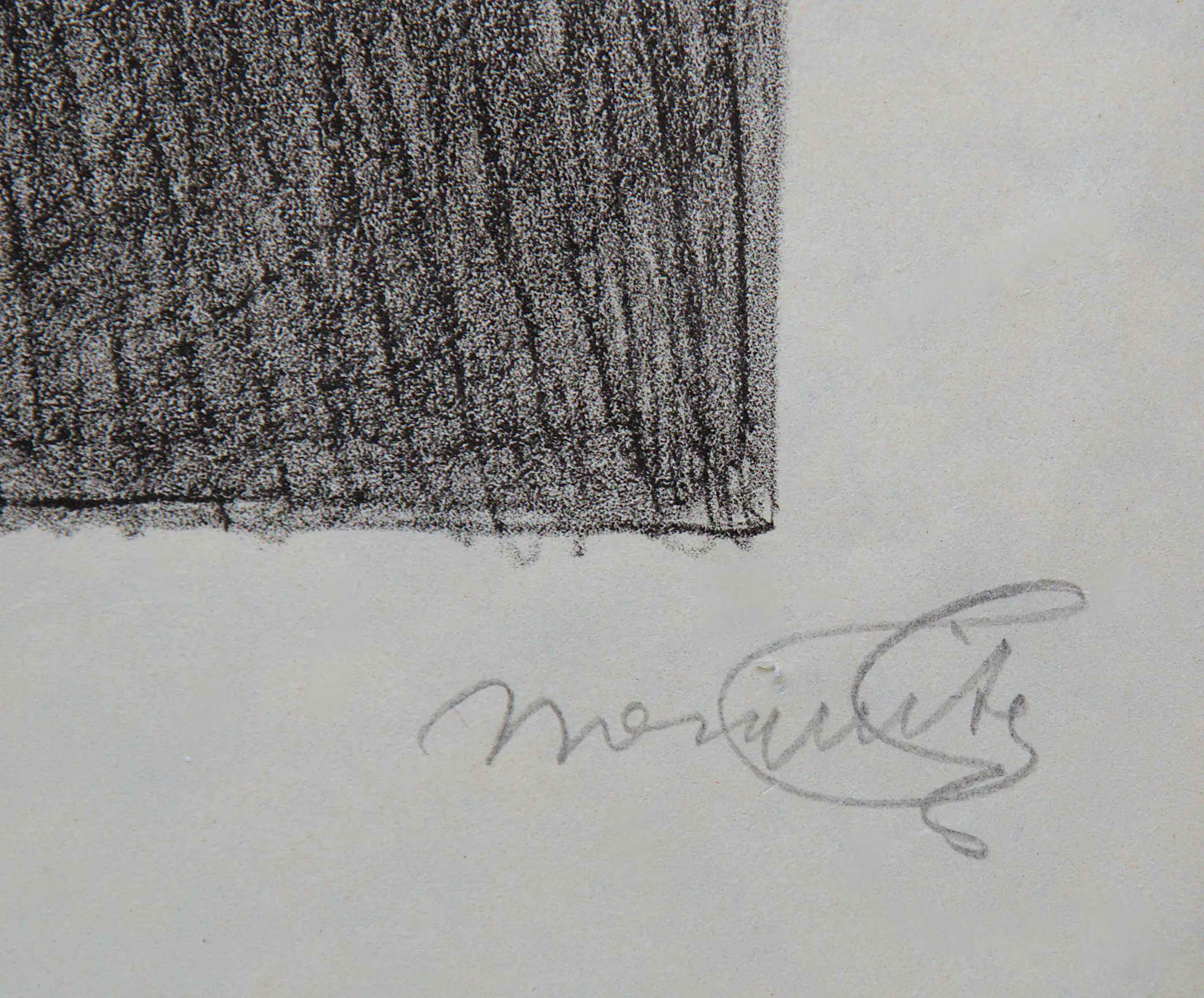 Beeldmaat: 30 x 24 cm Bladmaat: 39 x 32 cm. Los blad (oorspronkelijke afmeting) in uitstekende kwaliteit. Catalogus Jonieke van Es: nr L 005 Eén van de 10 oorspronkelijke lithographieën uit 1915, uitgegeven in 100 genummerde mappen. Gesigneerd in Potlood. Monogram in de steen.