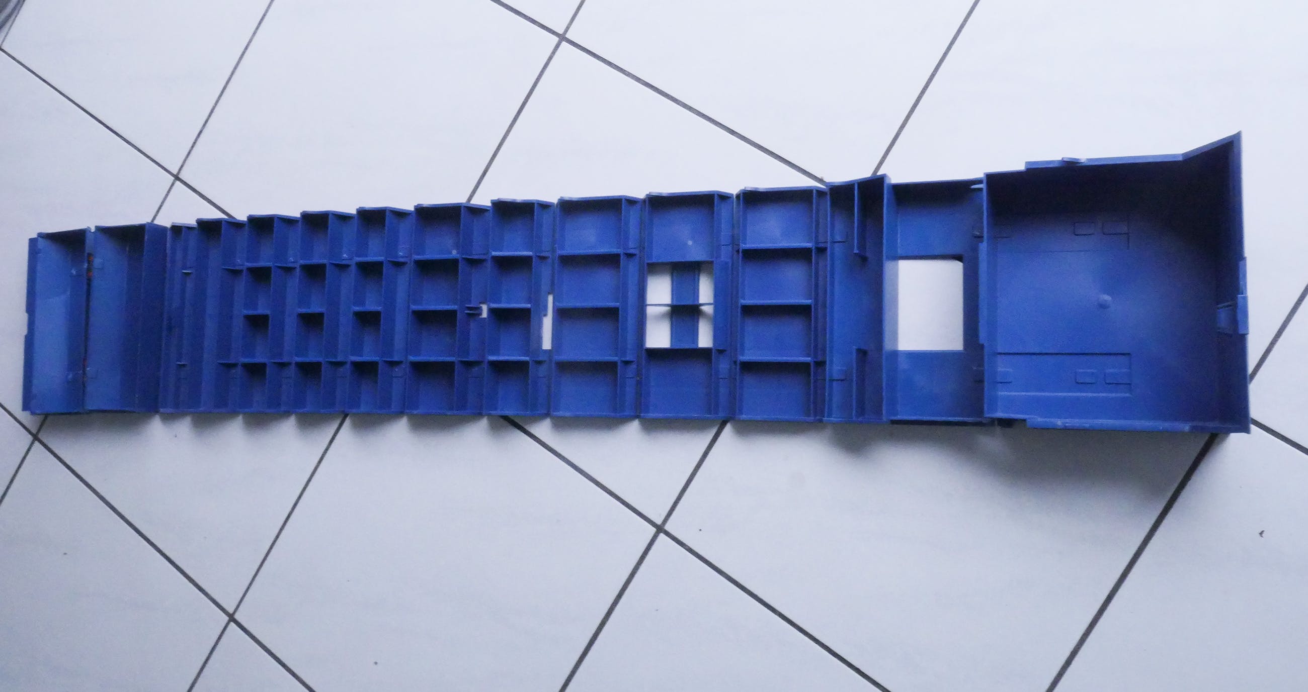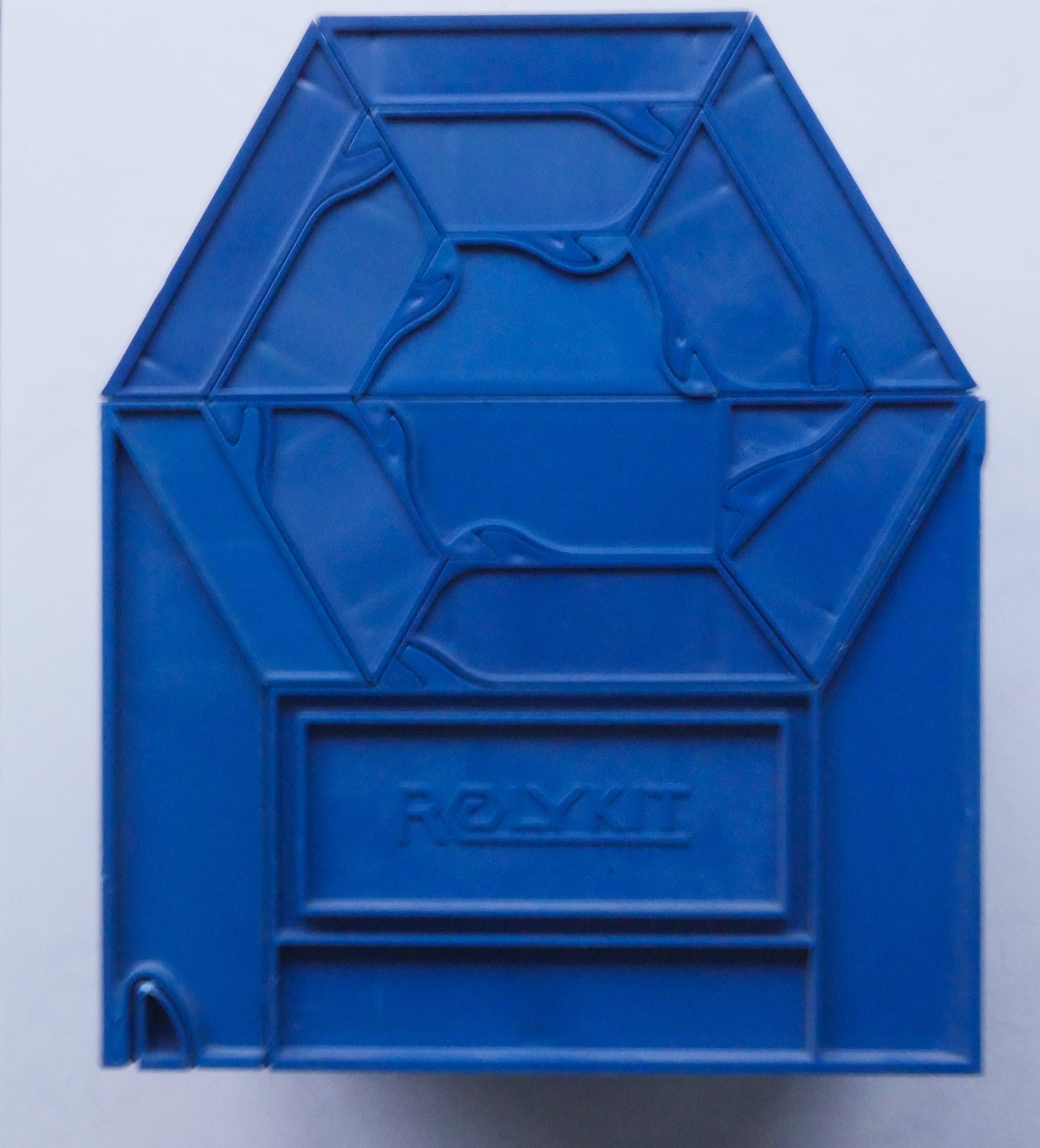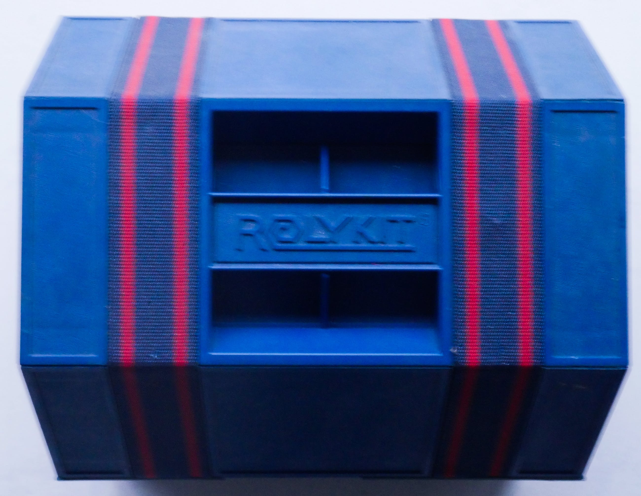 Multi funtionelen Rolykit jaren '70De Rolykit is een zeshoekig oprolbaar opbergsysteem. Het werd in 1973 bedacht door de cineast Samuel Meijering.Design boxAfmetingen: 163 cm x 27.5 cm x 29 cm Gewicht: 2.5 kg Kleur: Blauw Leeftijd / Datering : Jaren '70 Herkomst: Purmerend - Holland Maker: VanderMolen Materiaal: Kunststof met nylon banden Totaal 35 vakken . In goede staat .