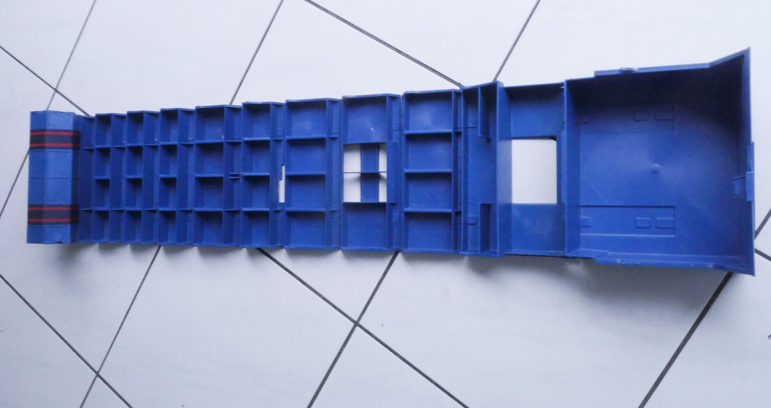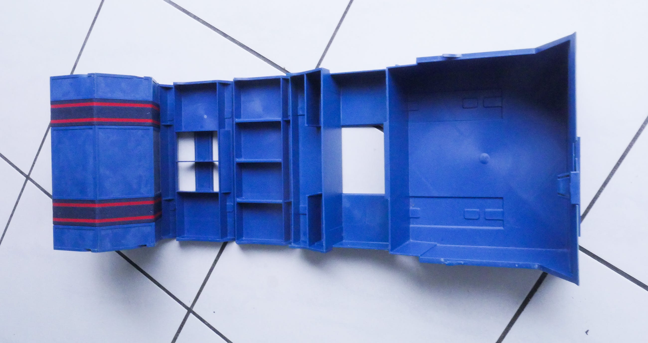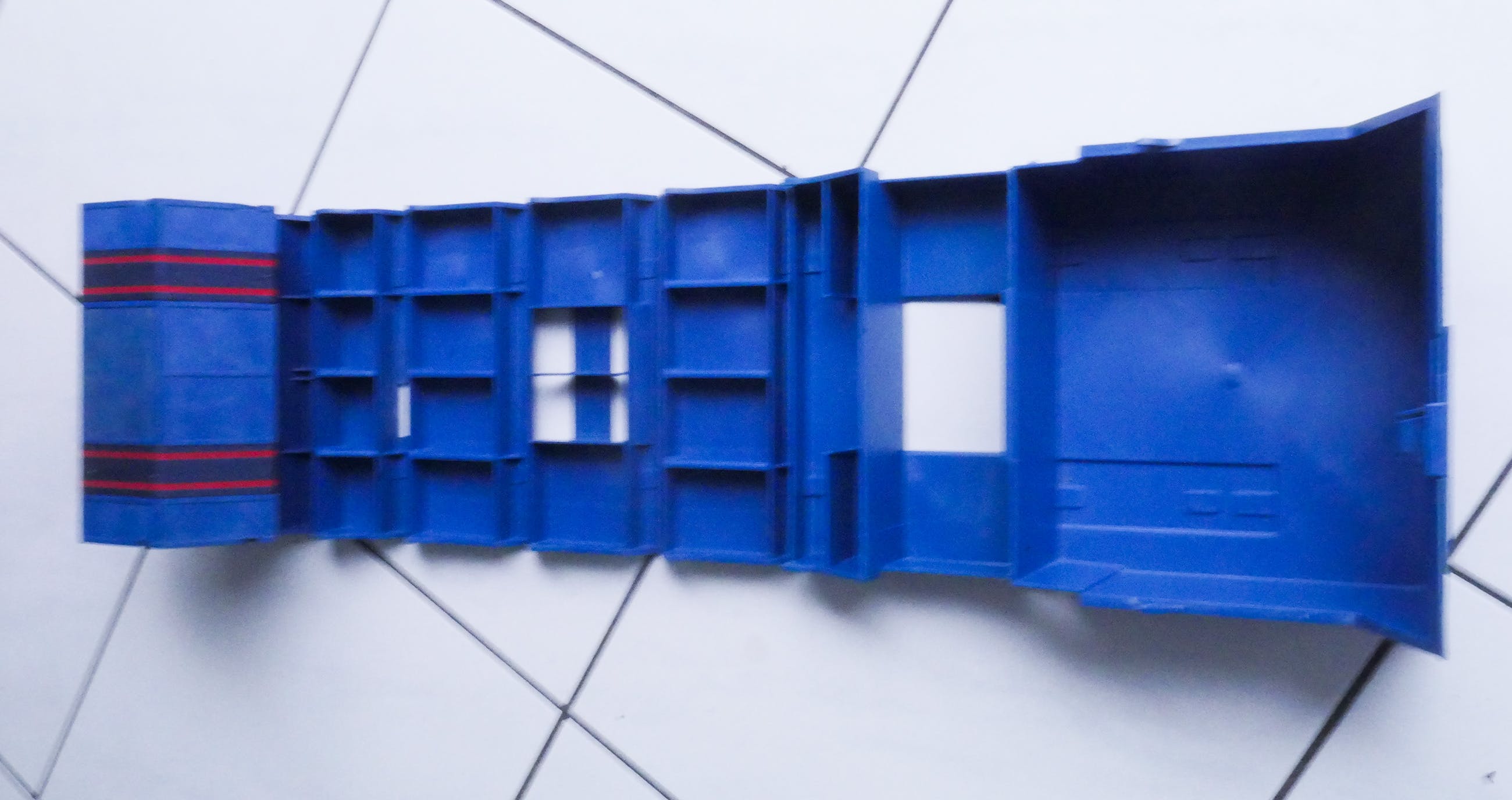 Multi funtionelen Rolykit jaren '70De Rolykit is een zeshoekig oprolbaar opbergsysteem. Het werd in 1973 bedacht door de cineast Samuel Meijering.Design boxAfmetingen: 163 cm x 27.5 cm x 29 cm Gewicht: 2.5 kg Kleur: Blauw Leeftijd / Datering : Jaren '70 Herkomst: Purmerend - Holland Maker: VanderMolen Materiaal: Kunststof met nylon banden Totaal 35 vakken . In goede staat .