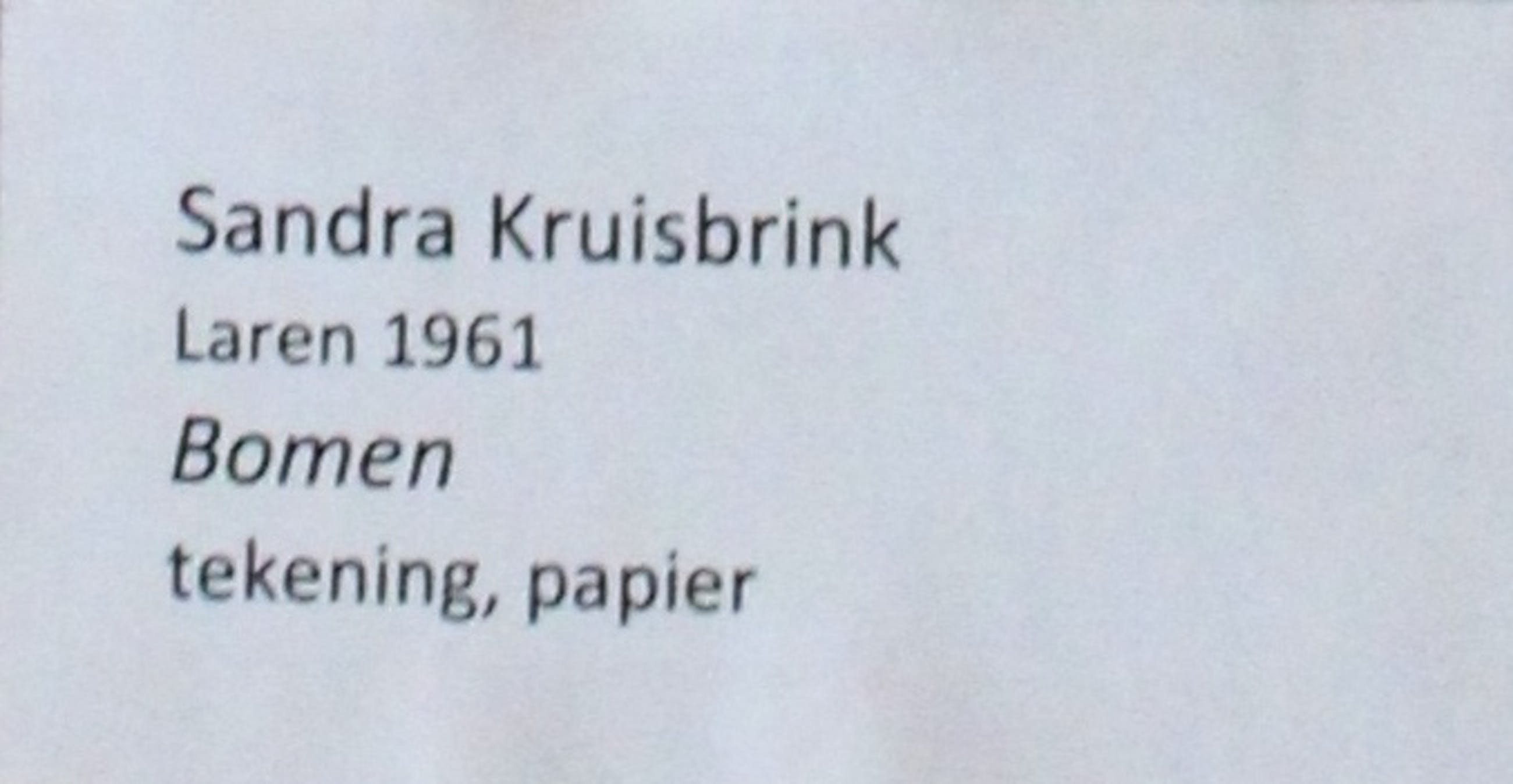 Sandra kruisbrink (1961) is een veelzijdig tekenaar en neemt met haar delicaat getekende landschappen een bijzondere plek in de Nederlandse tekenkunst in. Haar werken op papier ogen licht en open, maar ze zijn heel doorwerkt en ontstaan uit een zeer arbeidsintensief proces.