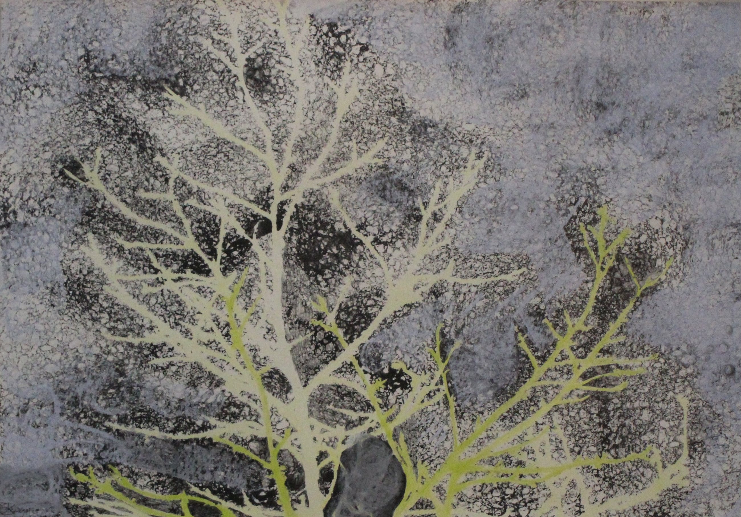 Kruisbrink haalt haar inspiratie uit de natuur waarbij in haar recente werk bergen en bomen de boventoon voeren.