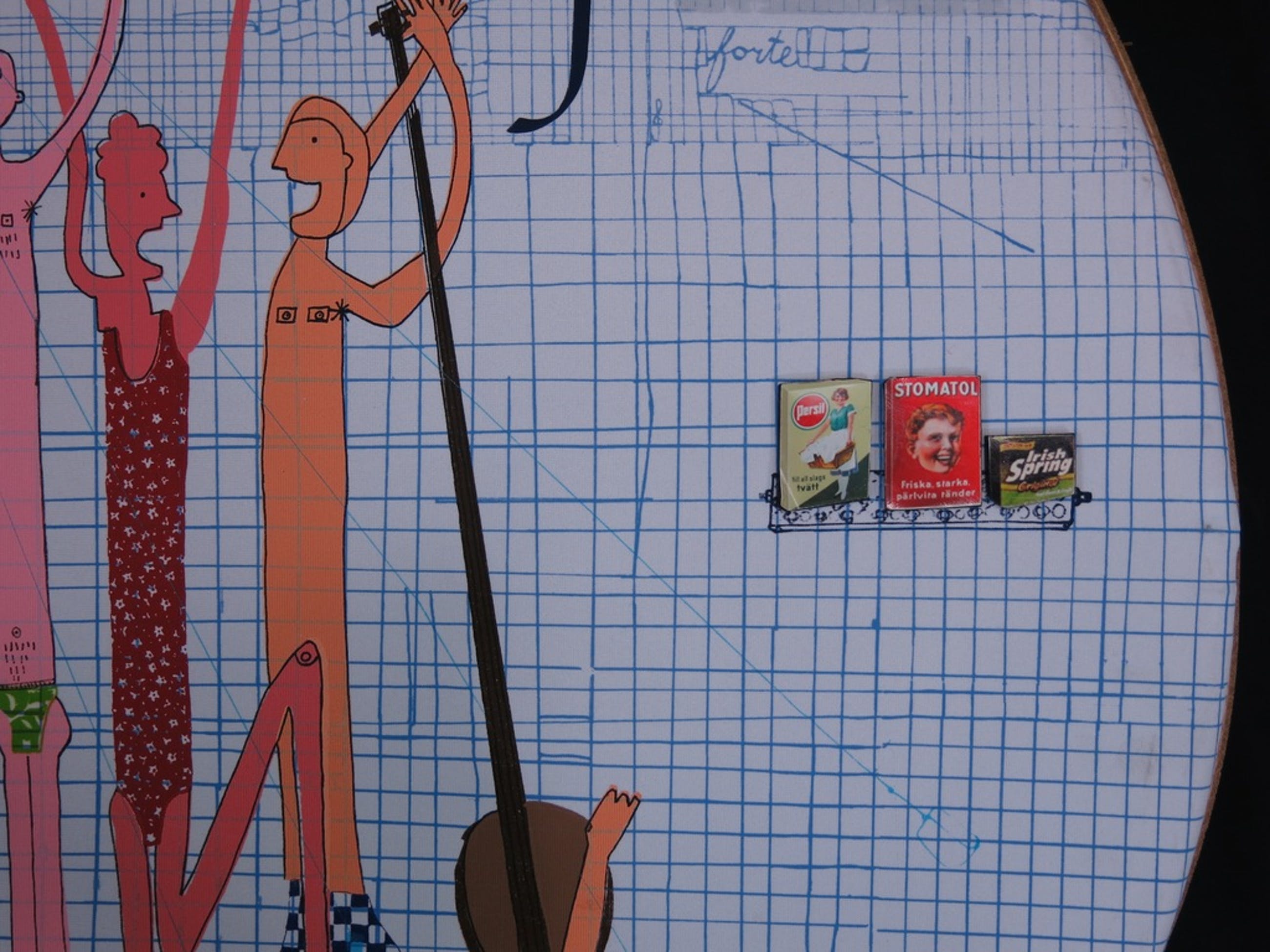 Materiaal: Gemengde techniek o.a. hout, doek en collage