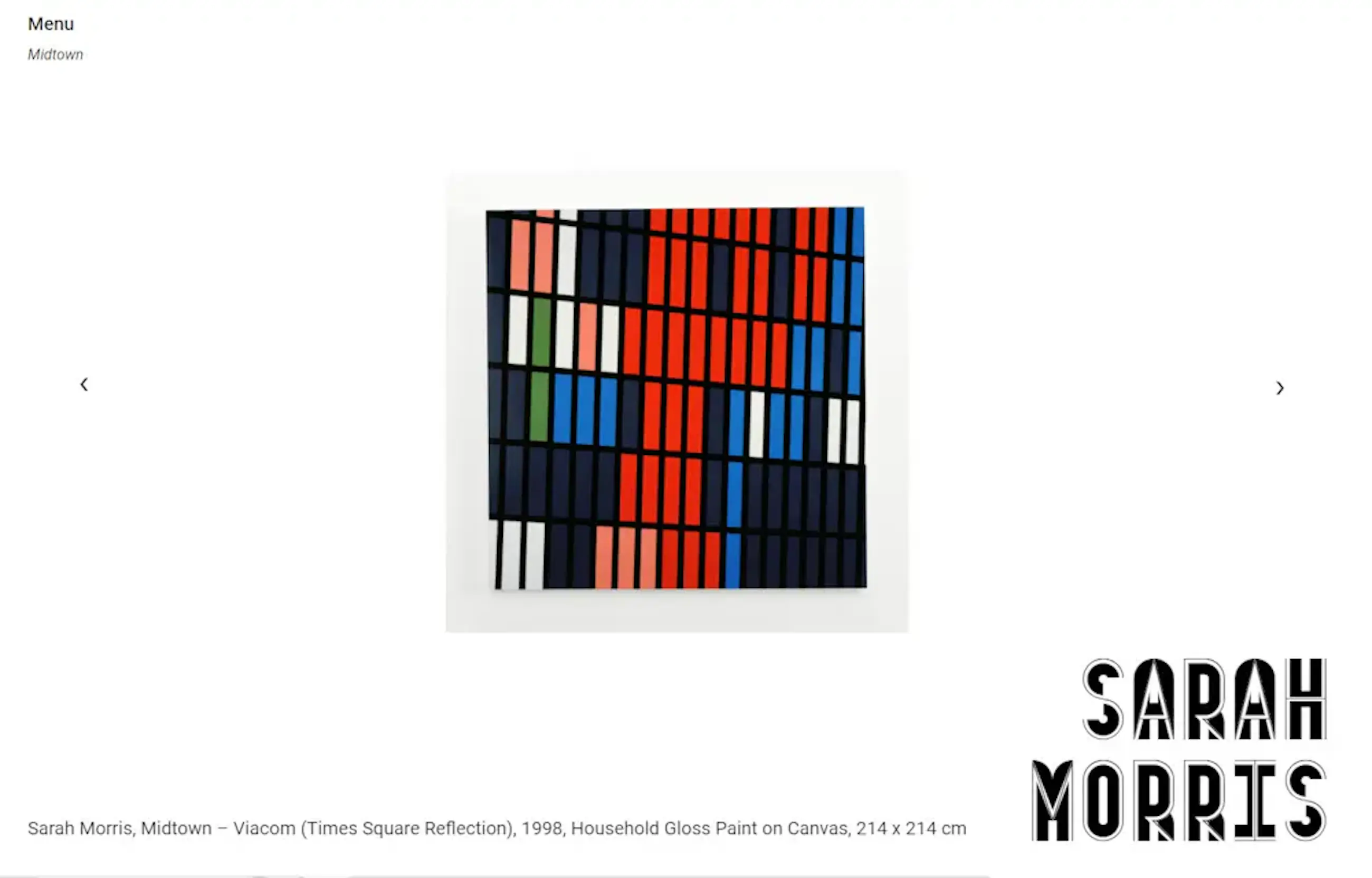 Op haar website is het originele werk te zien uit 1998:https://sarahmorris.com/paintings/midtown/