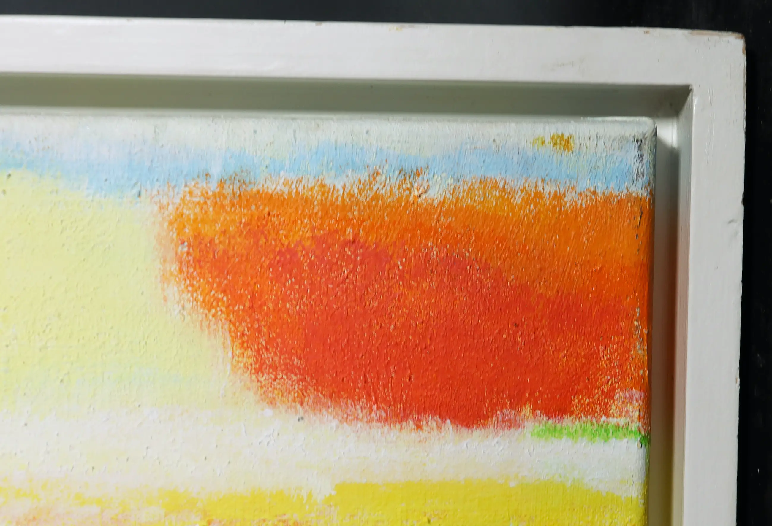 Lichte verfschade langs de randen van het werk, zie de foto's. Ook een klein plekje met verfschade in het groen. | |