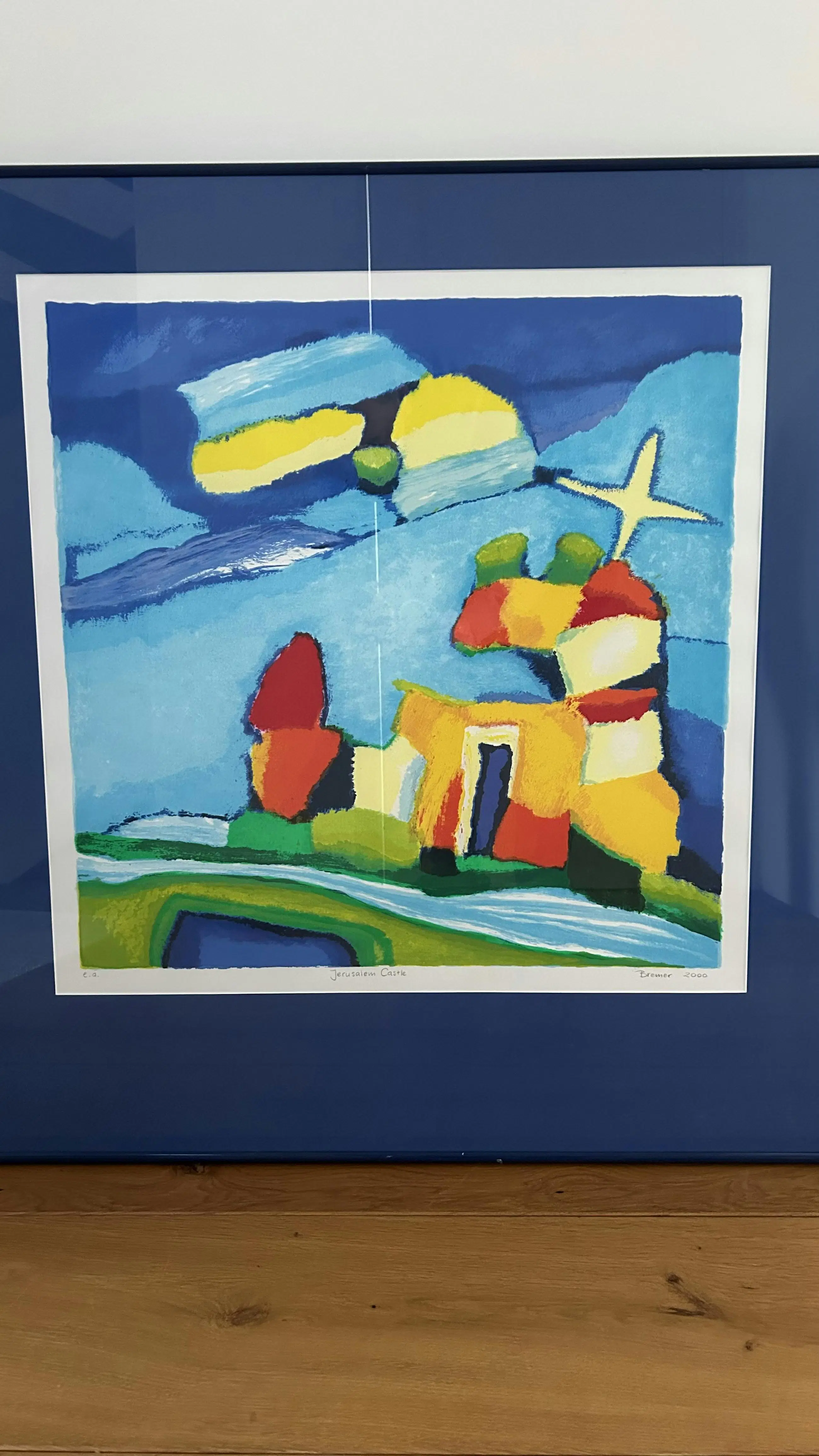 Zeefdruk “Jerusalem Castle”. Perfecte staat. Professioneel ingelijst door “De Angstel”. Lijst is van aluminium. Lijst heeft een kleine beschadiging bovenop (zie foto). Kunstwerk + Lijst + glas= 6,5 kg.