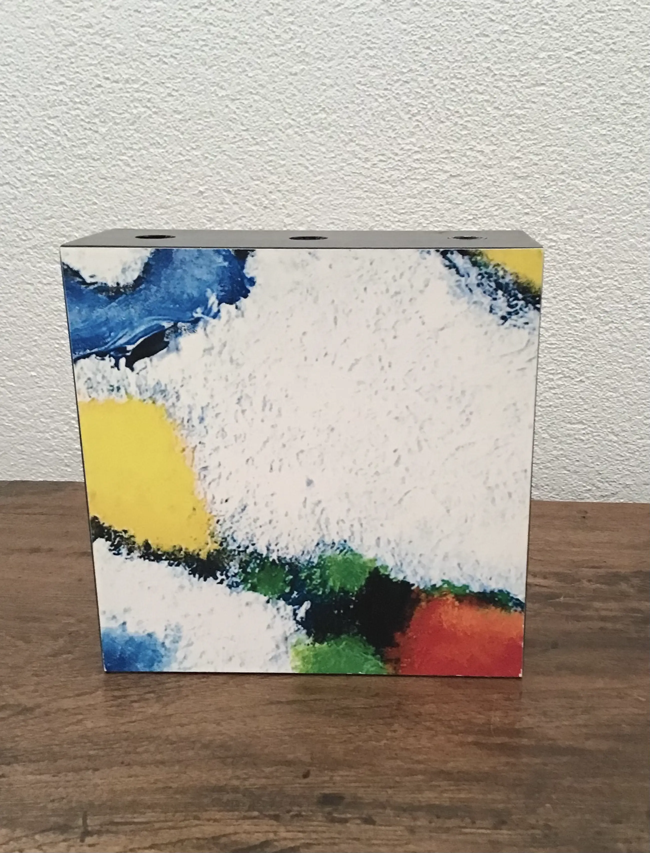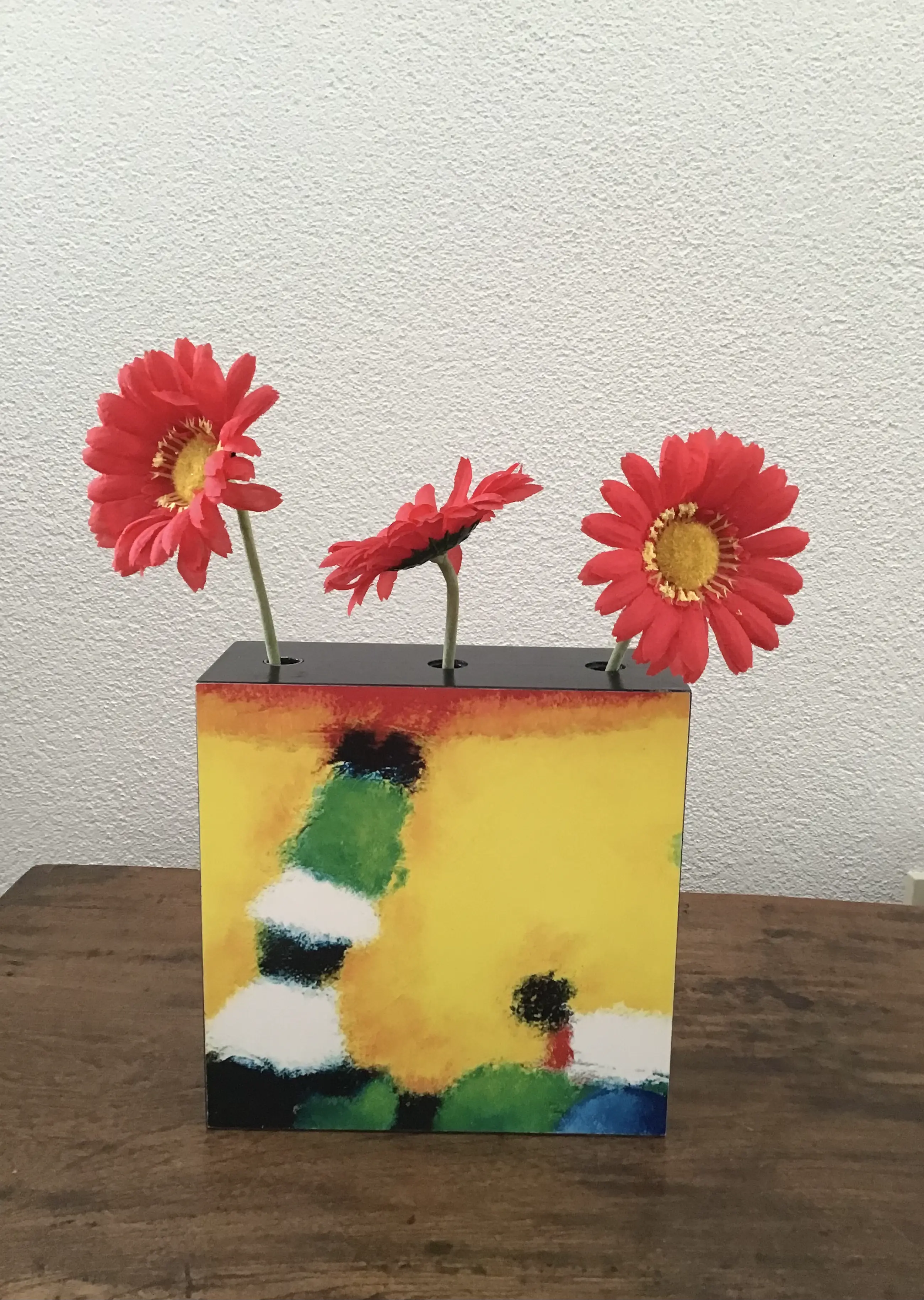 Bijzonder object van Saskia Bremer Kunstwerk vaas Materiaal hout Aan beide zijden beschilderd In de vaas zitten drie losse solifleur buisjes Kan zowel zonder als mét bloemen Wordt aangetekend verzonden