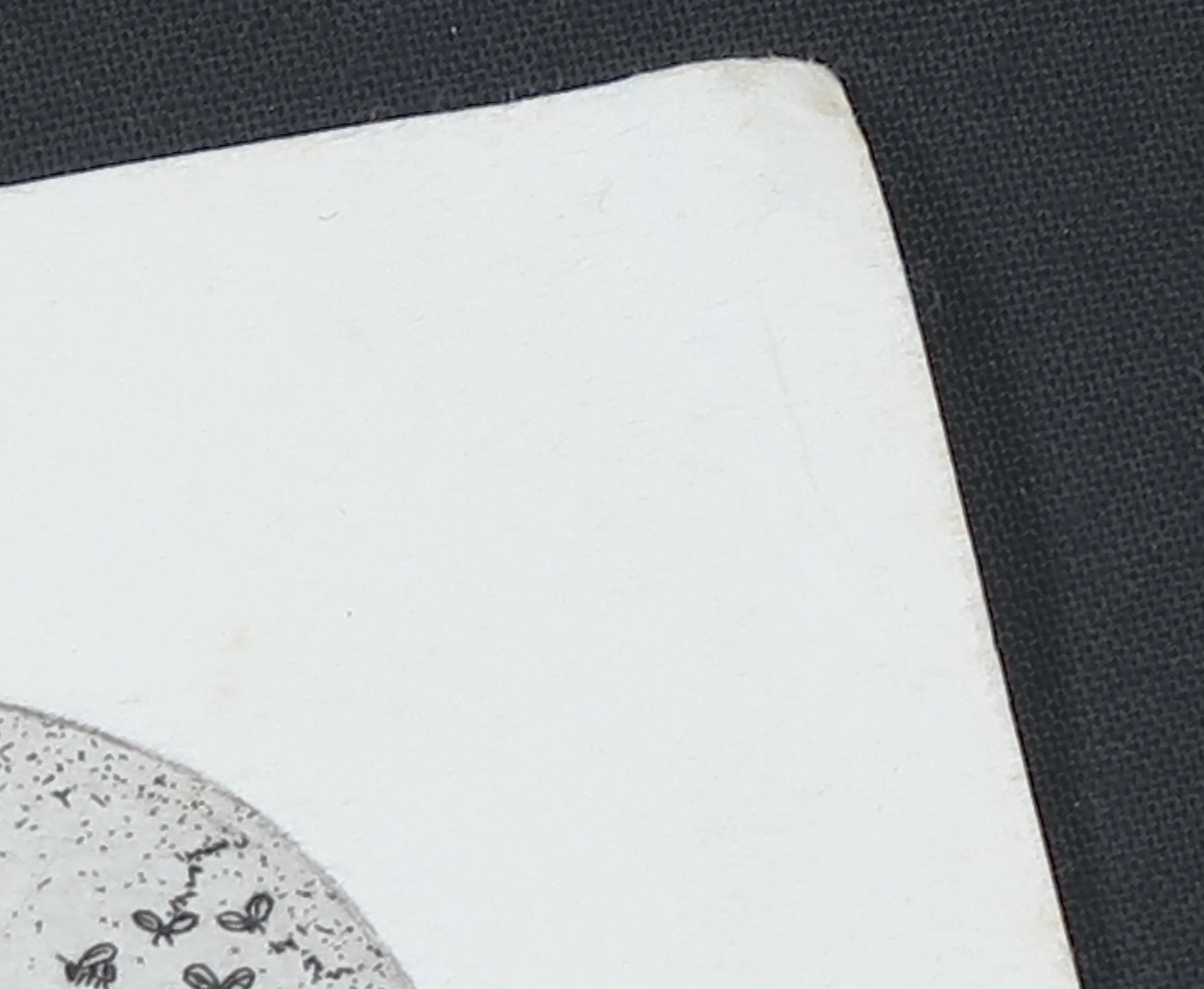 Kleine vouwlijn zichtbaar in de rechterbovenhoek.