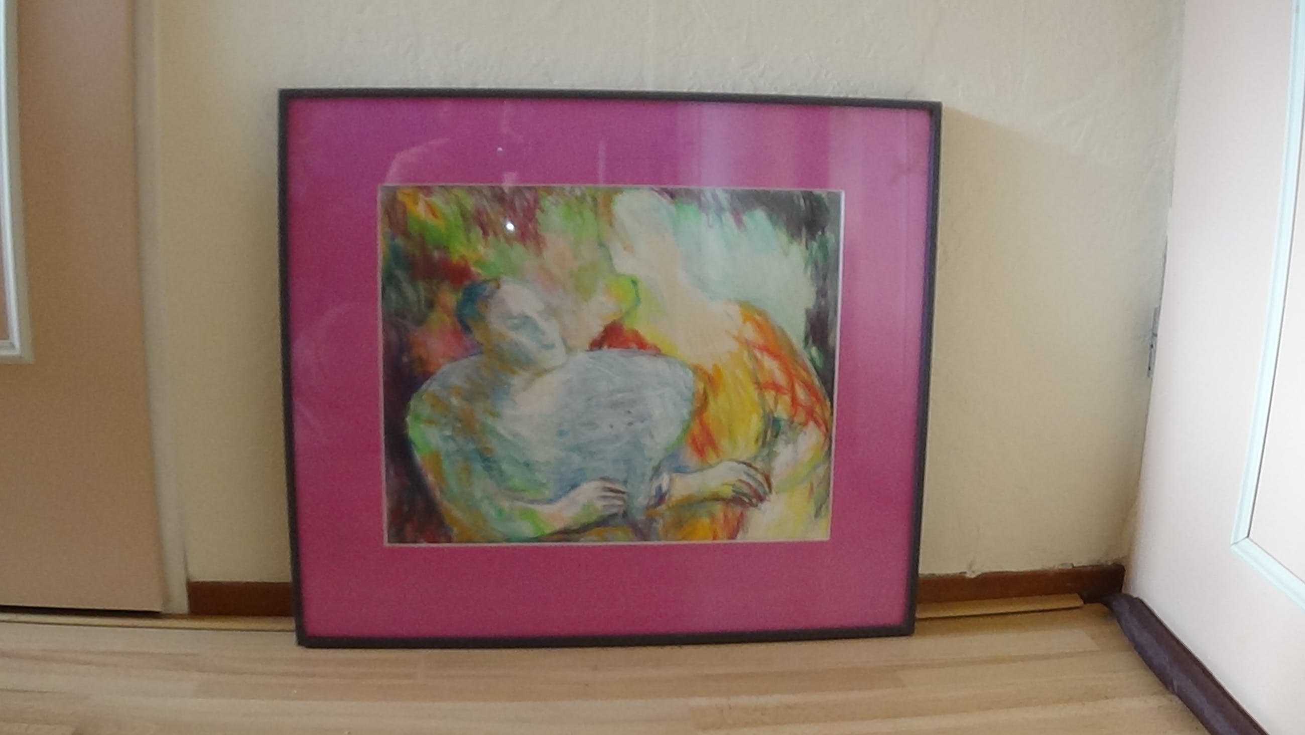 Saskia Pfaeltzer heeft eind jaren zeventig begin jaren tachtig een expositie gegeven in het hoofdkantoor van destijds de NMB de huidige ING bank. Als dank heeft zij dit werk beschikbaar gesteld en is zo in het bezit van mijn vader gekomen