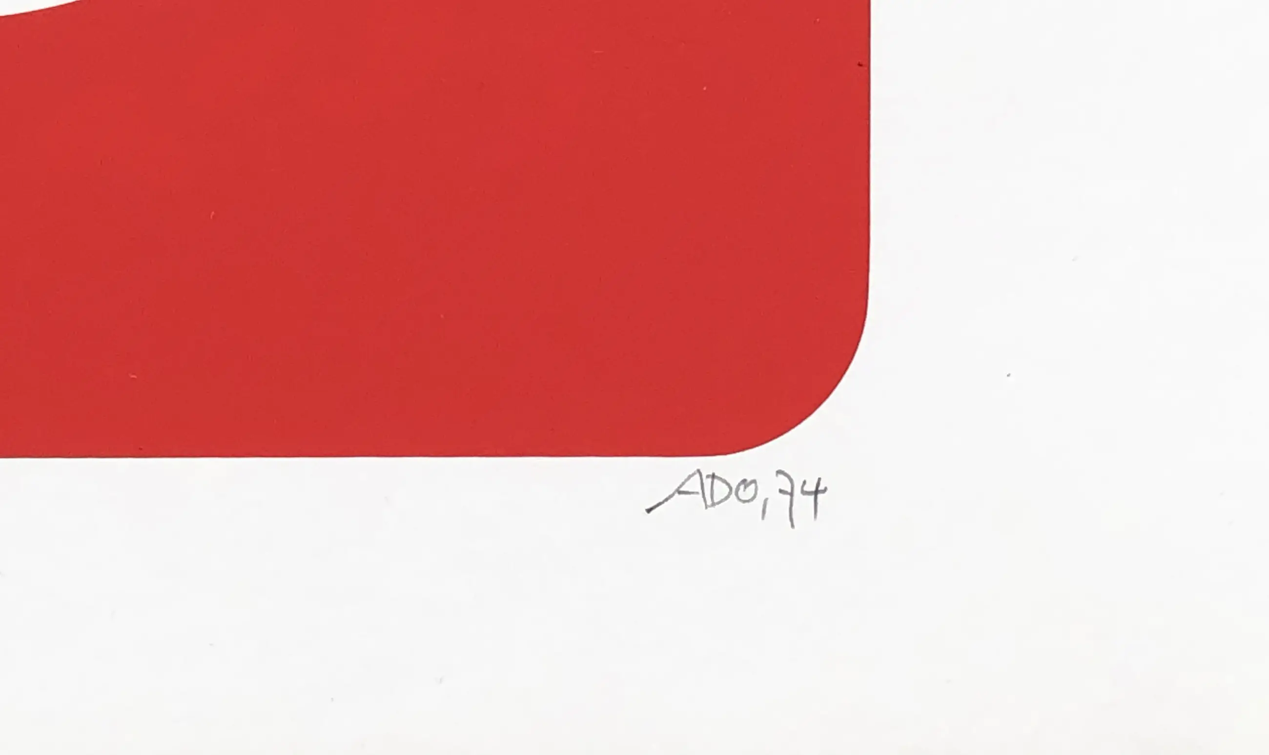 De aangeboden prent is genummerd: 310/500 en gesigneerd en gedateerd door de kunstenaar: ADO 74