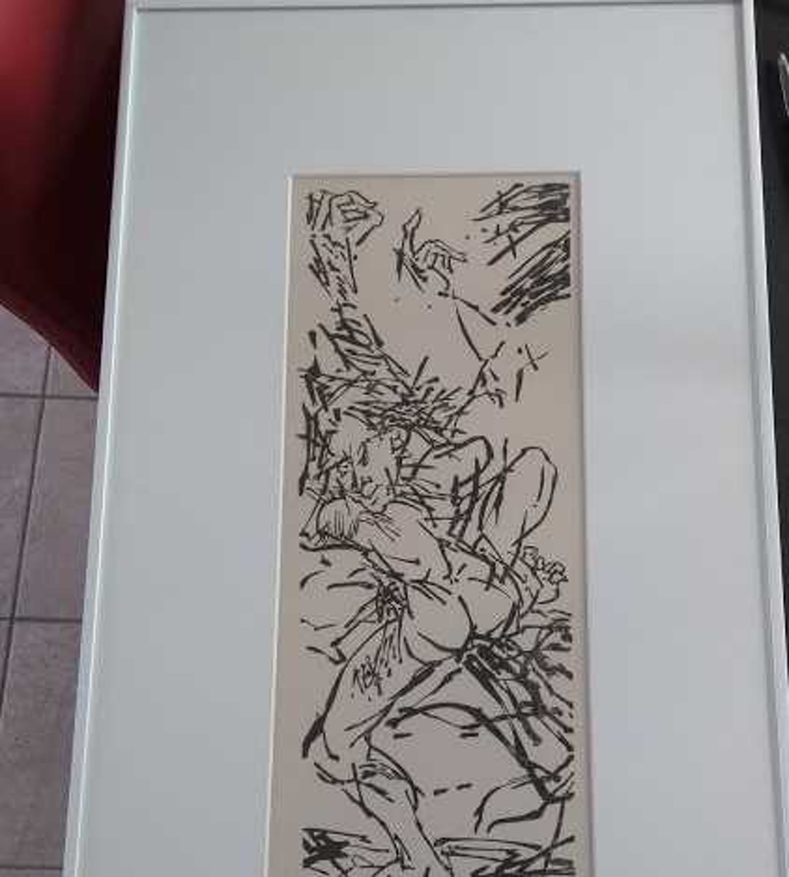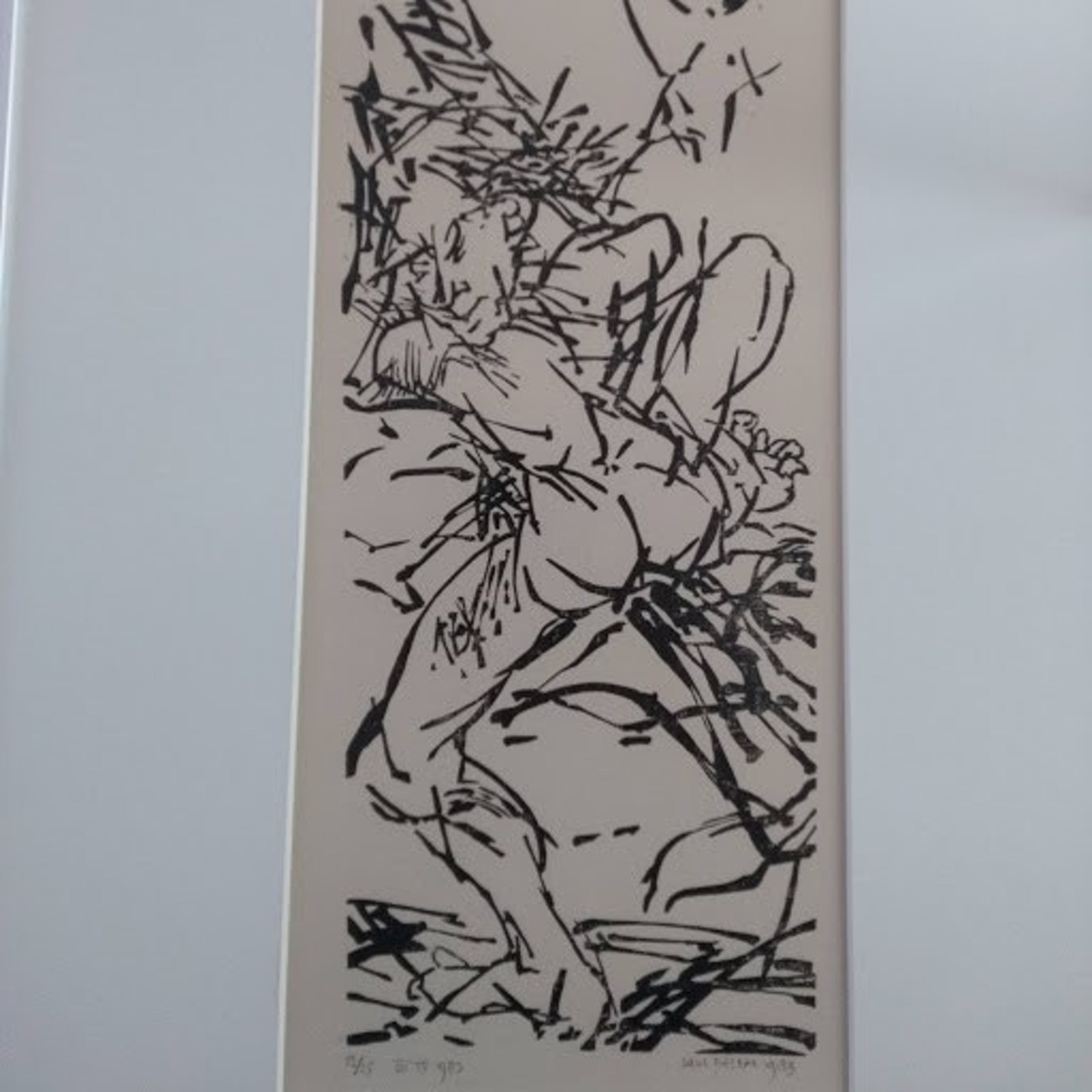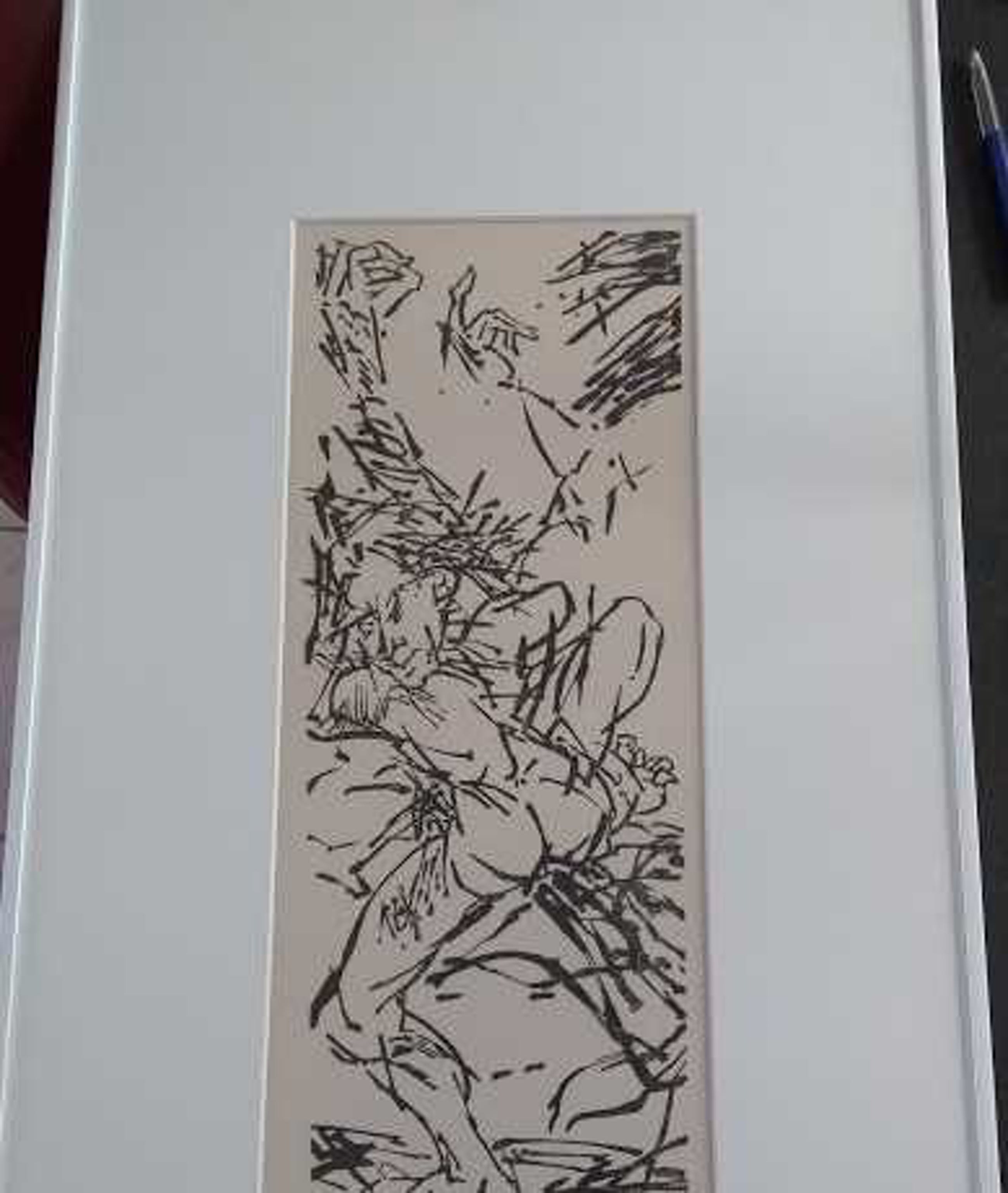 naakte man klimt omhooghet is een met houtskool of inkt geschetste ets