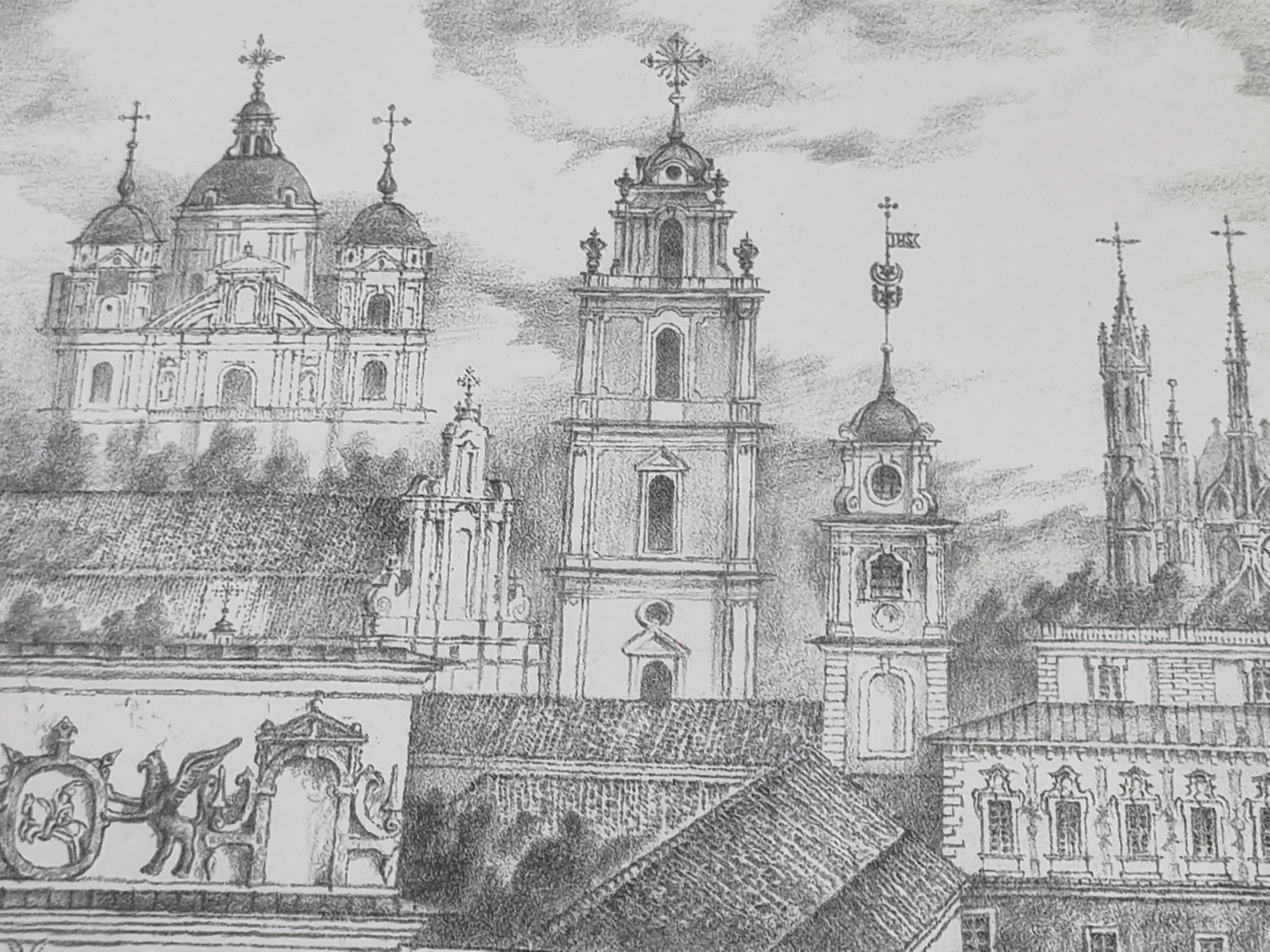 Saulius Ikamas werd geboren in 1936 in Biržai. Van 1956 tot 1961 studeerde hij architectuur aan het Staatsinstituut voor Kunst en van 1961 tot 1967 grafiek. Sinds 1968 neemt hij deel aan tentoonstellingen. In 1974 sloot hij zich aan bij de Litouwse Kunstenaarsbond. Hij maakt prenten en ex librissen. De lithografieën van S. Ikamas onderscheiden zich door hun meesterlijke uitvoering en de graficus brengt een breed scala aan genuanceerde rasters in zijn werk over. Met behulp van deze techniek creëerde de kunstenaar talloze afbeeldingen van de Universiteit van Vilnius en kerken.