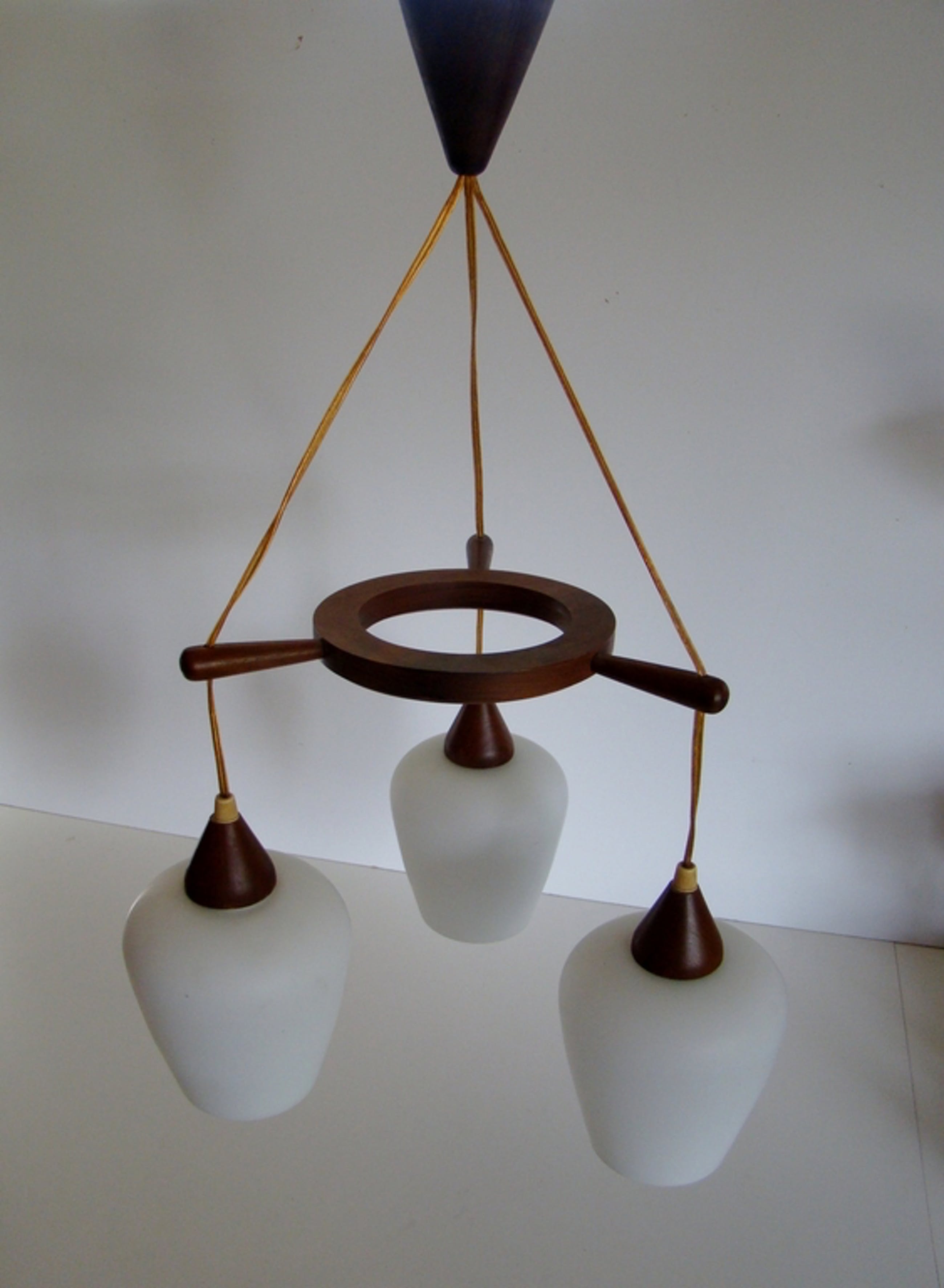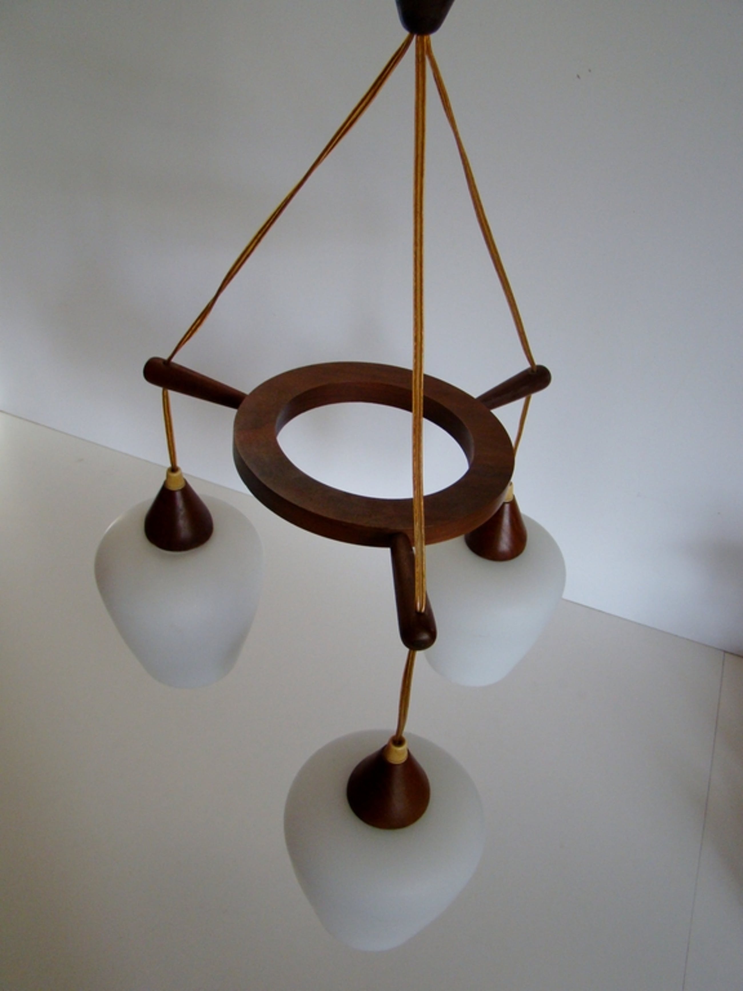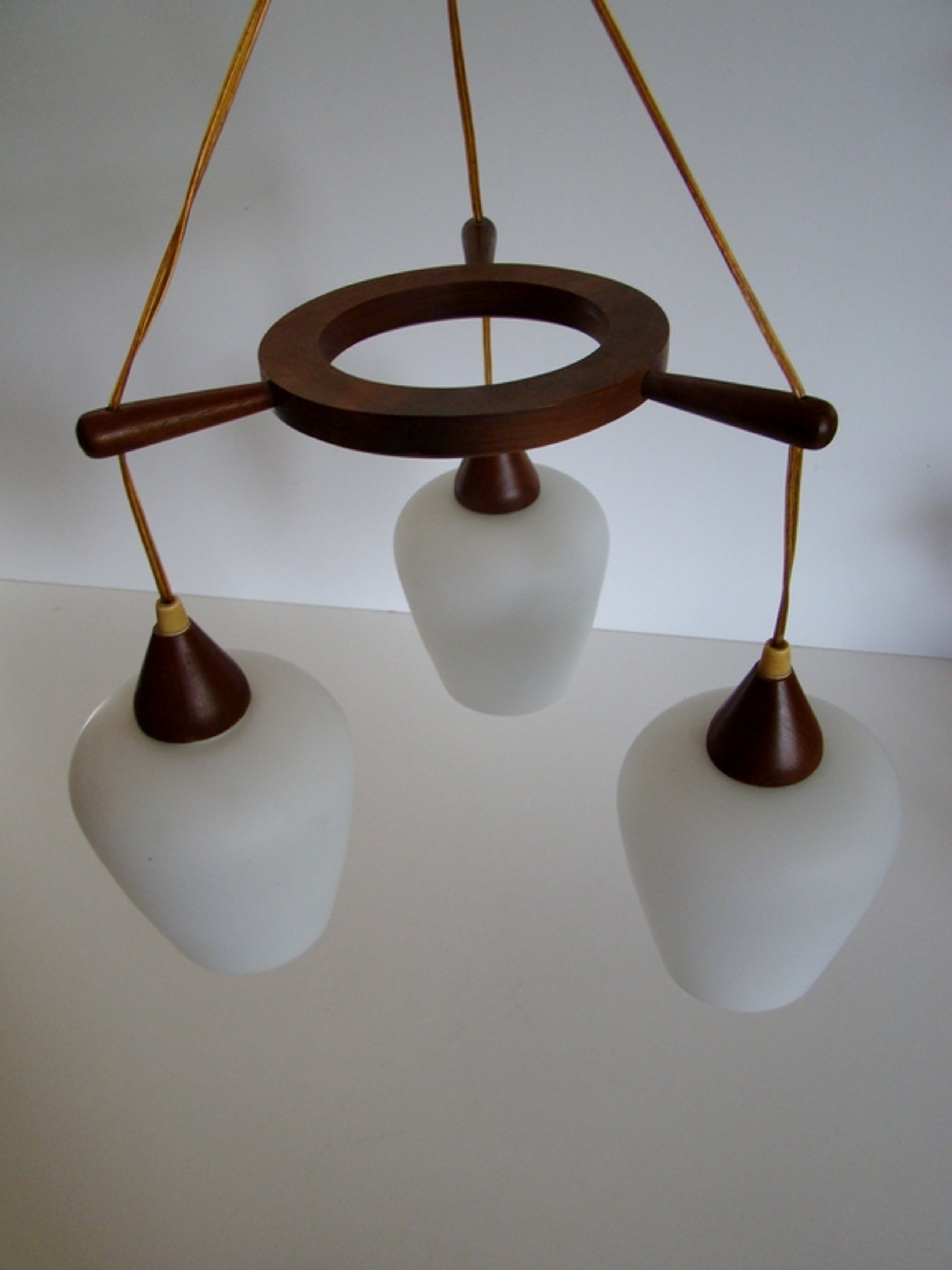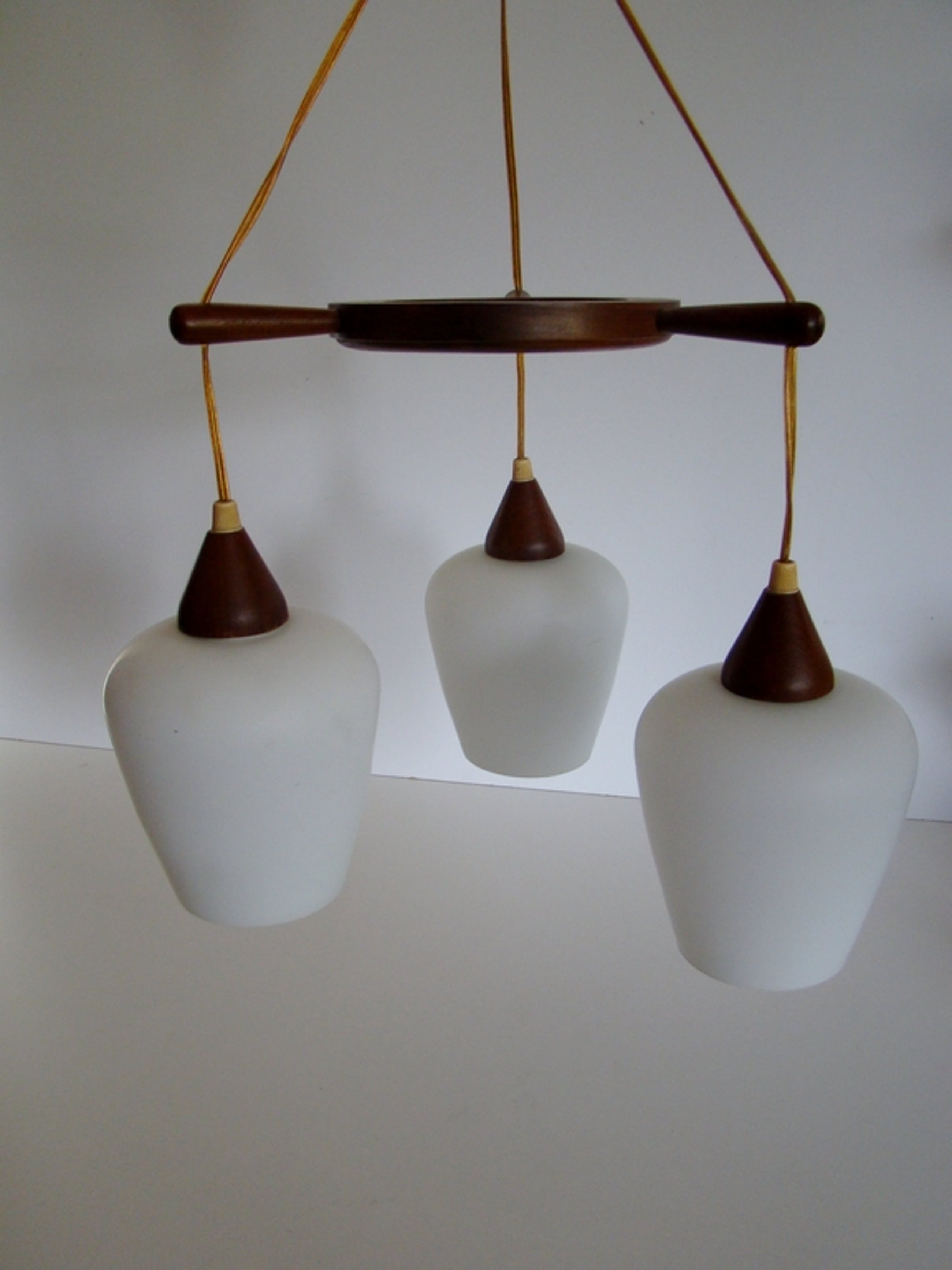 Vervaardigd van hout (armatuur) en glas (kapjes)