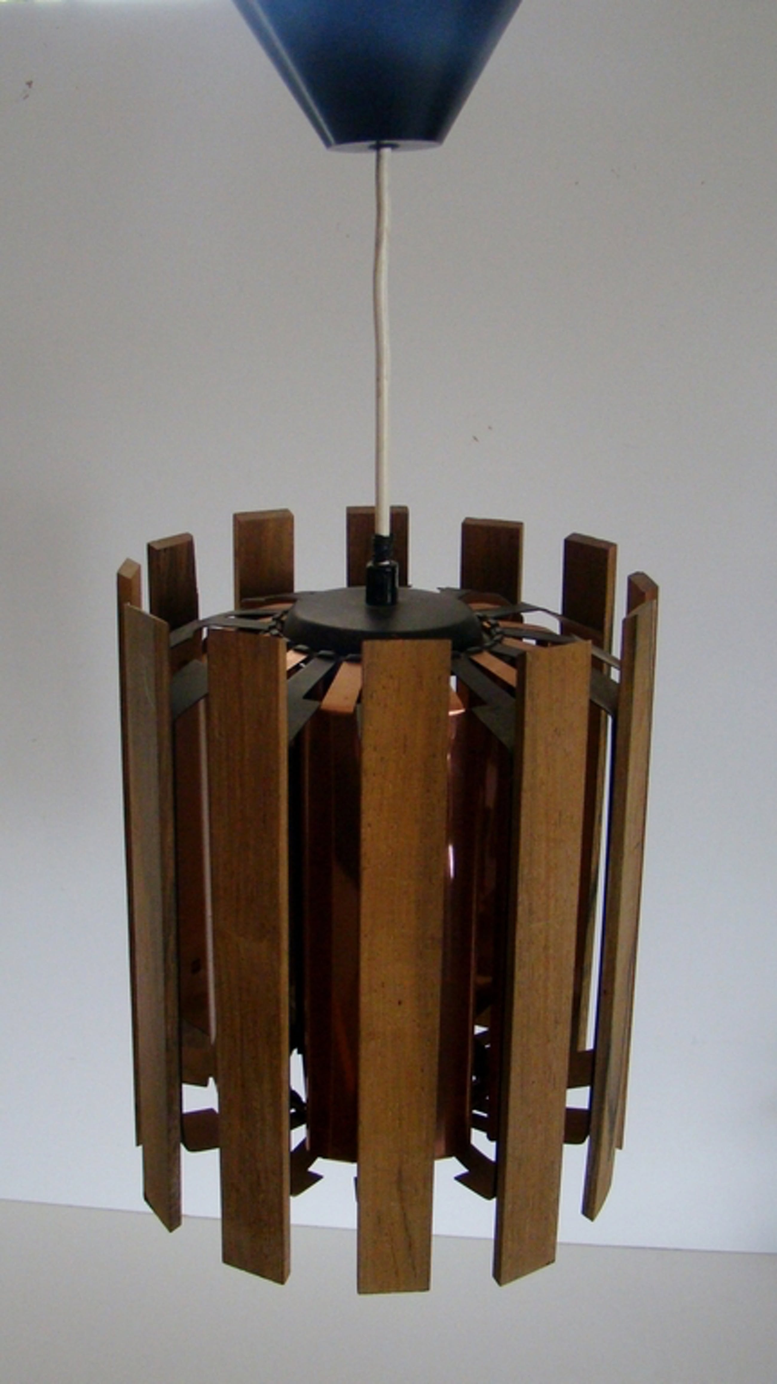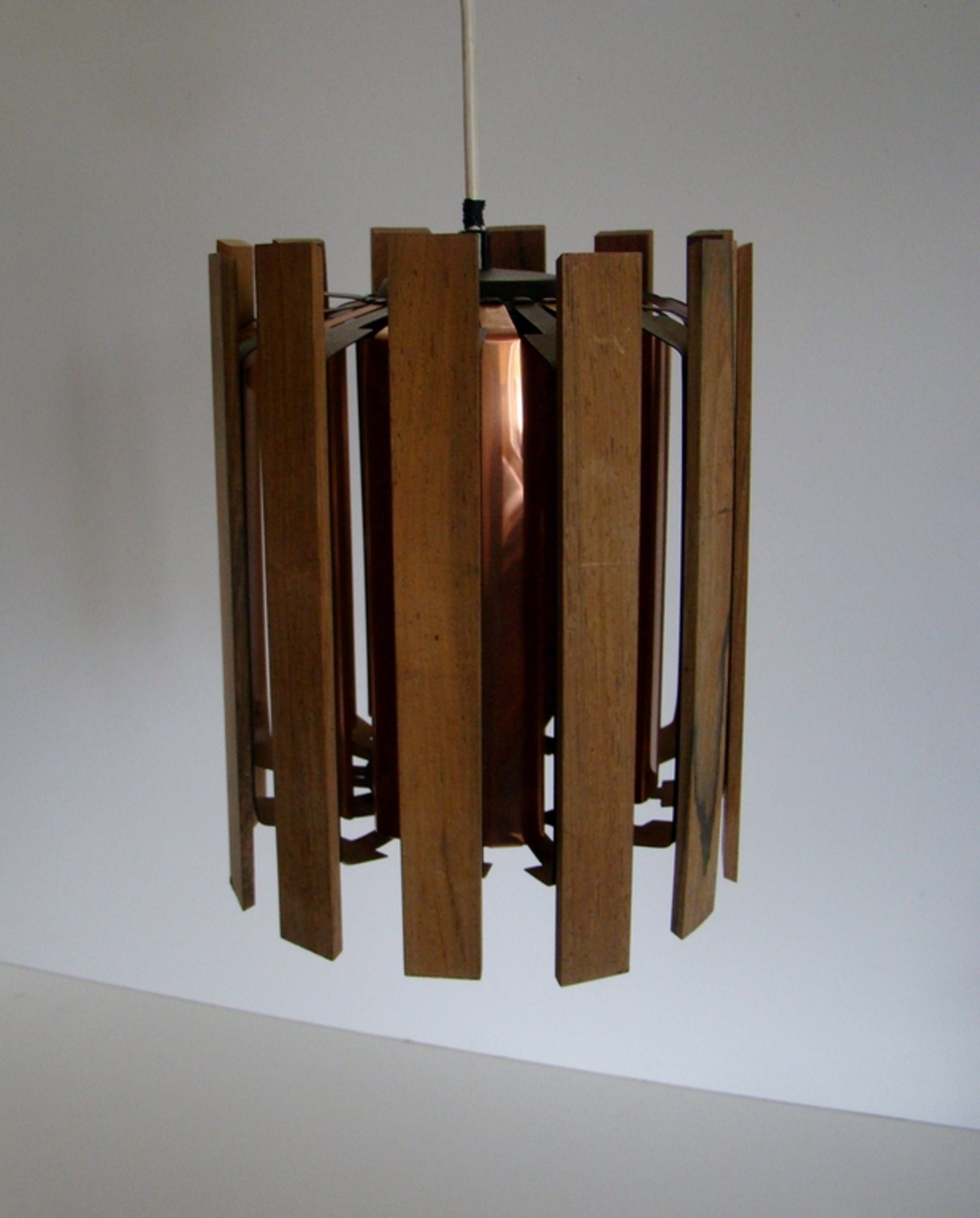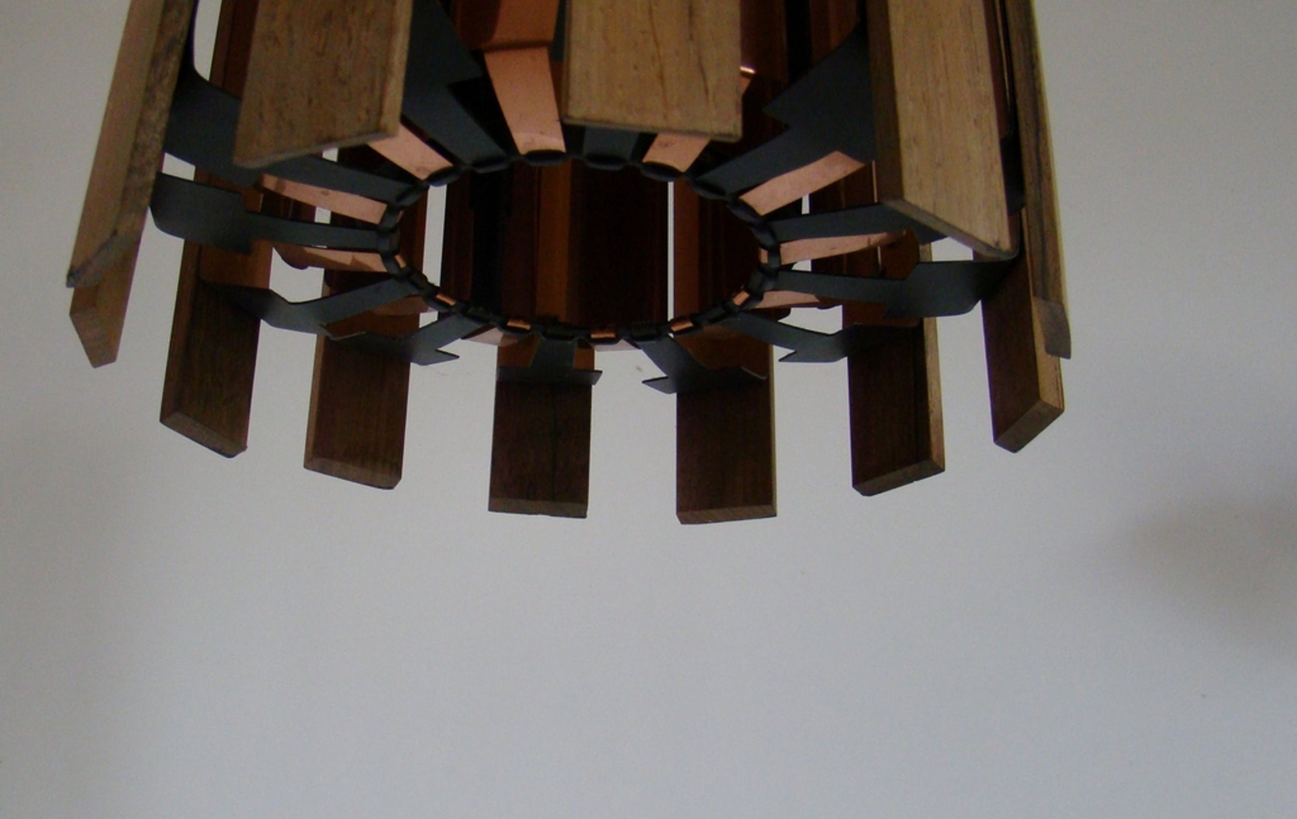 Zijn langwerpige strookjes hout bevestigt op een koperen/zwart gecoat metalen armatuur.