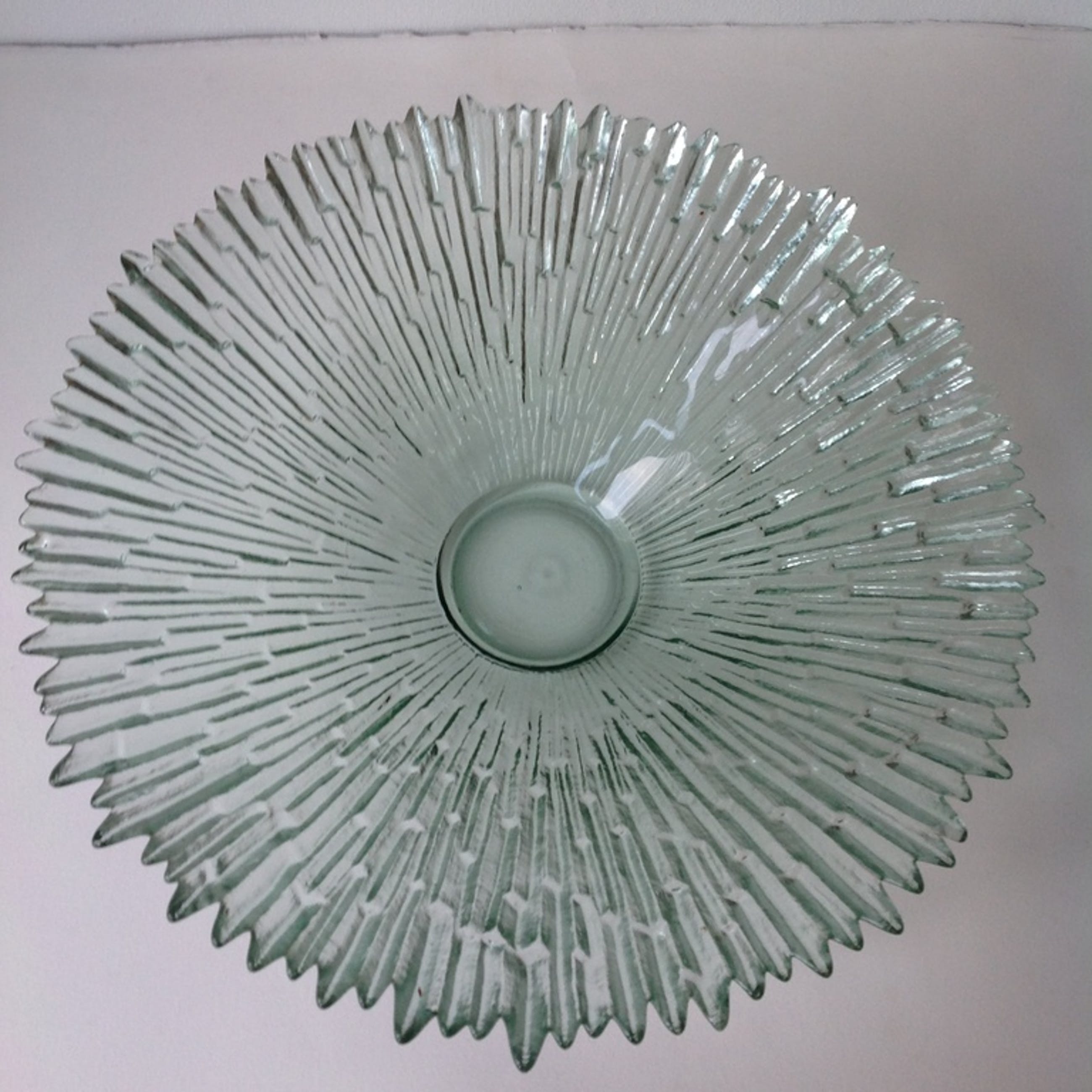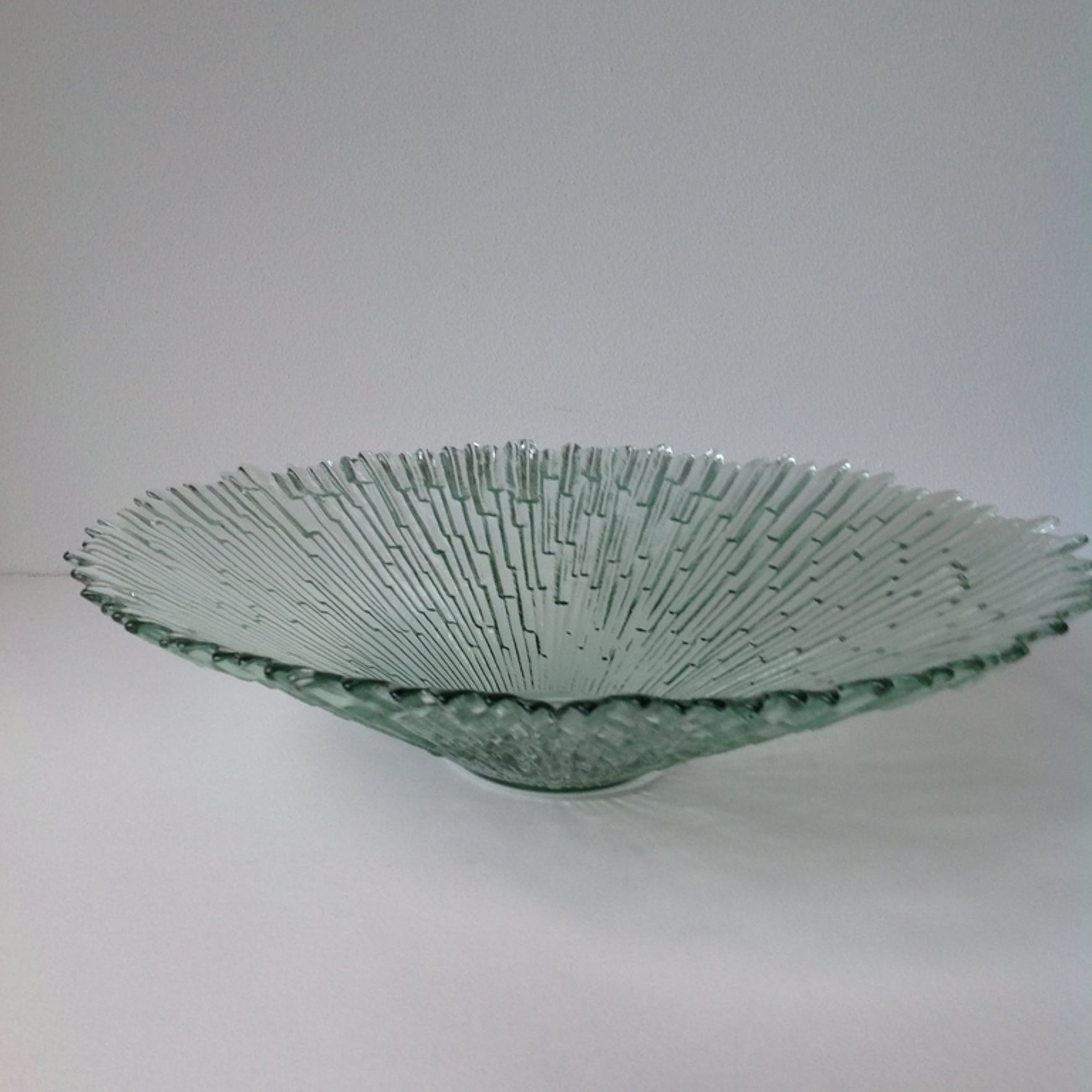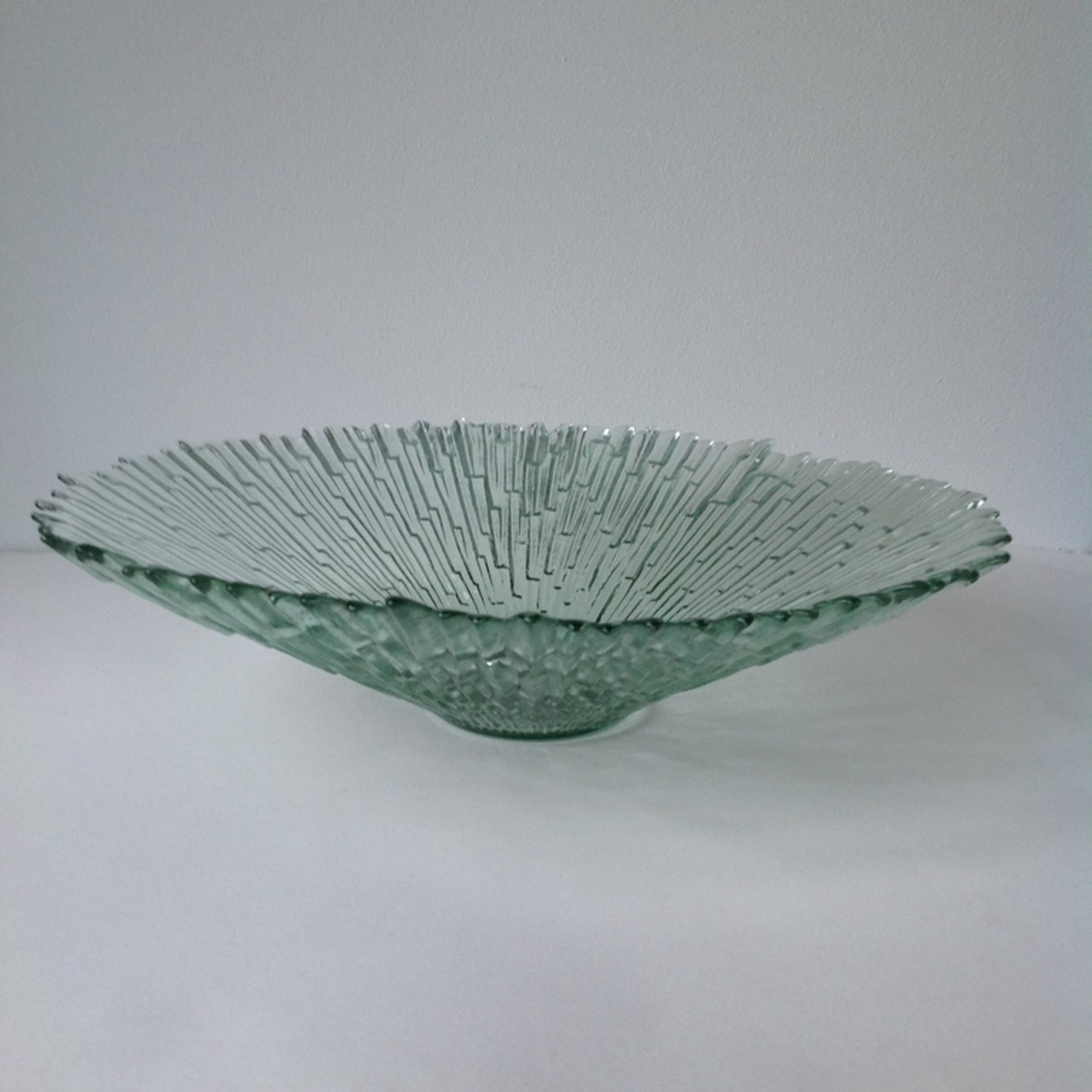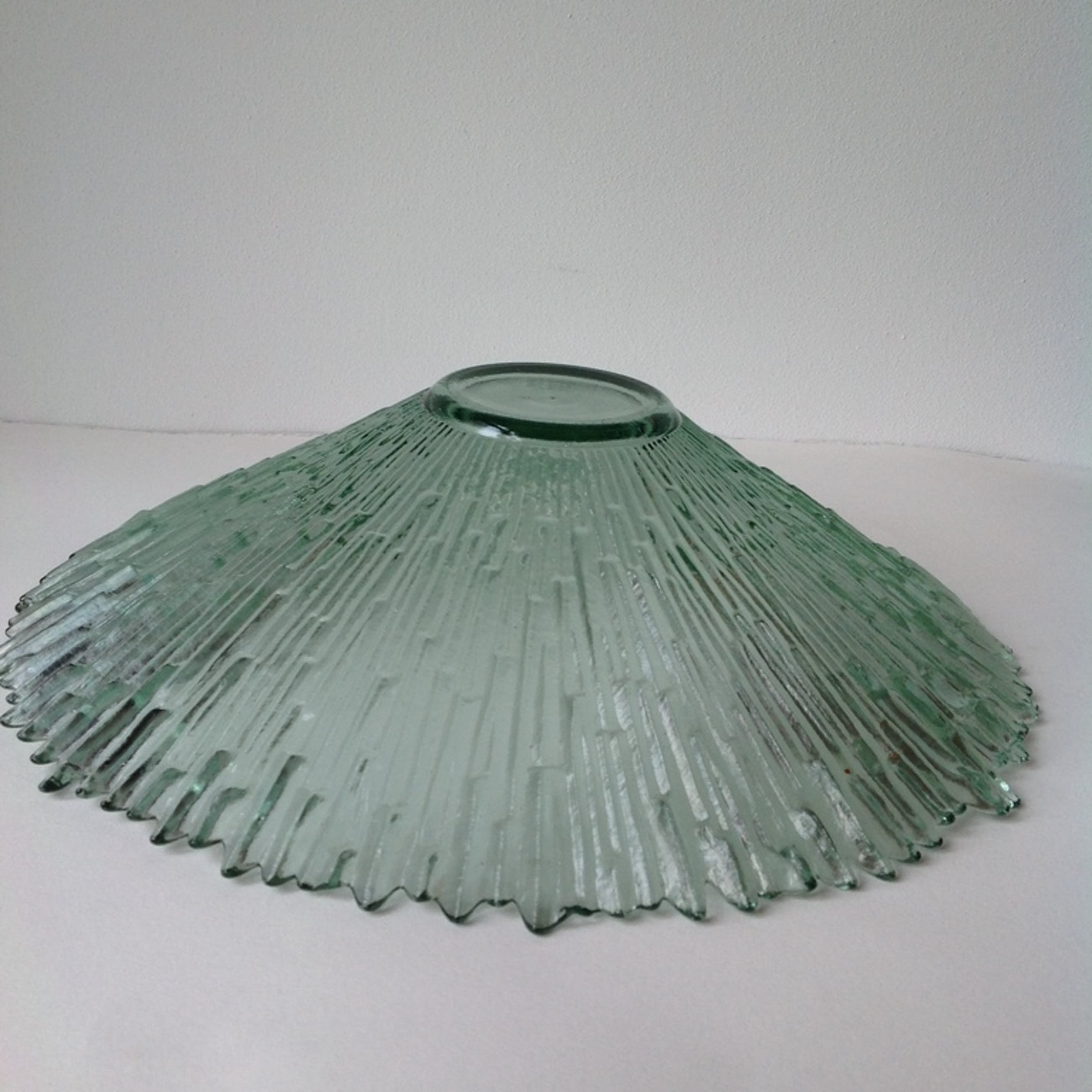 Ontwerp Tauno Wirkkala voor Humppila Glassworks uit Finland. Diameter 38 cm. Hoogte 9,5 cm.