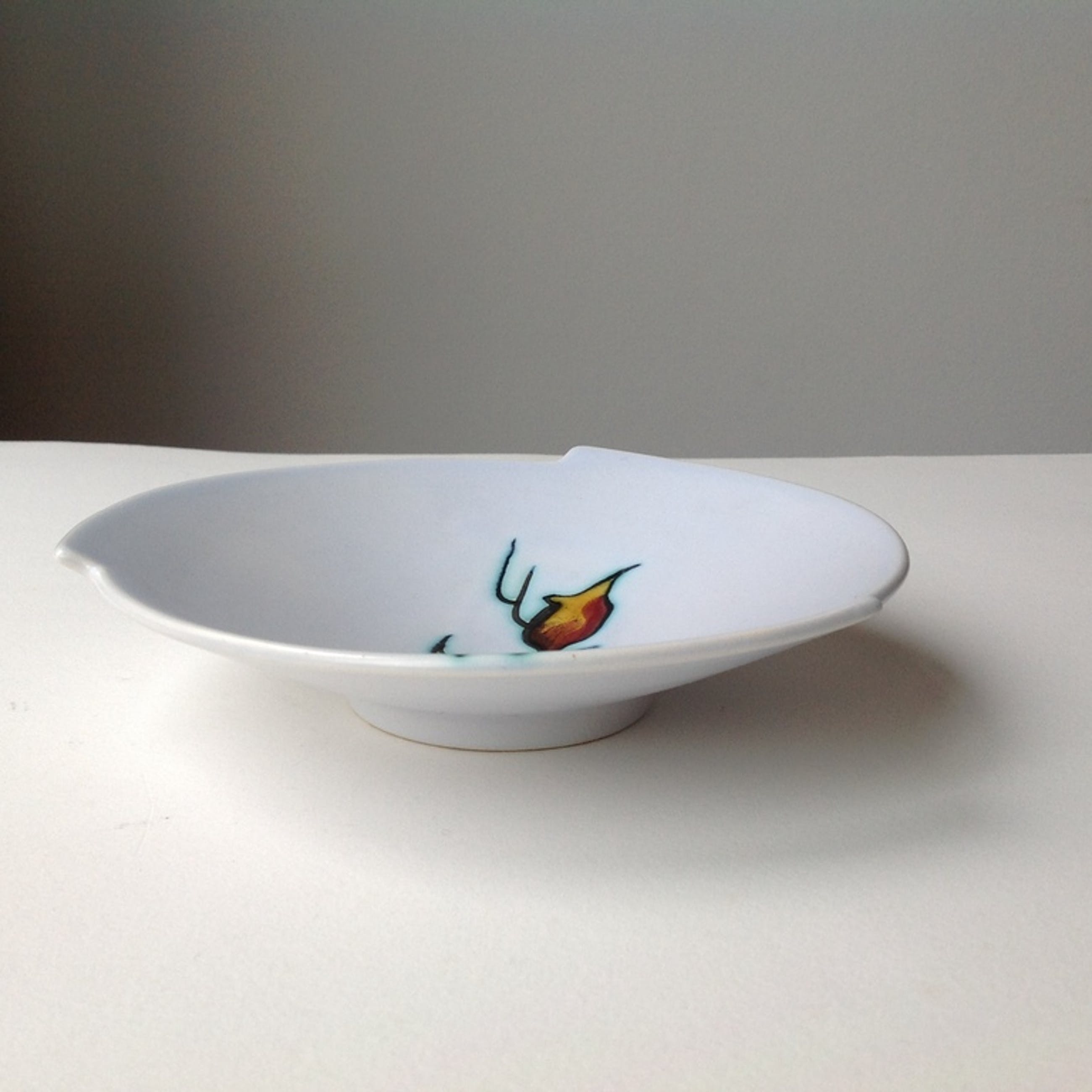 Schaaltje is in goede conditie, geen beschadigingen. In de blaadjes van de decoratie zitten minimale sporen van craquelé.