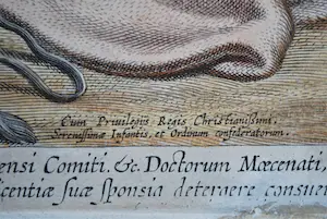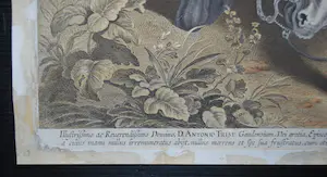 De ets/gravure dateert van (na) 1615. Foto van het watermerk aanwezig. Bladmaat: 47x63 cm, plaatrand ca. 45x60.5 cm. Het geheel incl. lijst en glas weegt 4 kg.