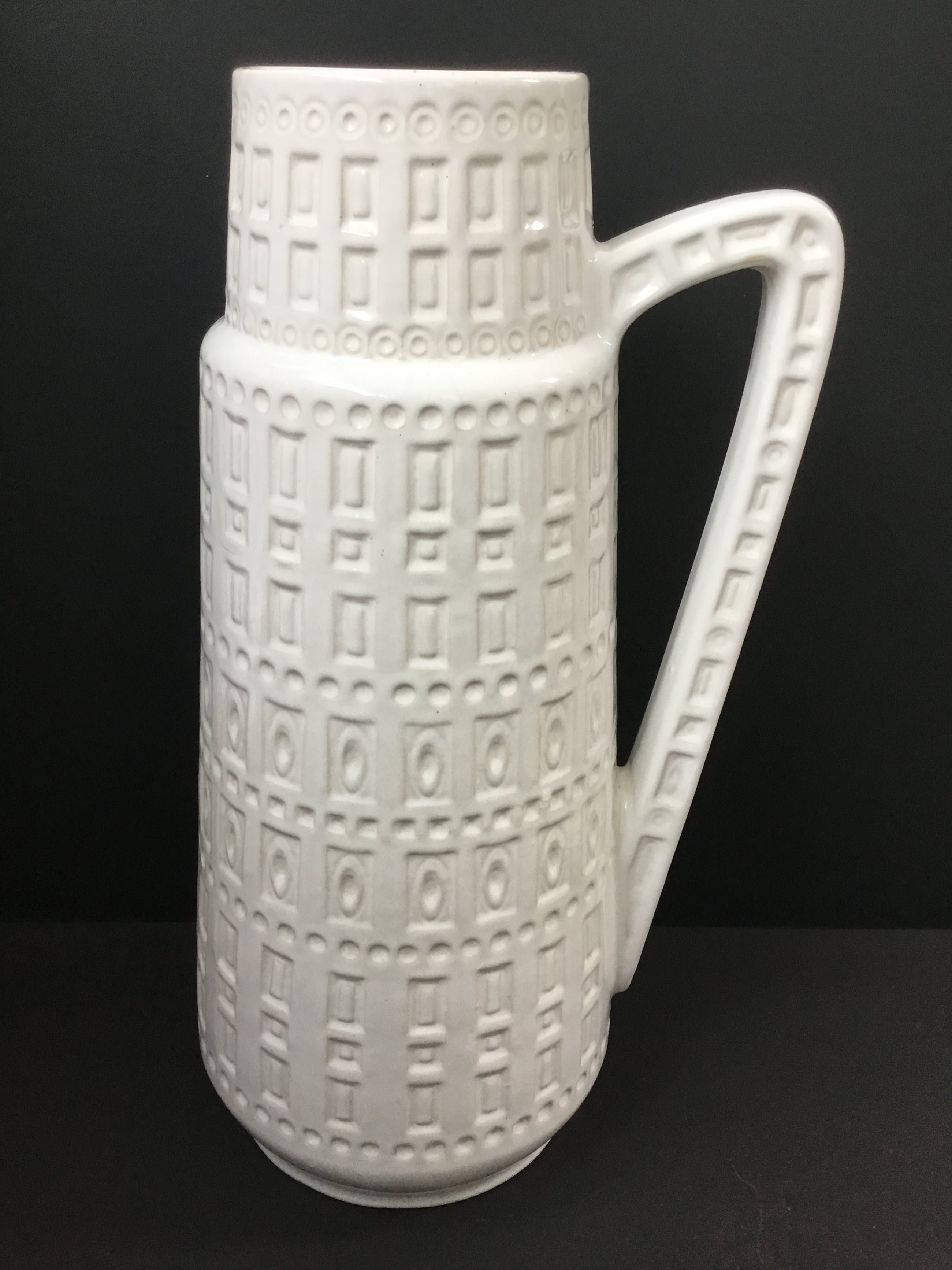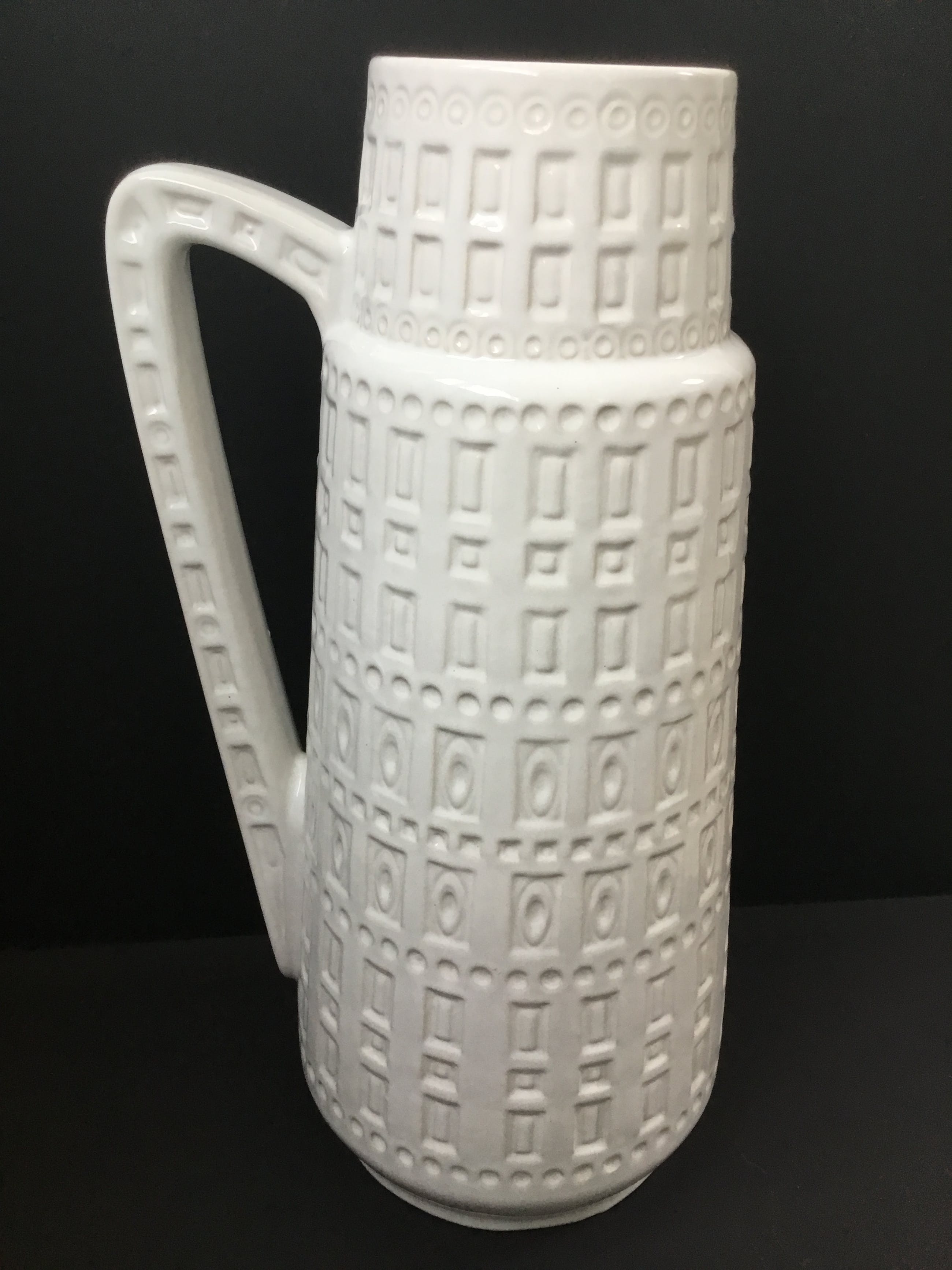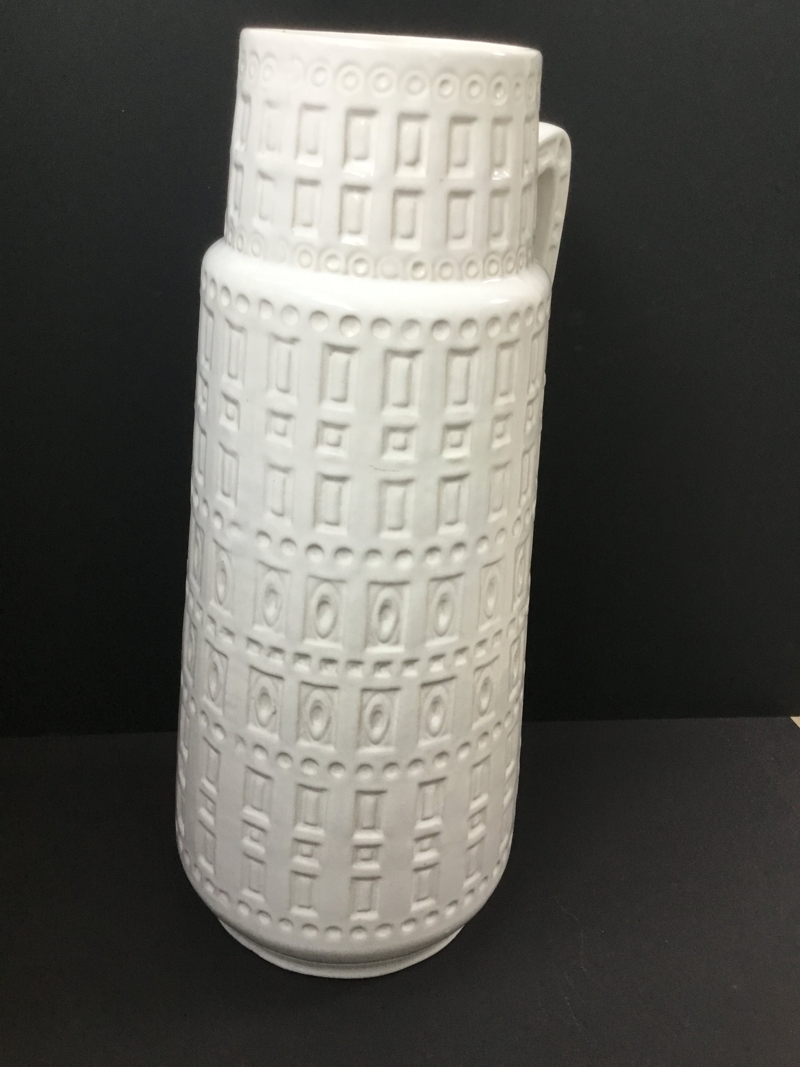Mooie grote vaas van Scheurich Keramiek. De hoogte van de vaas is 45 cm, de bodem heeft een diameter van 19 cm, de opening heeft een diameter van 11 cm. De vaas is genummerd 410-45
