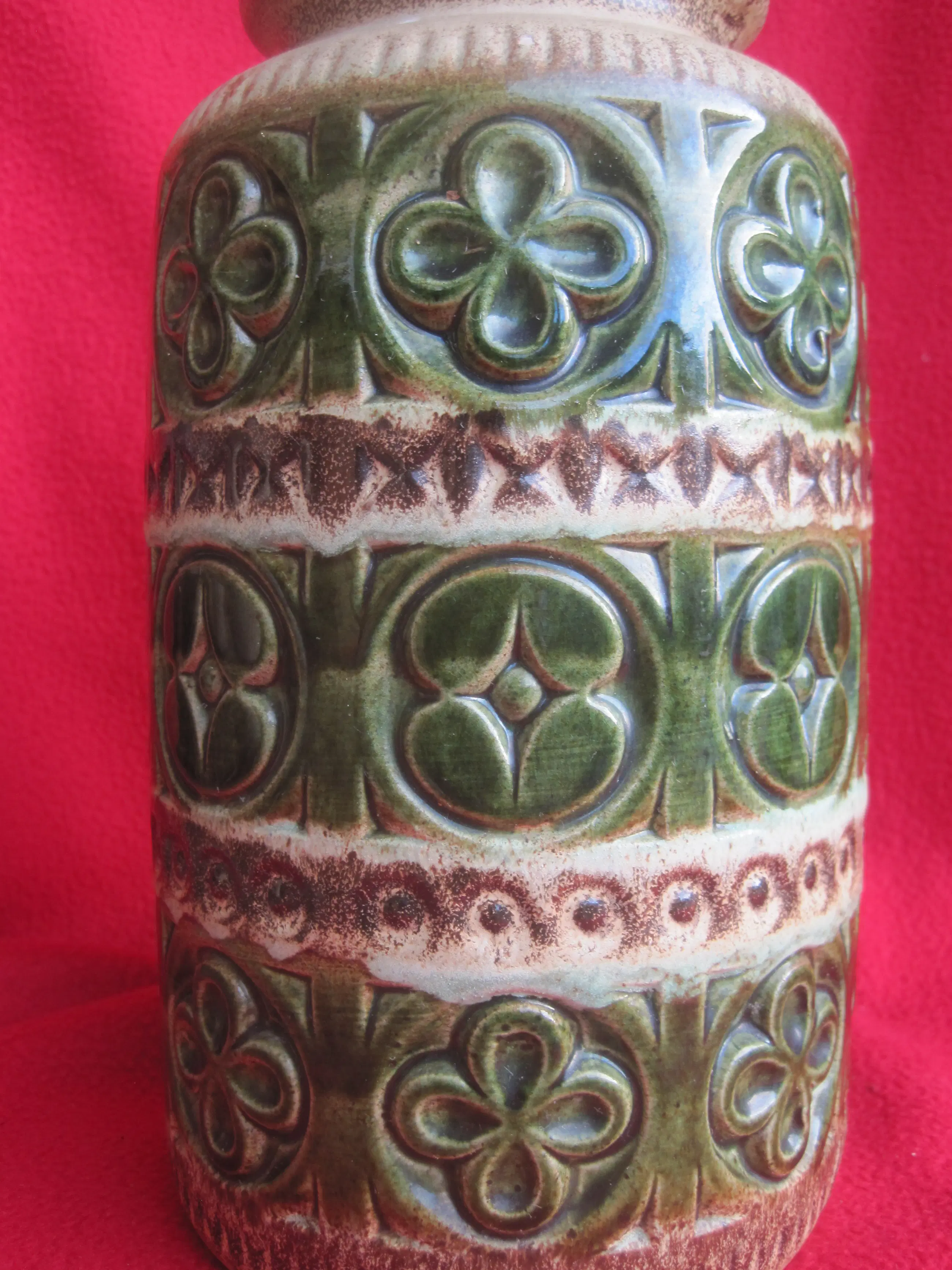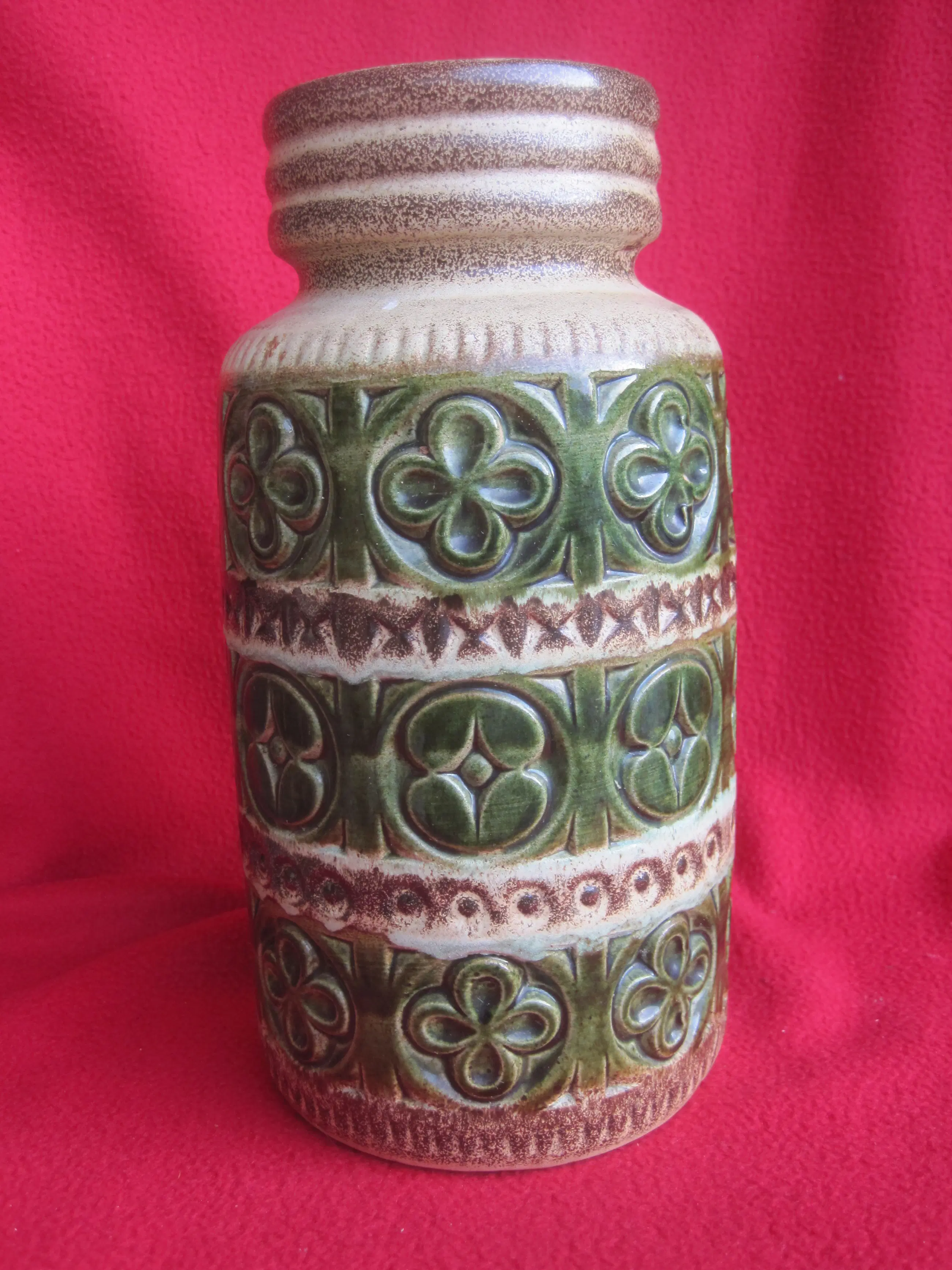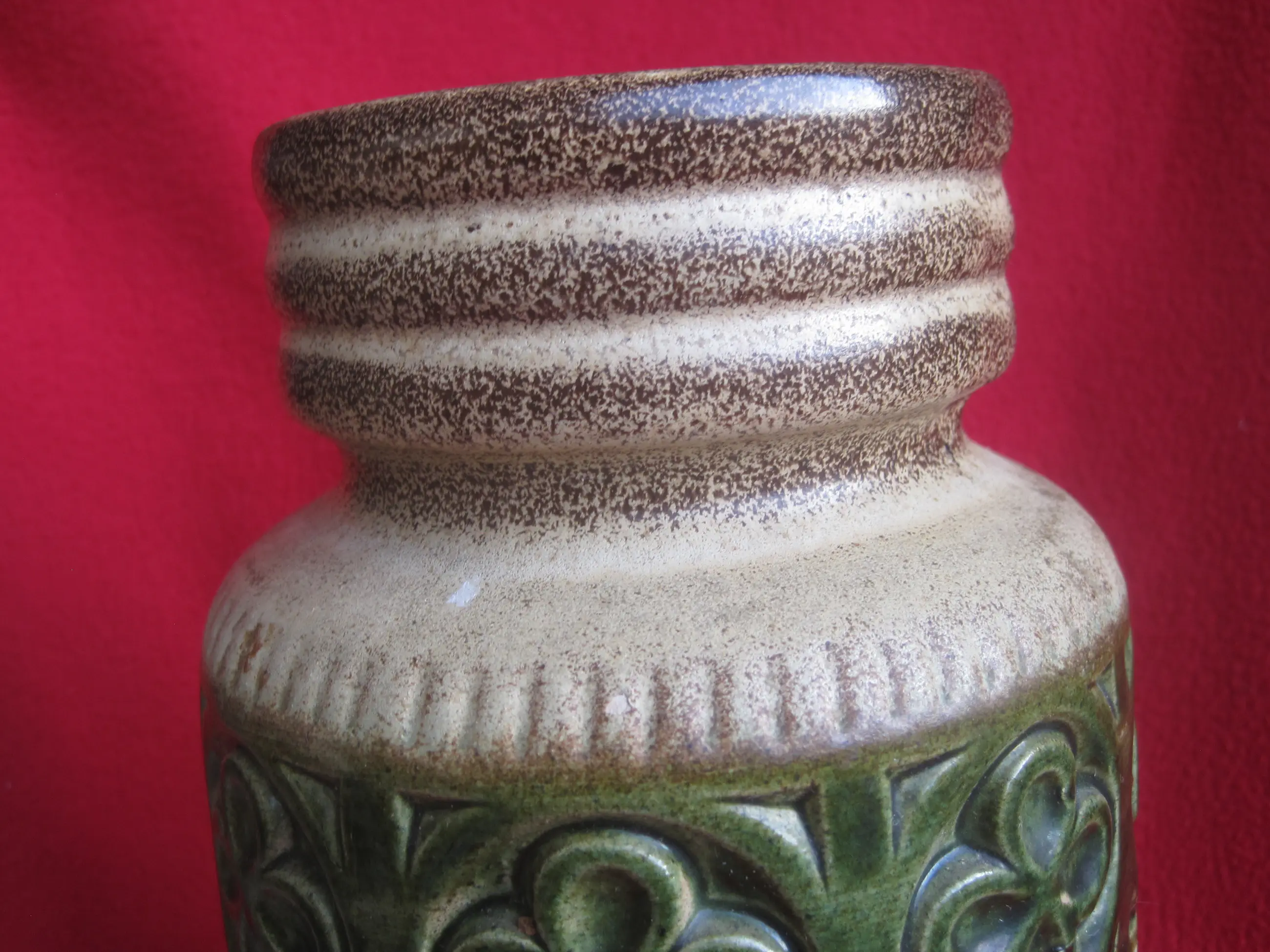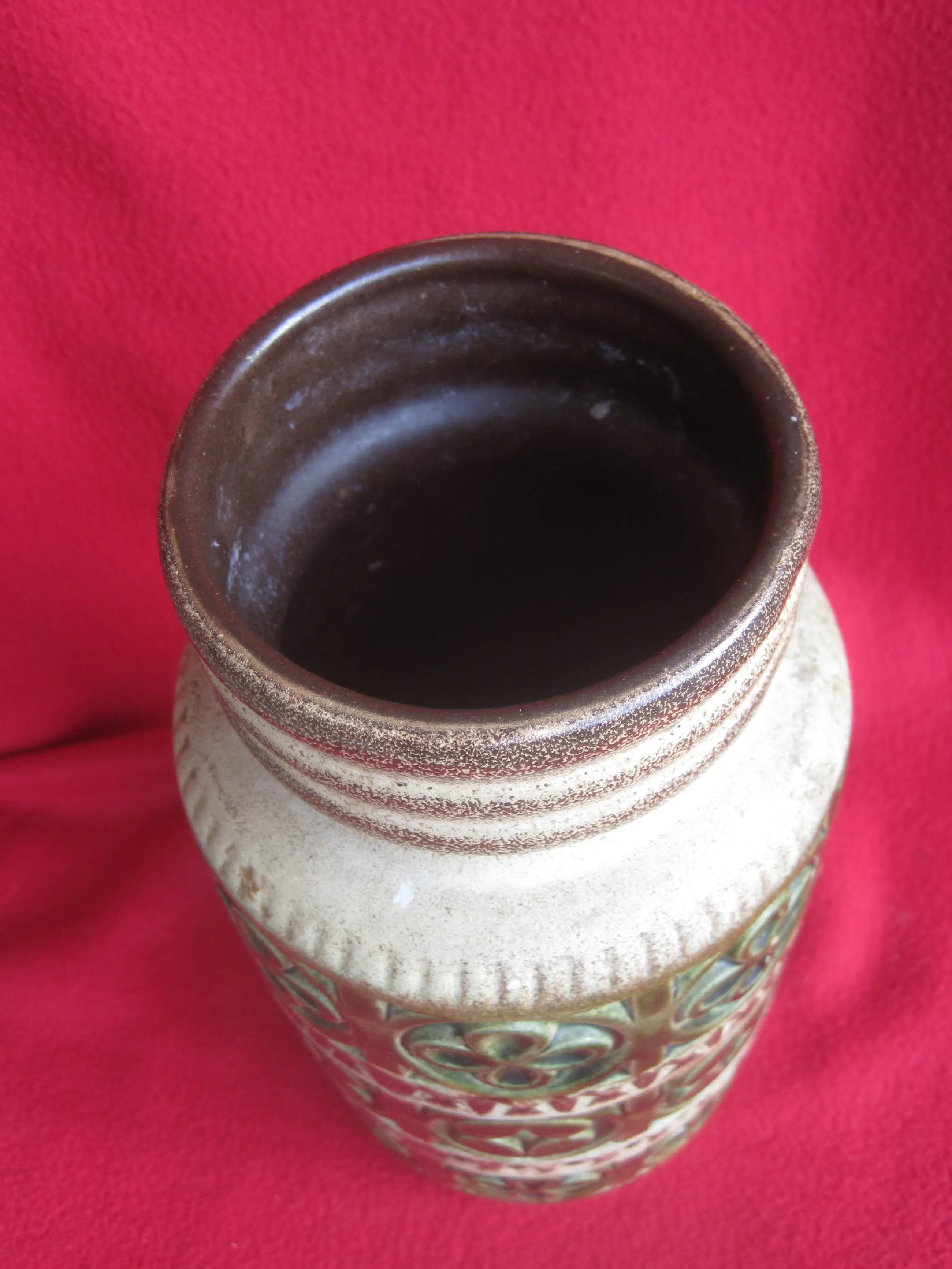 Scheurich Keramik West-Duitse geglazuurde keramische vaas uit de jaren 60. Genummerd op de voet: W. Germany 289-27. Kleuren olijfgroen/bruin, oker en wit glazuur. In uitstekende staat!