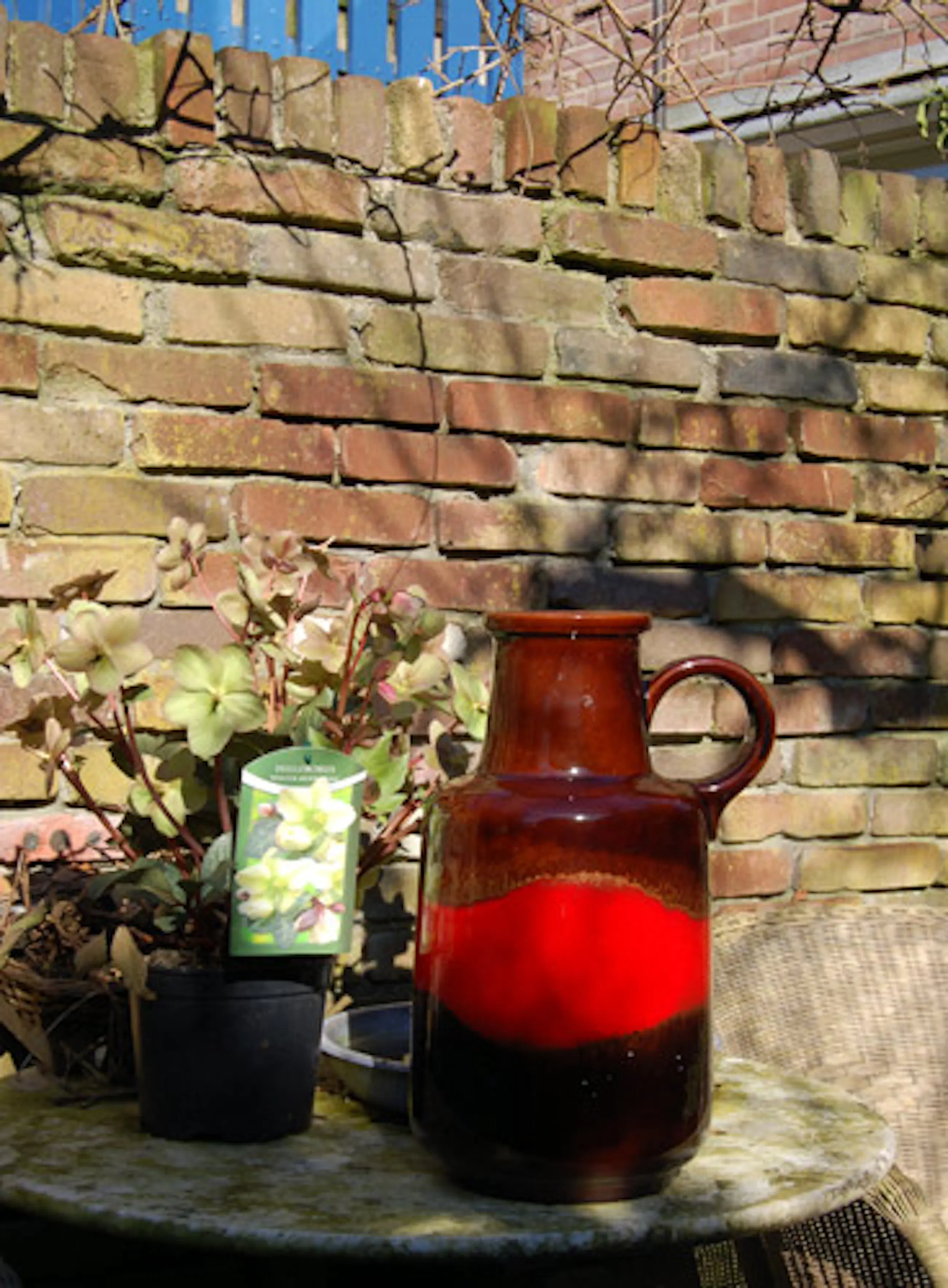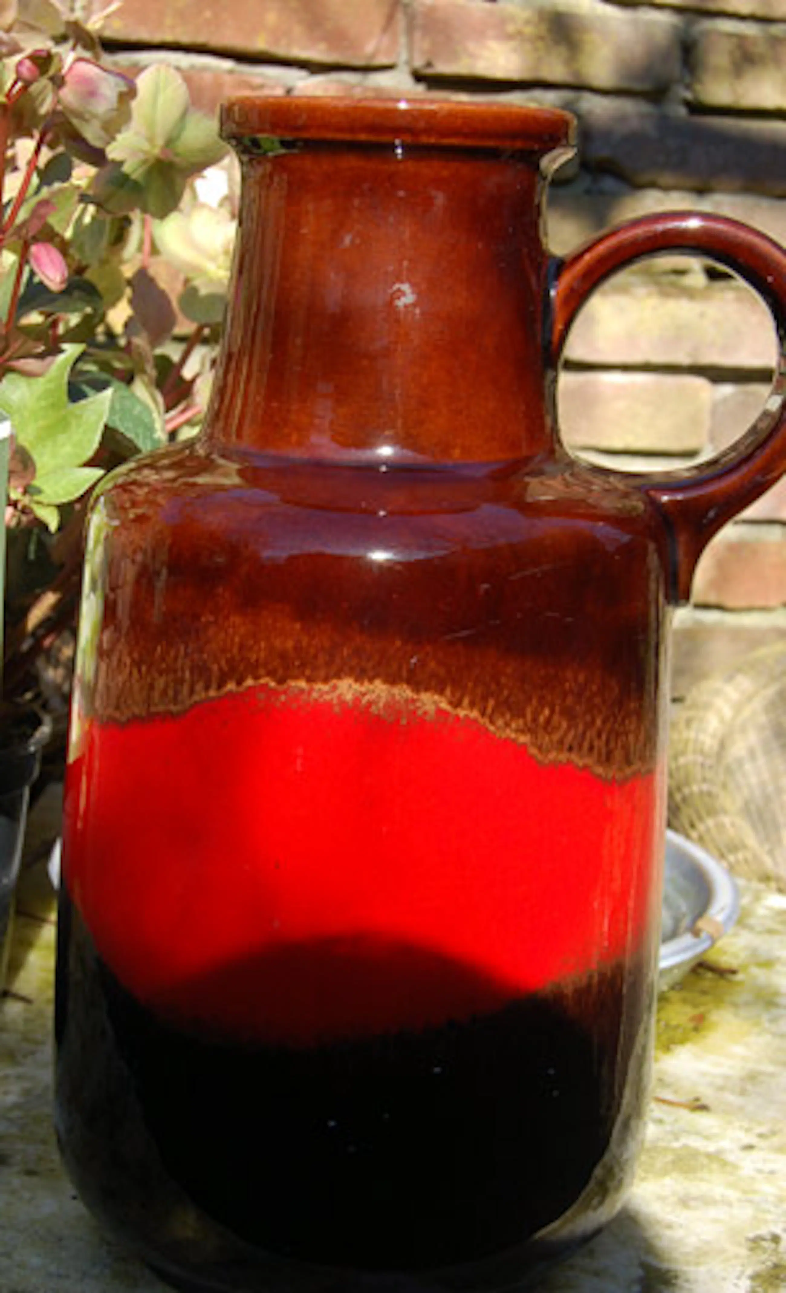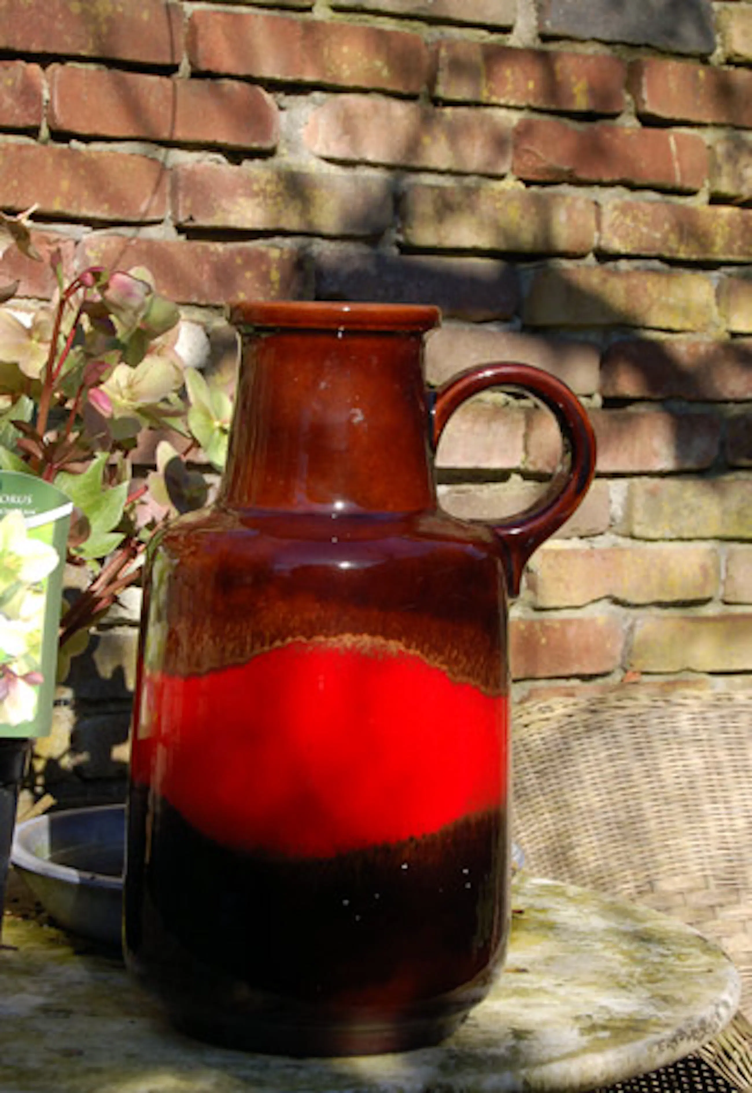 Hoogte: 40 cm. Breed: 25 ( geschat)Hoofdkleur: Bruin en rood Conditie: gaaf