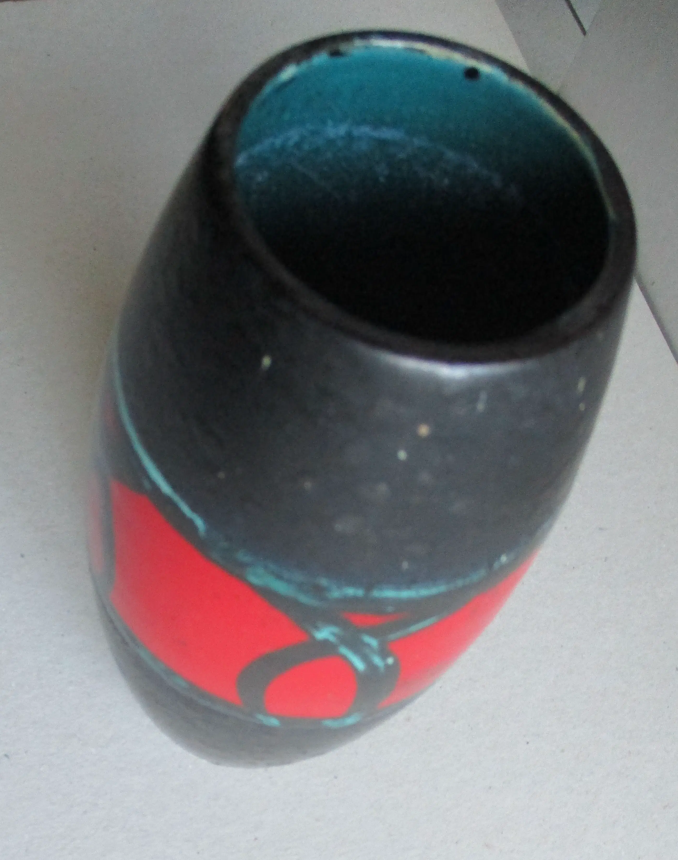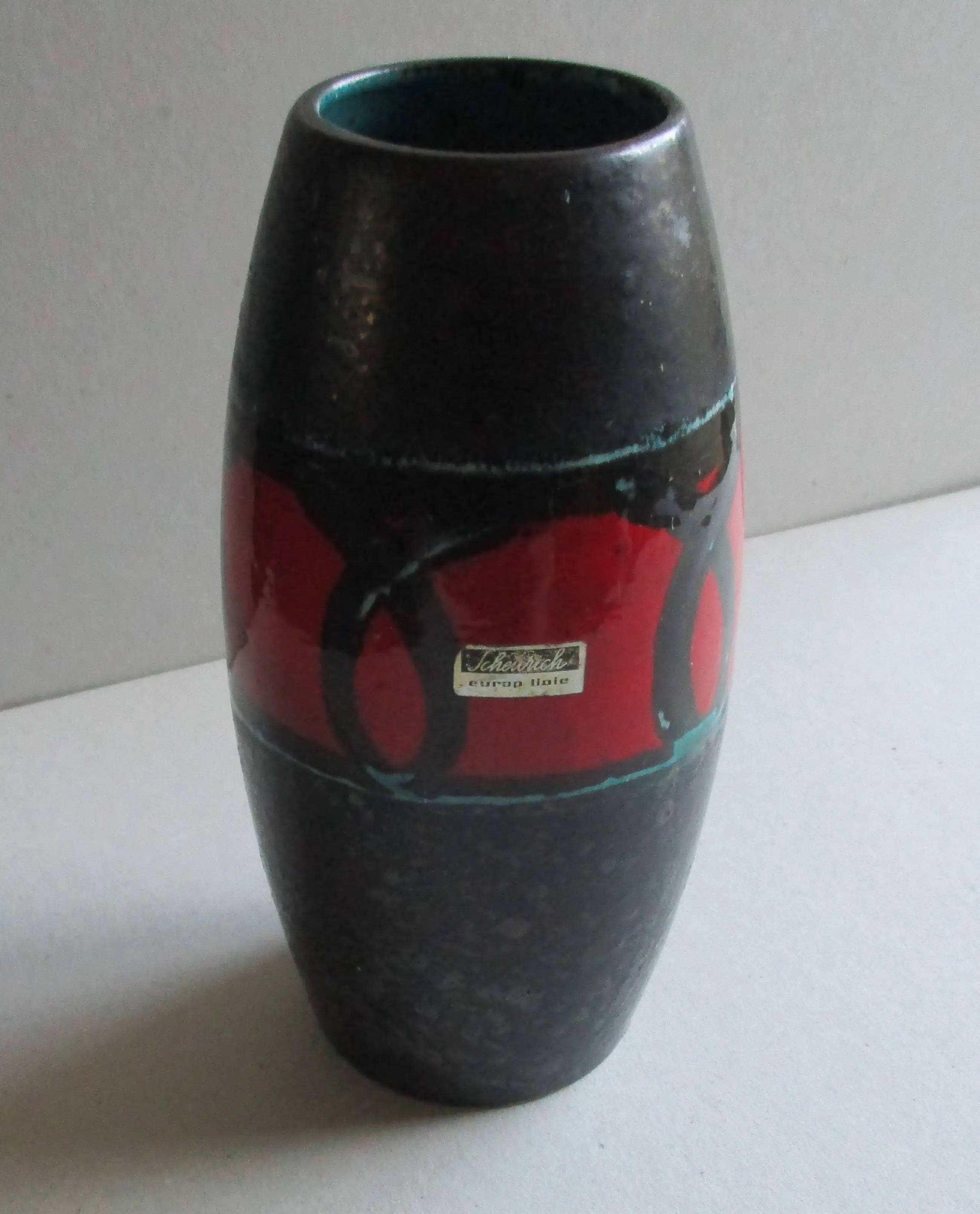 Mooie en kenmerkende vaas voor zestigerjaren. Gemerkt met etiket 'SCHREURICH europ linie' , onderzijde productie/serie nummer 522 20
