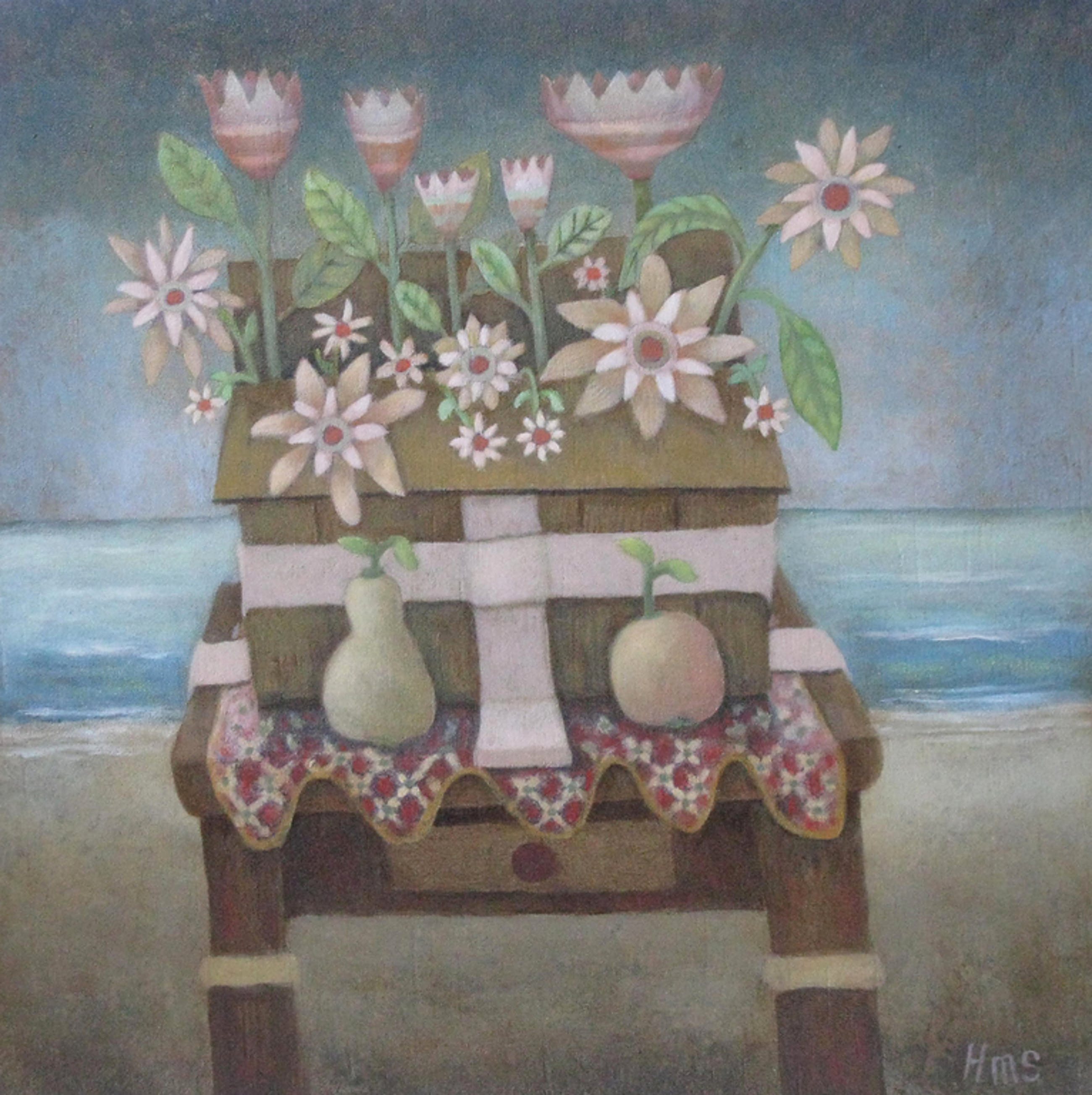 Een olieverf op paneel van Schilder Hermanus (1955), Poëtisch Realist (Naïef Realisme)