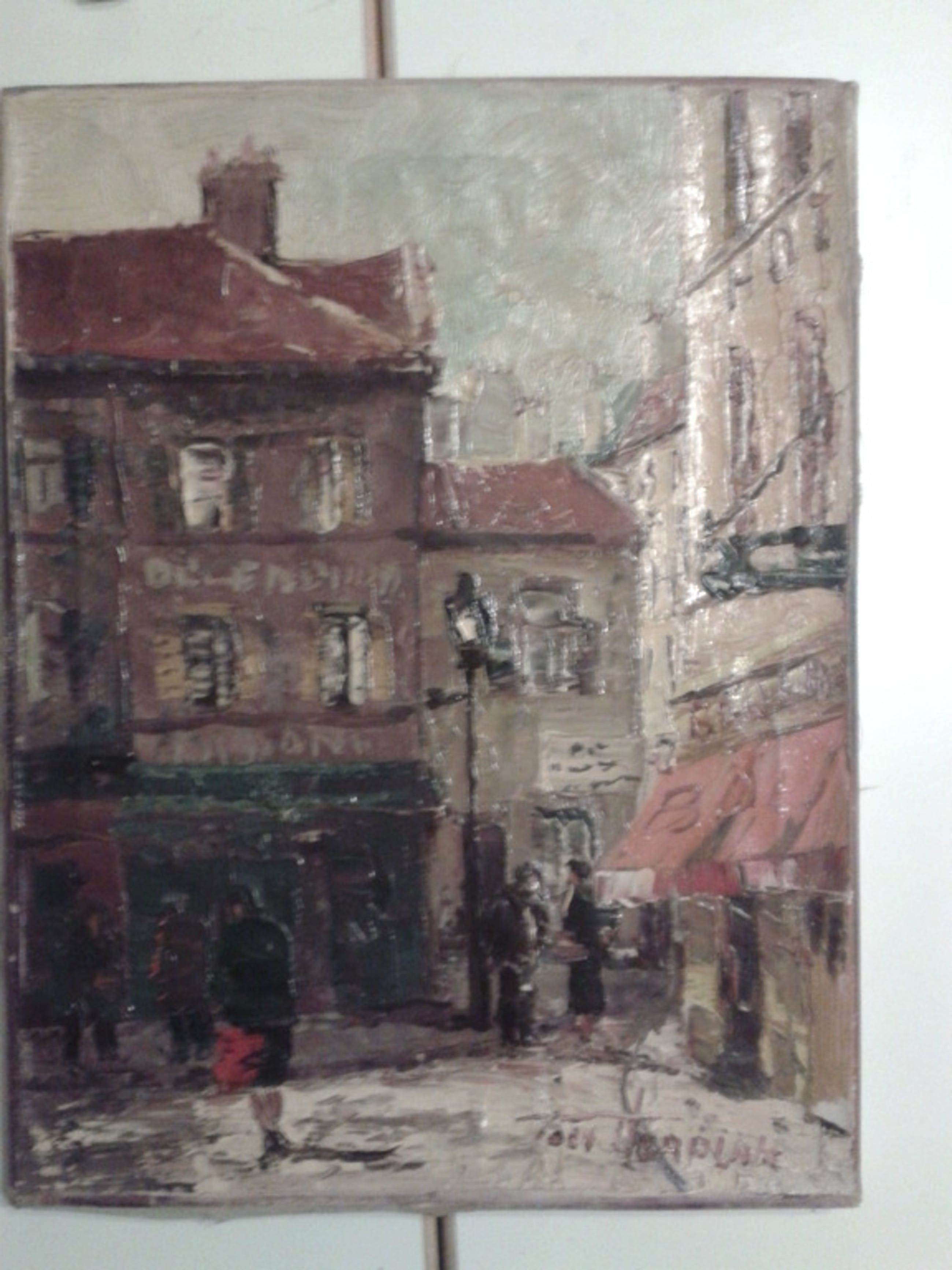 Het is in goede staat, afgezien van 2 kleine winkelhaken onderin het schilderij (zie foto)