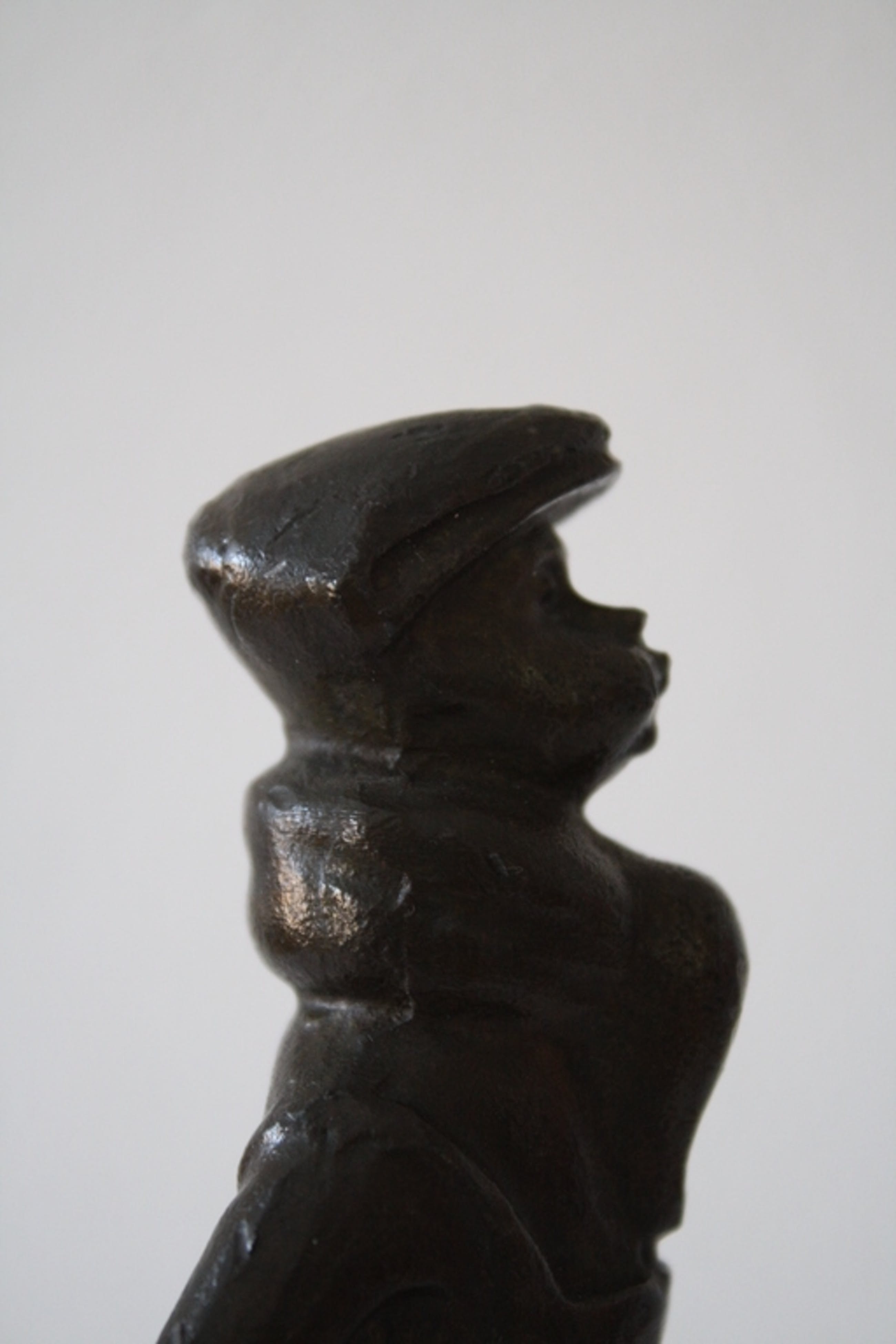 Beeld met de titel Schusterjunge, (Schoenmakersjongen). Gesigneerd J Brüx. Beeldhouwer Jupp (Josef) Brüx. (1889 - 1944)