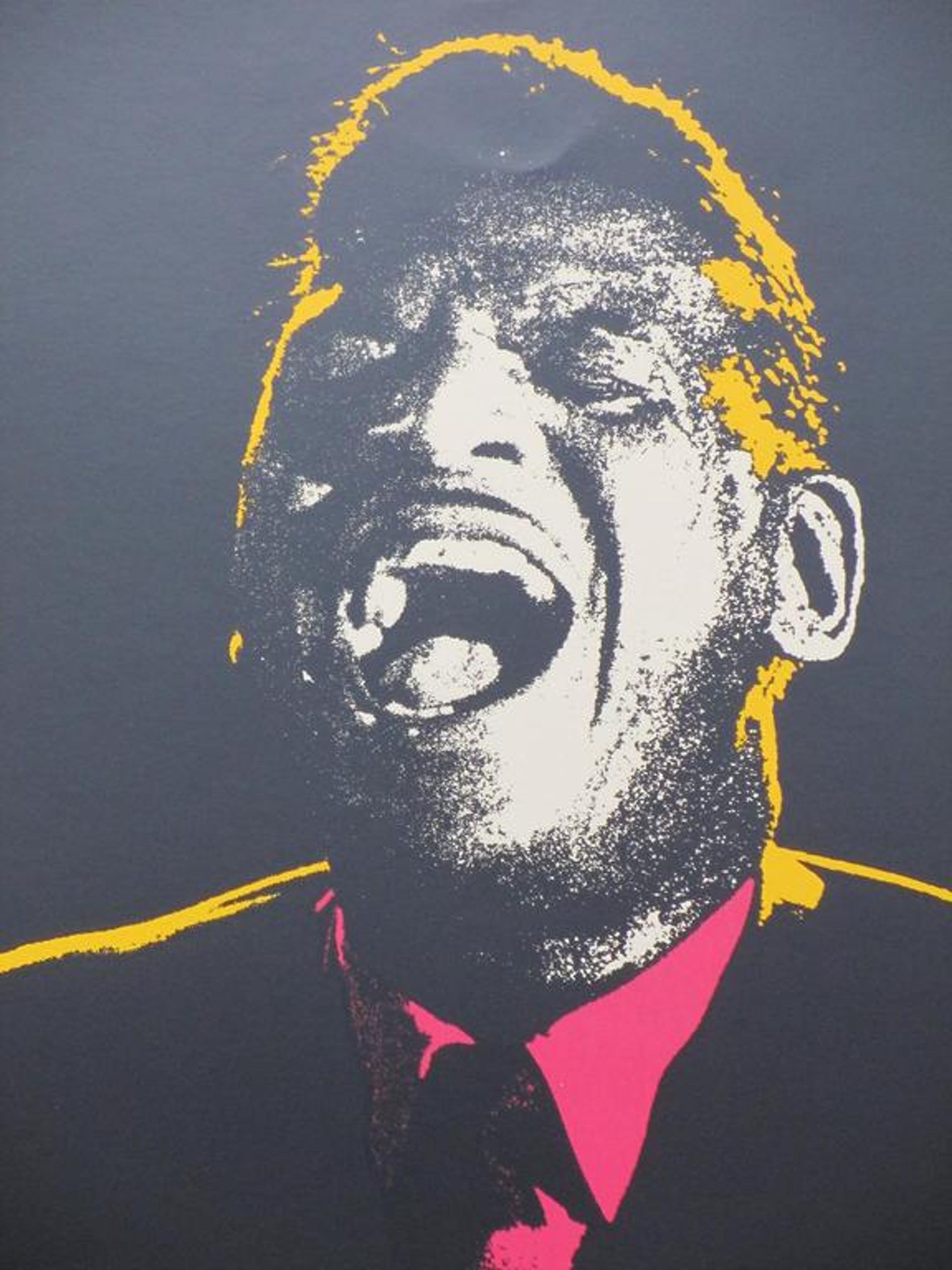 Gloedvolle Jazzy zeefdruk door anonieme kunstenaar.