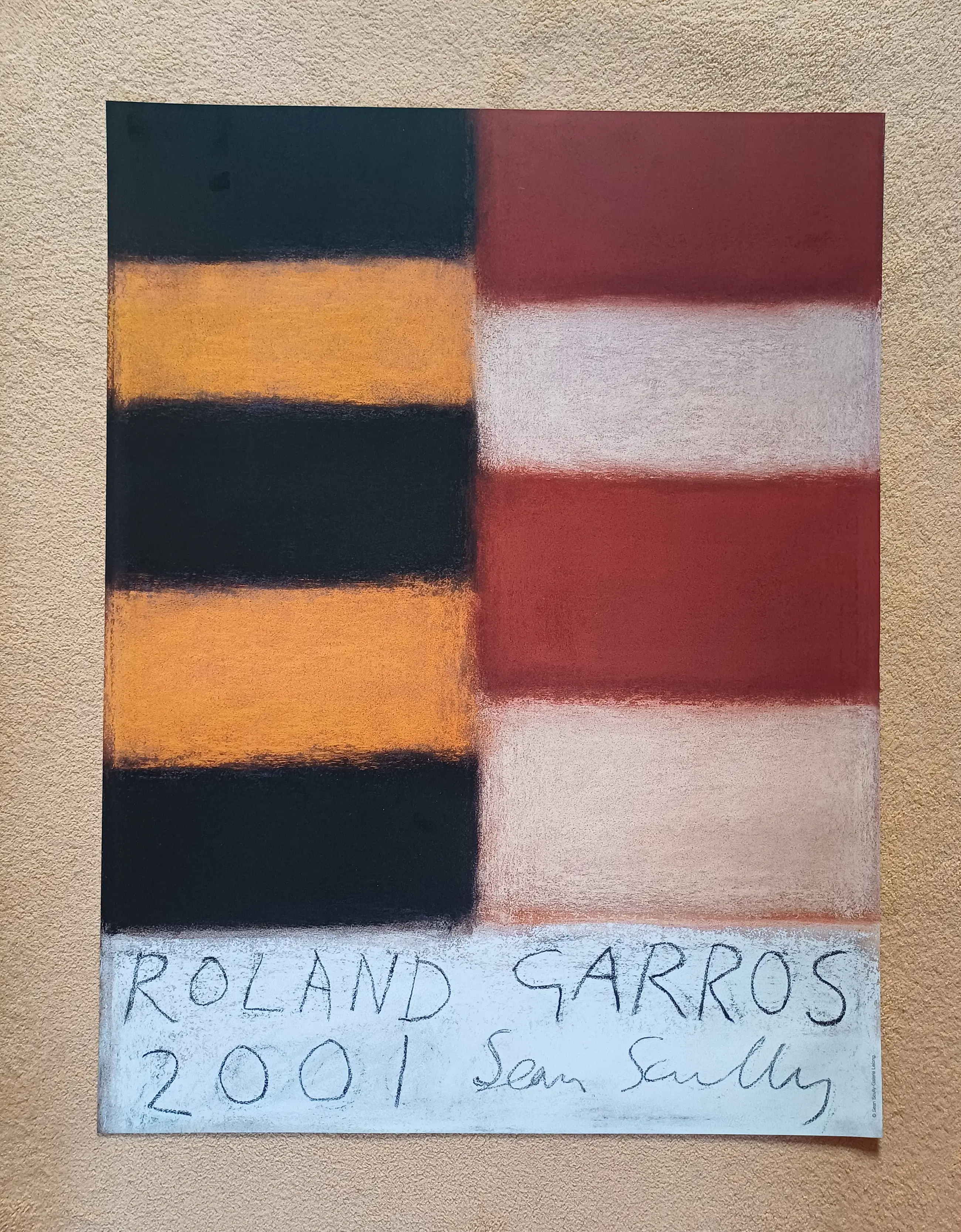Zeer mooie affiche van de Iers-Amerikaanse kunstenaar Sean Scully voor het tennistornooi van Roland Garros 2001. Groot formaat: 75 x 57 cm. In goede staat.