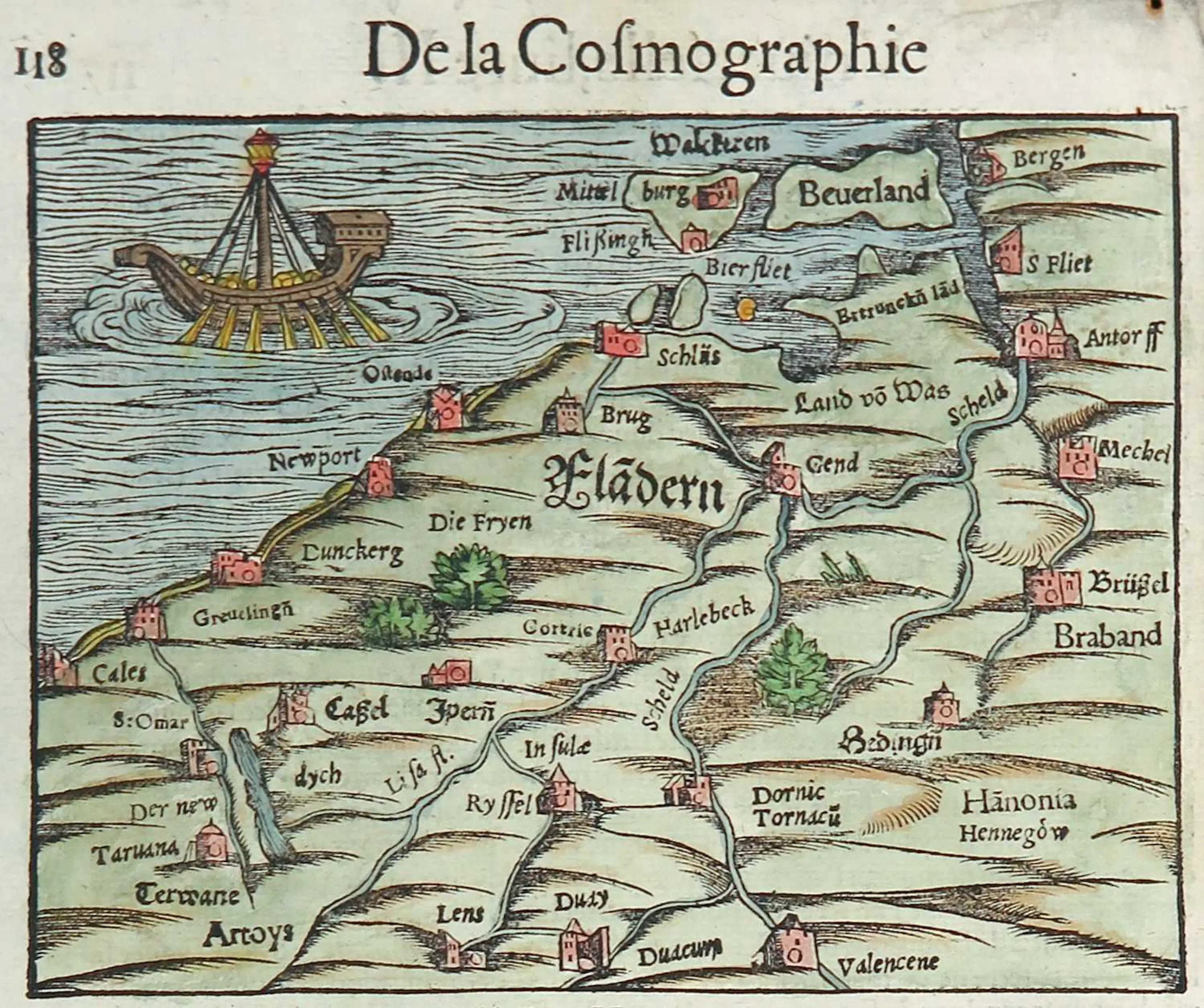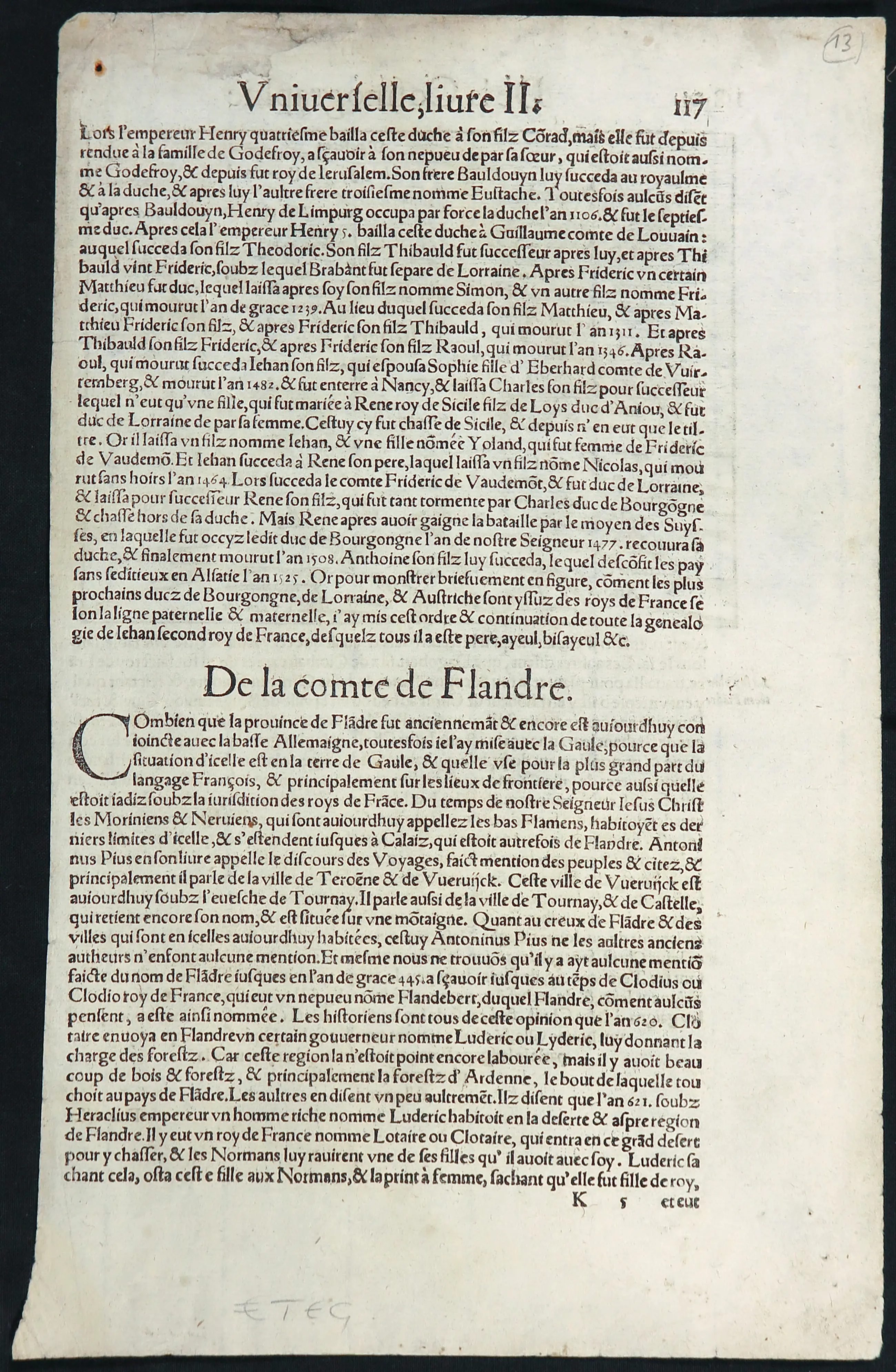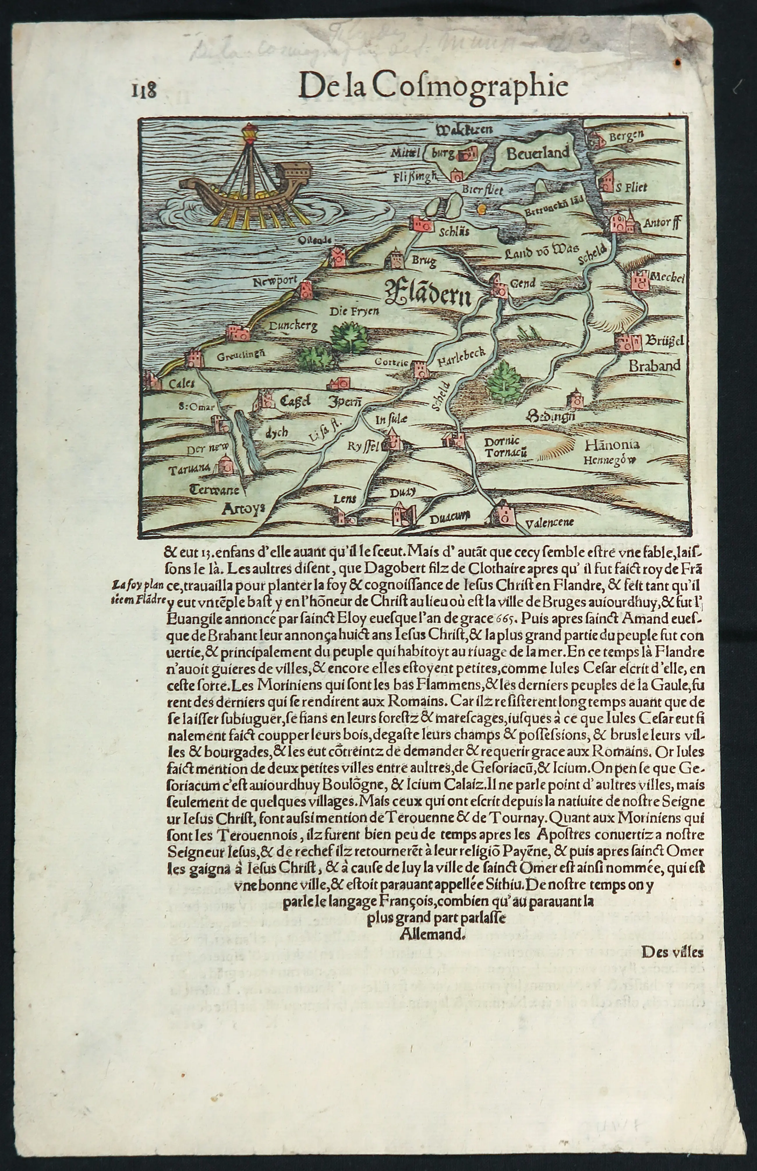 | Zeer goede staat gezien de leeftijd. Notitie in potlood lans de bovenste rand. Hier en daar wat verkleuringen en vlekjes, wat logisch is gezien de leeftijd. Rechtsboven een gaatje met wat roestaanslag. | |||