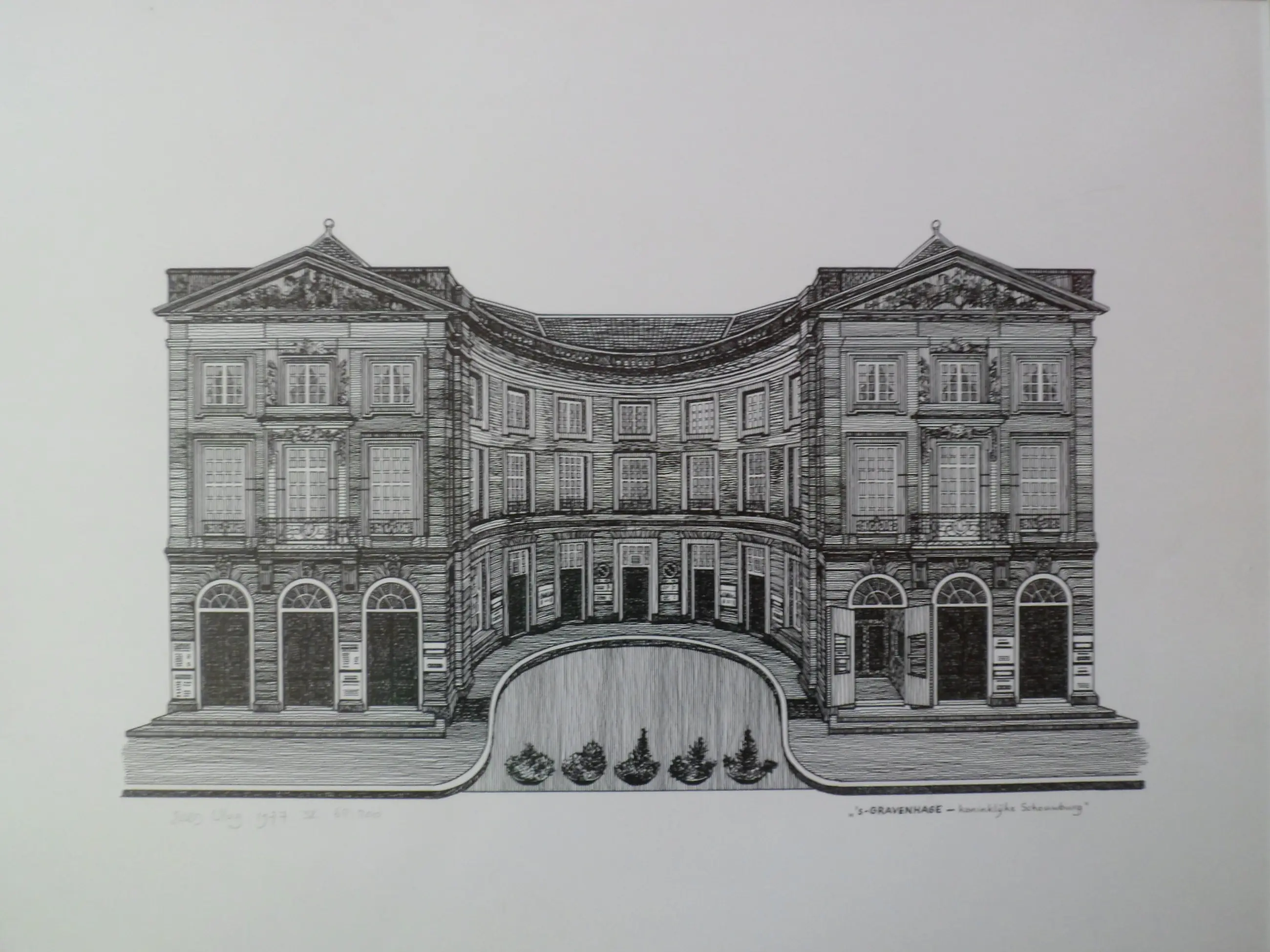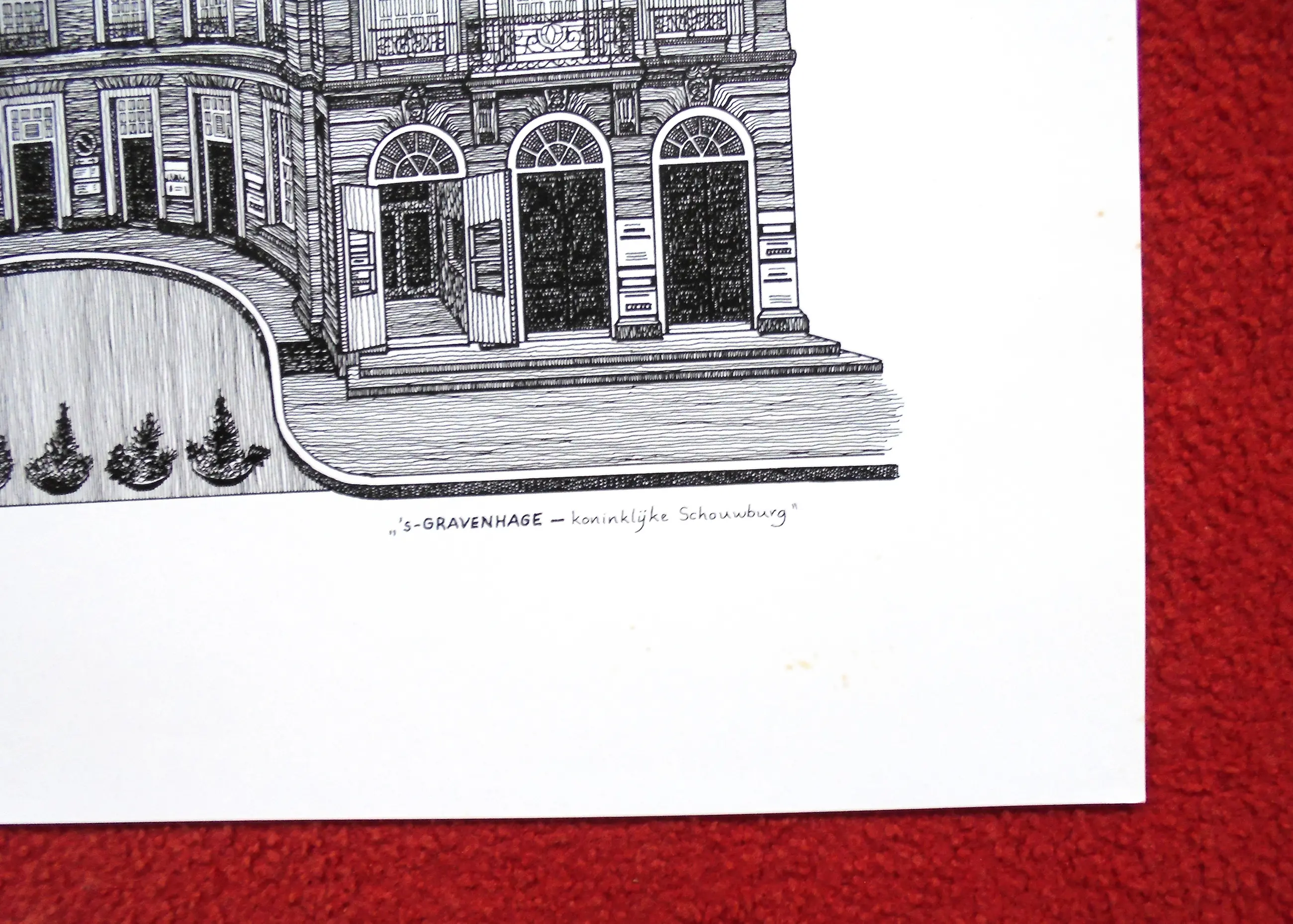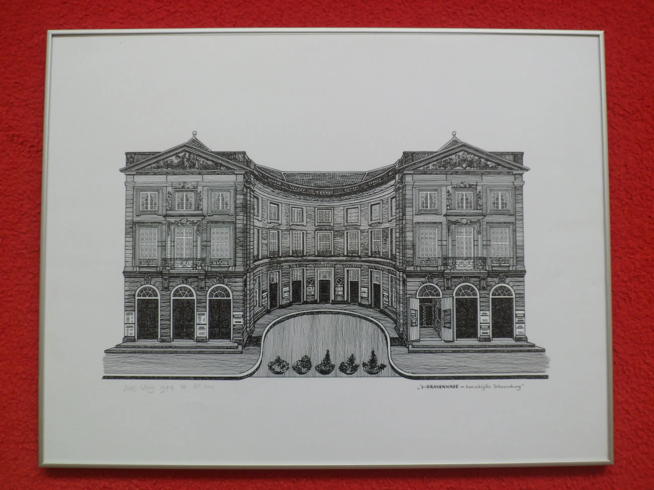 Gesigneerd met potlood Sees Vlag 1977 5 68:200. " 's Gravenhage-de "de Koninklijke schouwburg".
