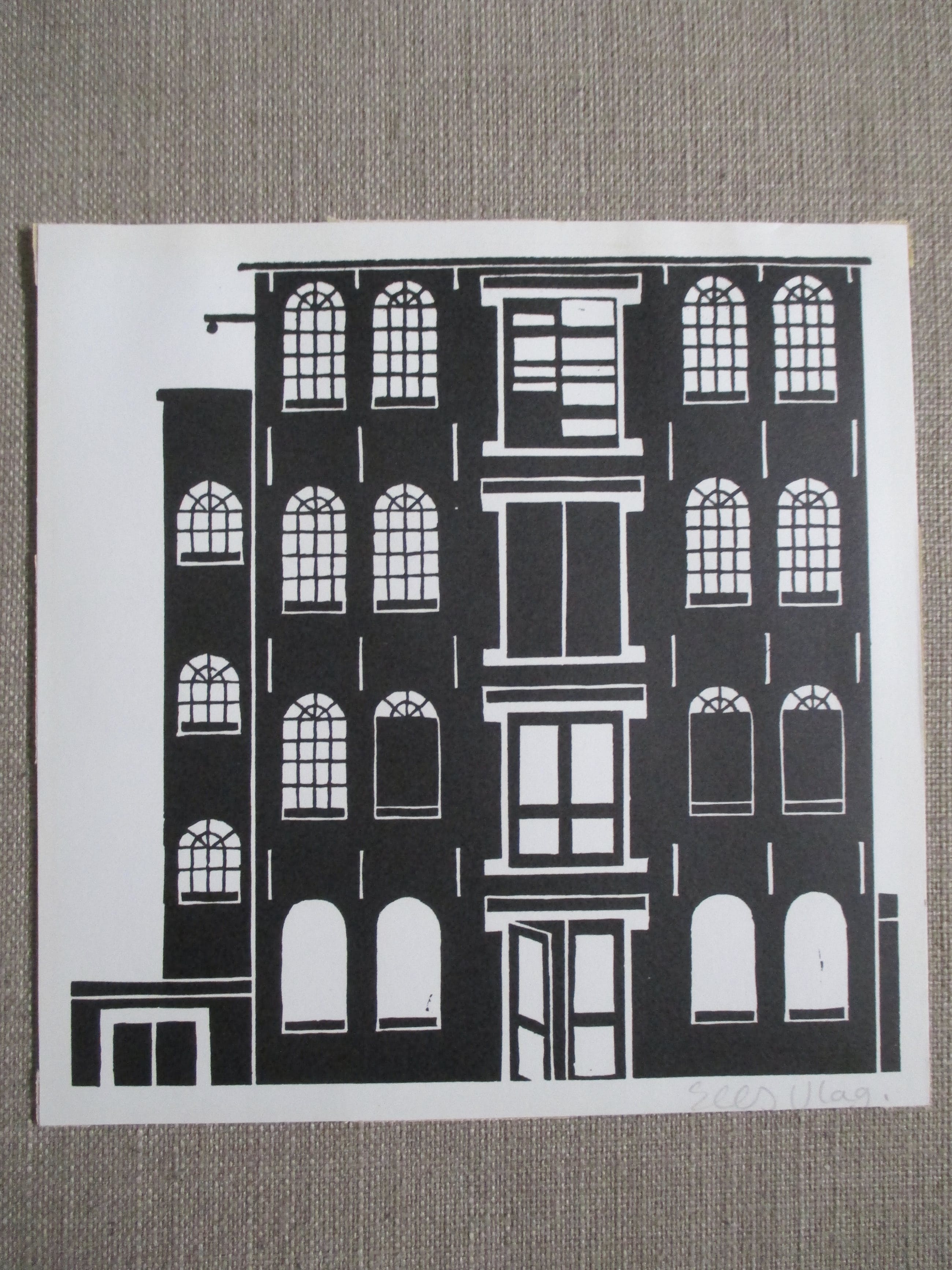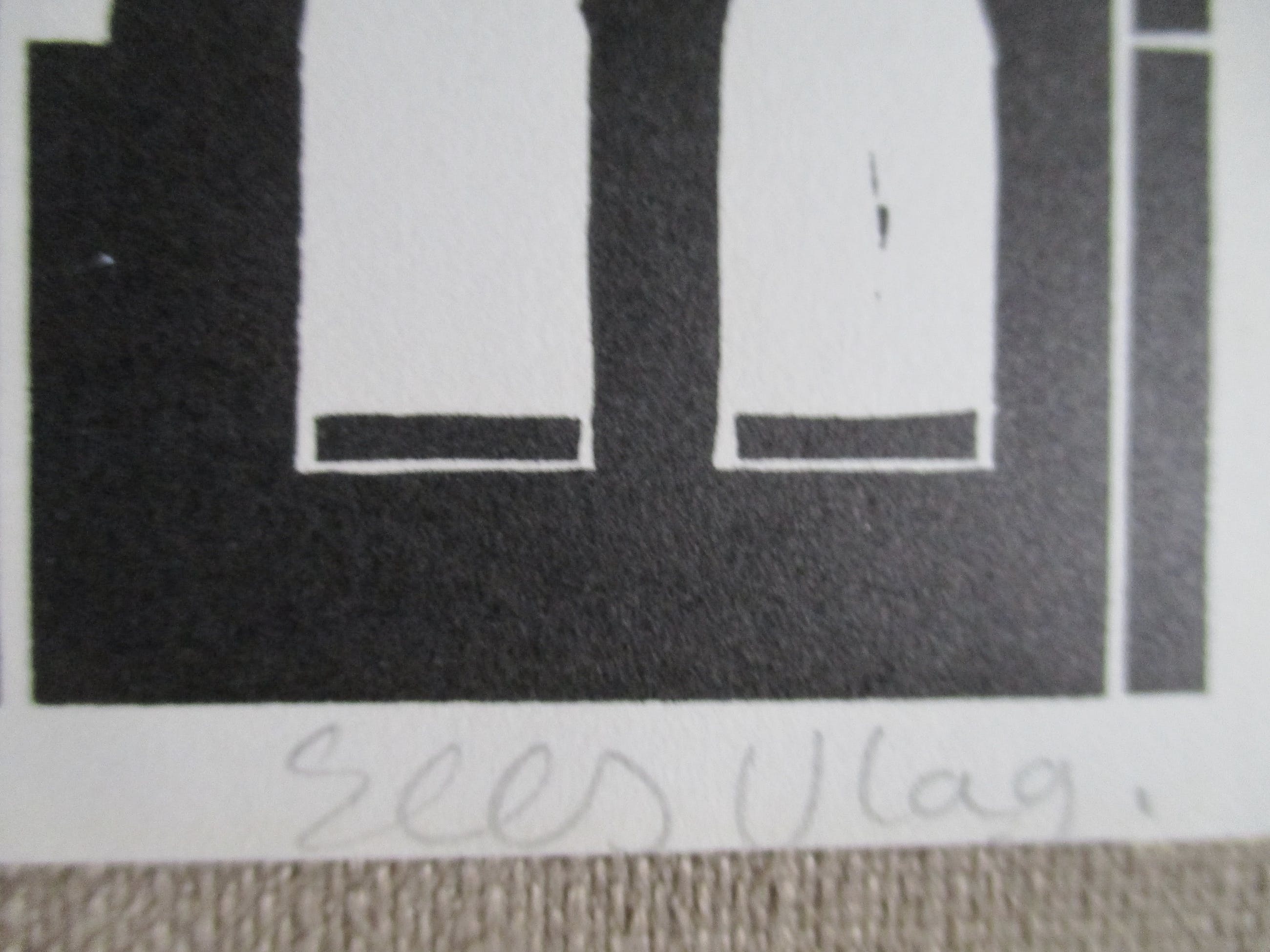 Houtsnede van Sees Vlag, gesigneerd r.o in potlood.Verzending tussen twee plaatjes, 4,90, aangetekend 9,15