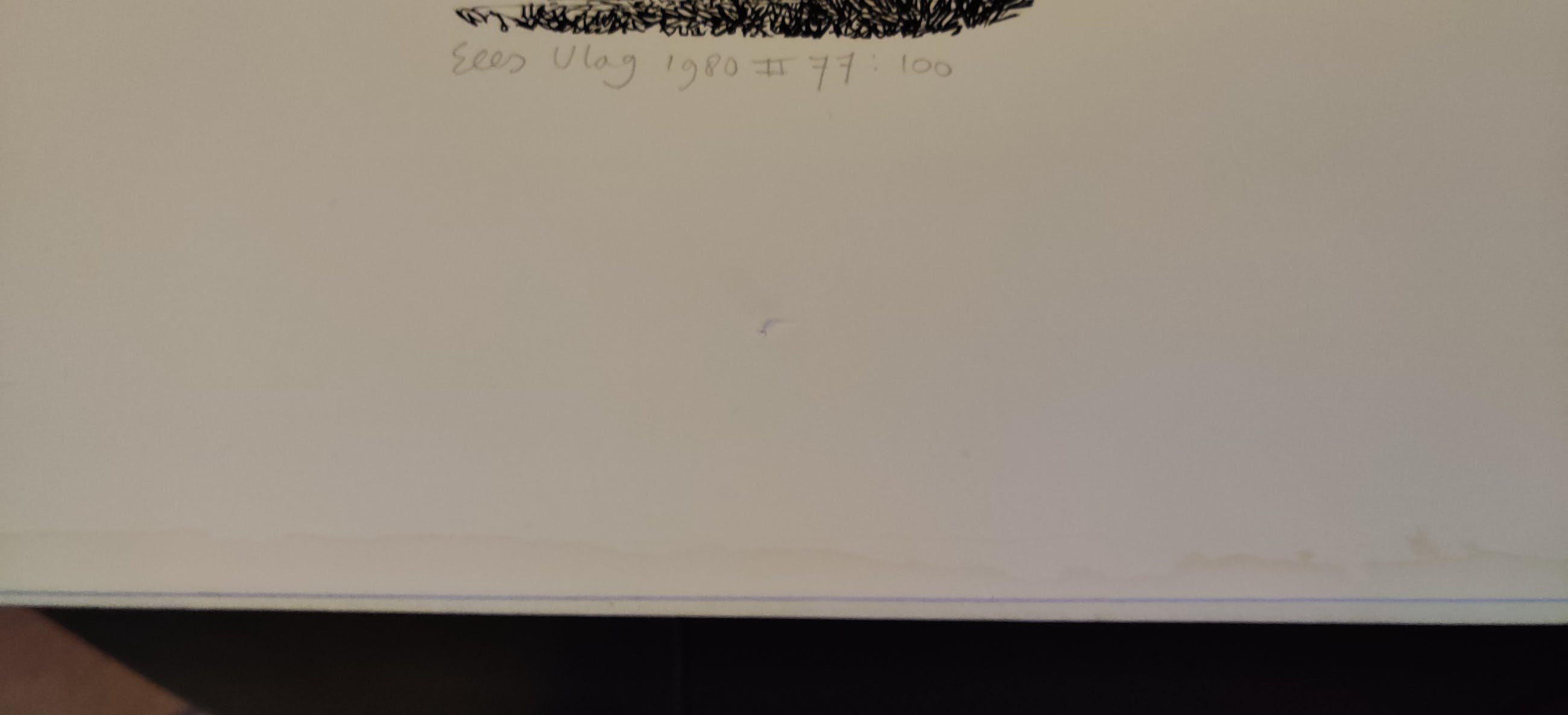 er is aan de randen sprake van een verkleuring. Ook is er een kleine beschadiging in het papier (zie foto's voor de details)